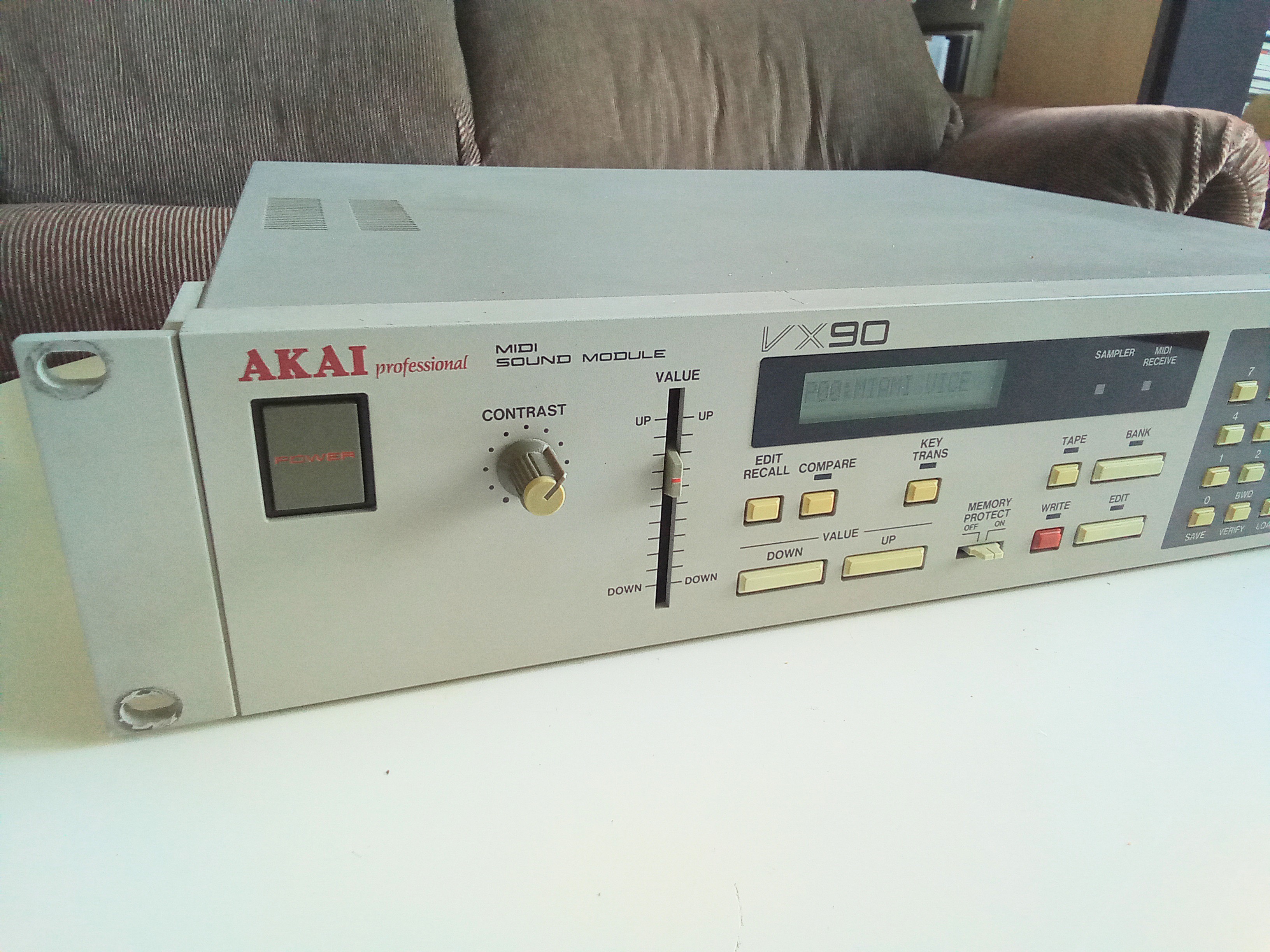 Akai VX 90, en bon état, câble d'alimentation inclus, écran et boutons fonctionnant sans problème, potentiomètre qui crache un peu en tournant.