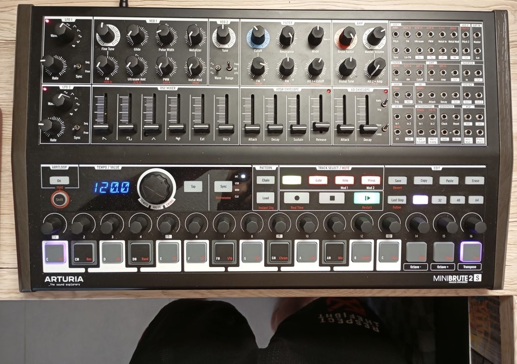 Je vends mon MiniBrute 2S Black/Edition Noire en excellent état. Toujours entretenu avec soin (je suis très maniaque avec mon matériel).Il est complet avec la boîte d'origine, le carton intérieur, le plastique de protection, la notice imprimée, le livre de patch ainsi que plusieurs câbles de patch.