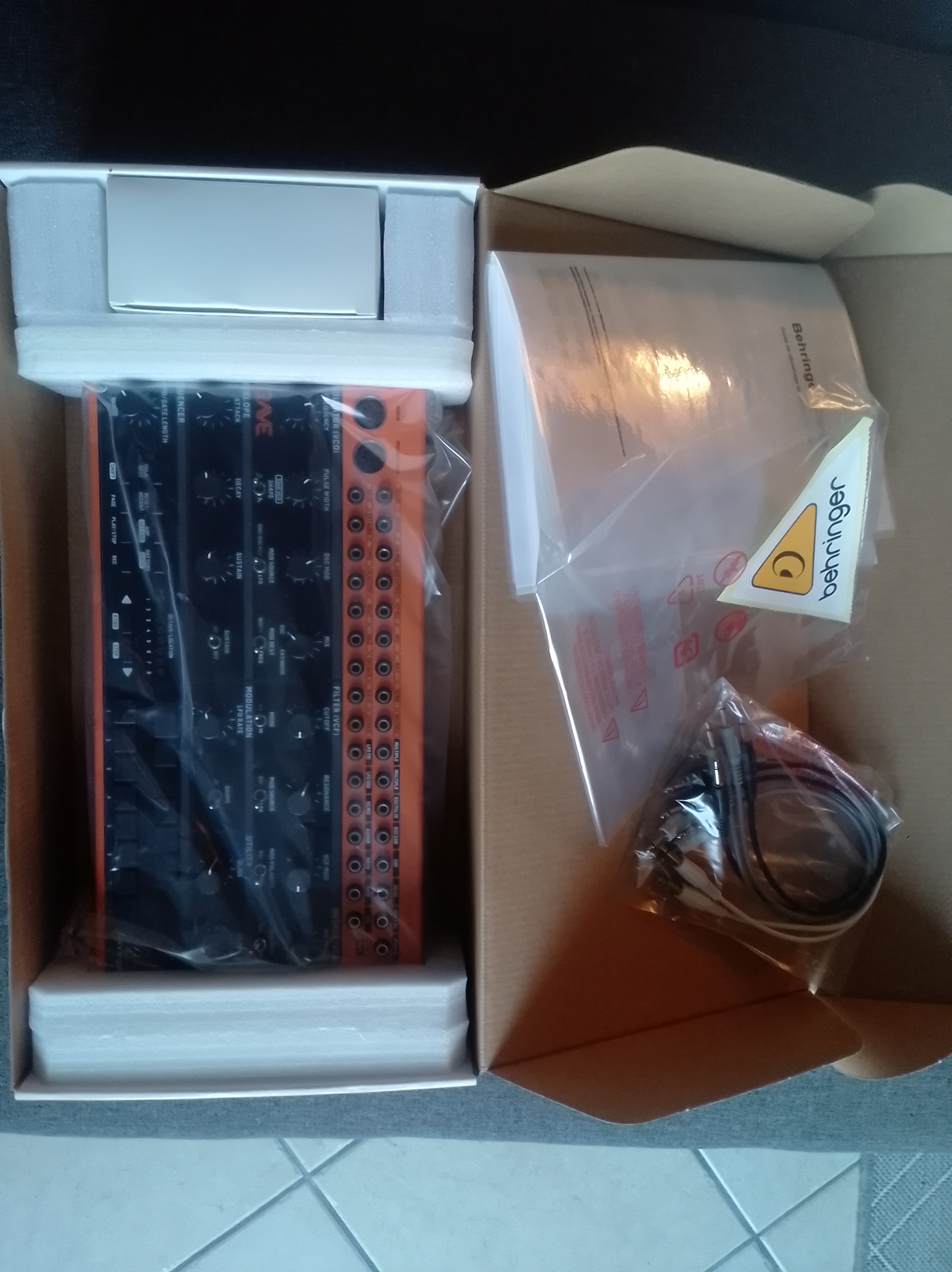 rudimentaire, décevant, orange, du vrai bois d'arbre sur les deux flancs, c'est un peu du flan, bon son de basse analogique, Behringer aurait pu mieux faire avec le sequencer interne (quel gâchis...).