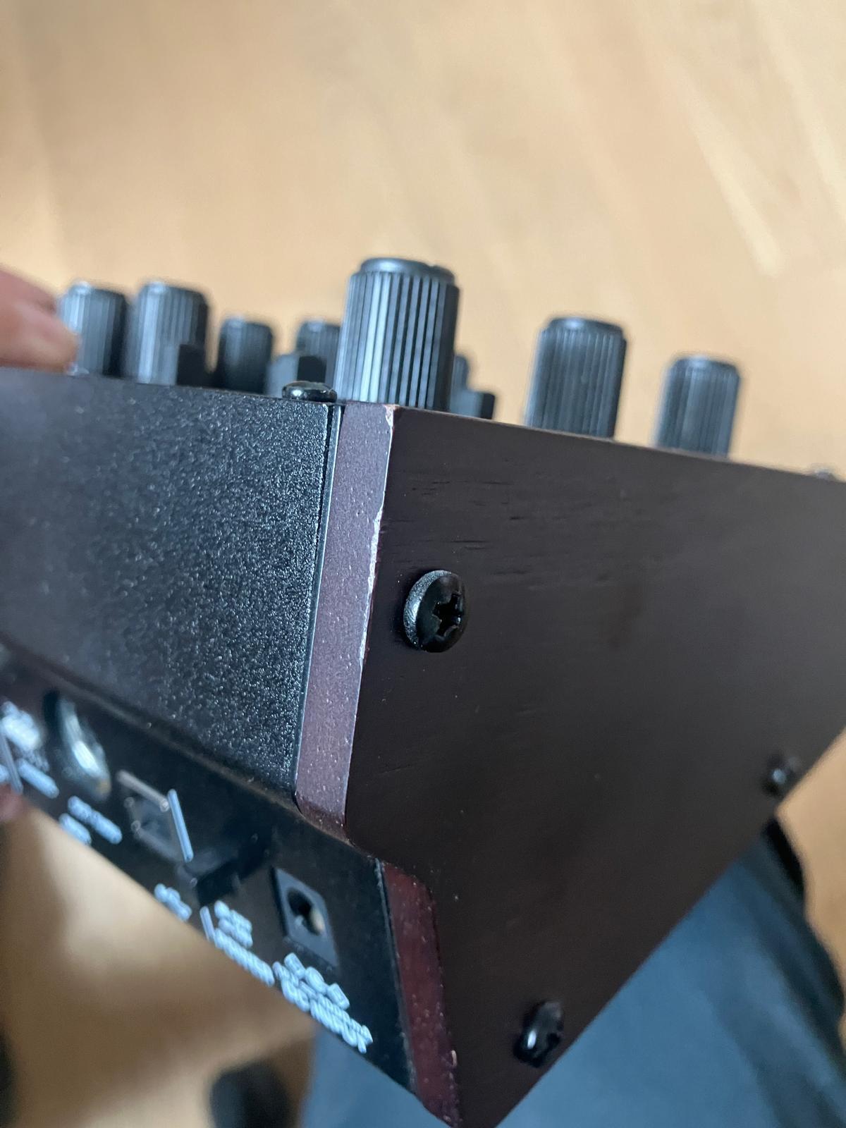 Très bon état général, hormis le petit accroc sur le flanc gauche (visible sur la photo), il n'a jamais quitté mon studio (non fumeur). Pas de craquement ou de bruit sur les potard, vendu avec son câble d'alimentation, mais sans la nappe pour le monter dans un eurorack.