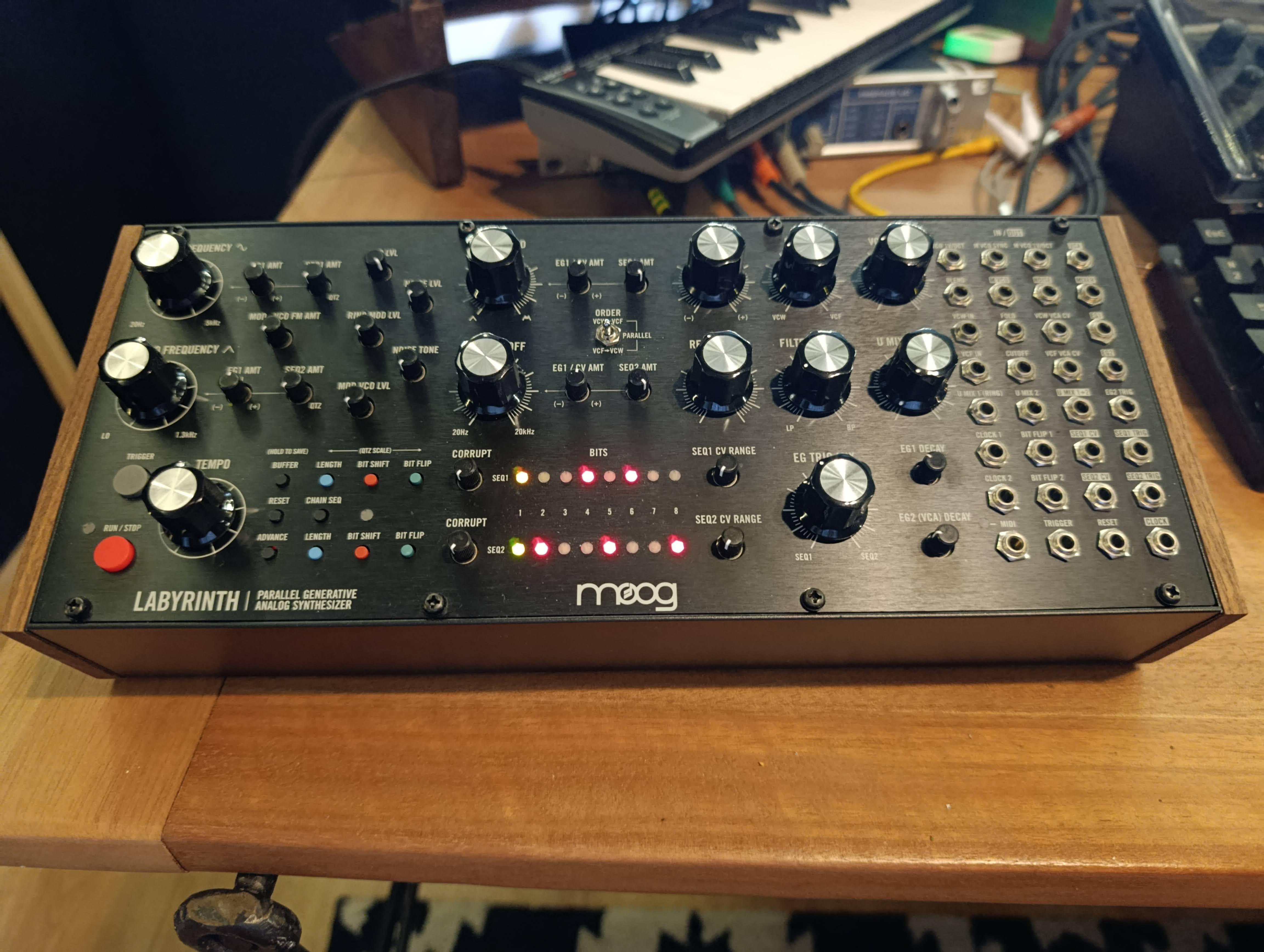 Je vends mon MOOG Labyrinth, dans un état irréprochable, comme neuf, dans sa boite d’origine.(Acheté en décembre 2024, chez Woodbrass, 3 ans de garantie jusqu’au 12.12.2027)
