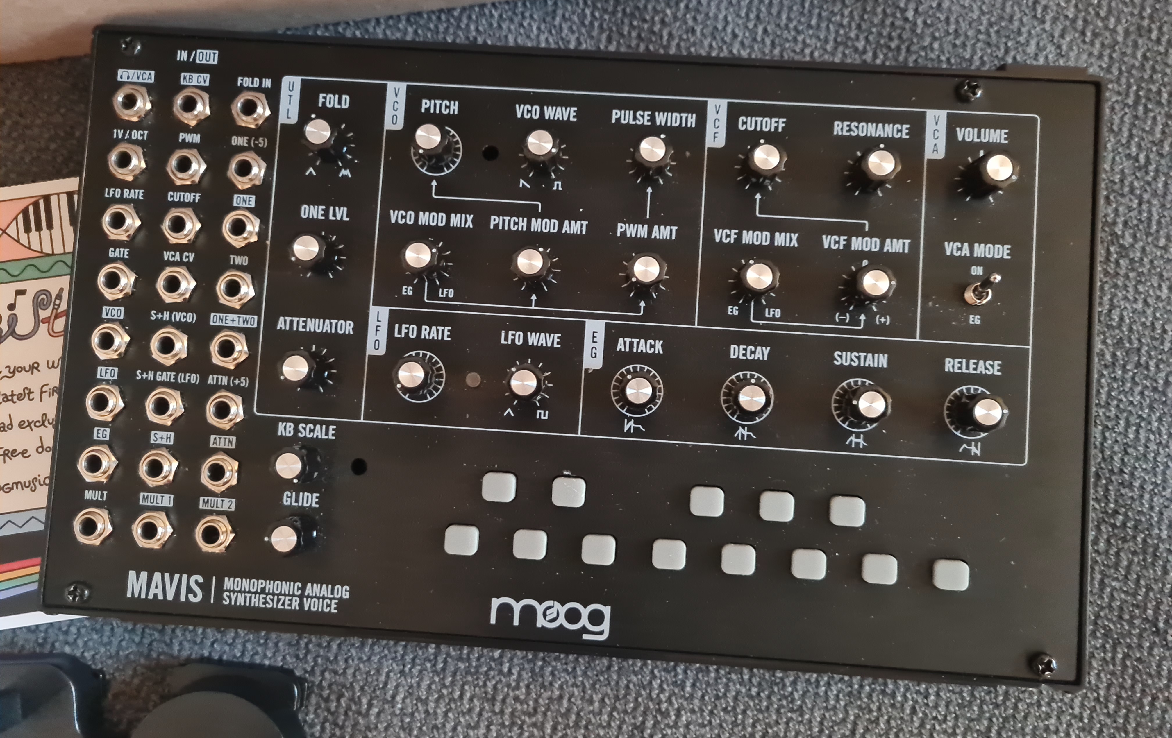Équipé du kit supplémentaire (50 €) de boutons Moog official. Plus gros, plus pratiques.