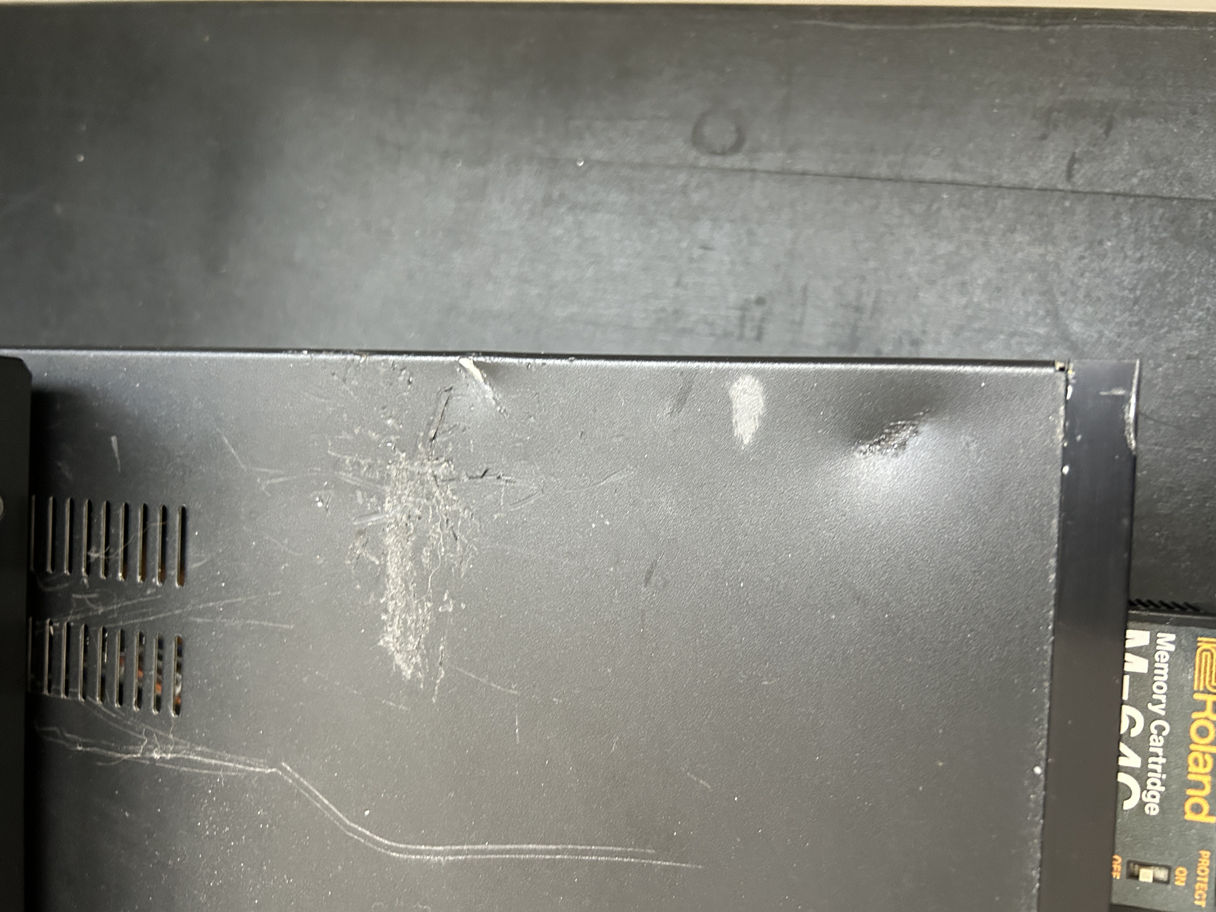 Il y a quelques éraflures sur le rack et une petite bosse dans le coin supérieur, mais toutes les parties visibles sont en super état et il marche parfaitement. Tu peux le tester ou venir le chercher à Pars 20e. Vendu avec la cartouche mémoire Roland d'origine.