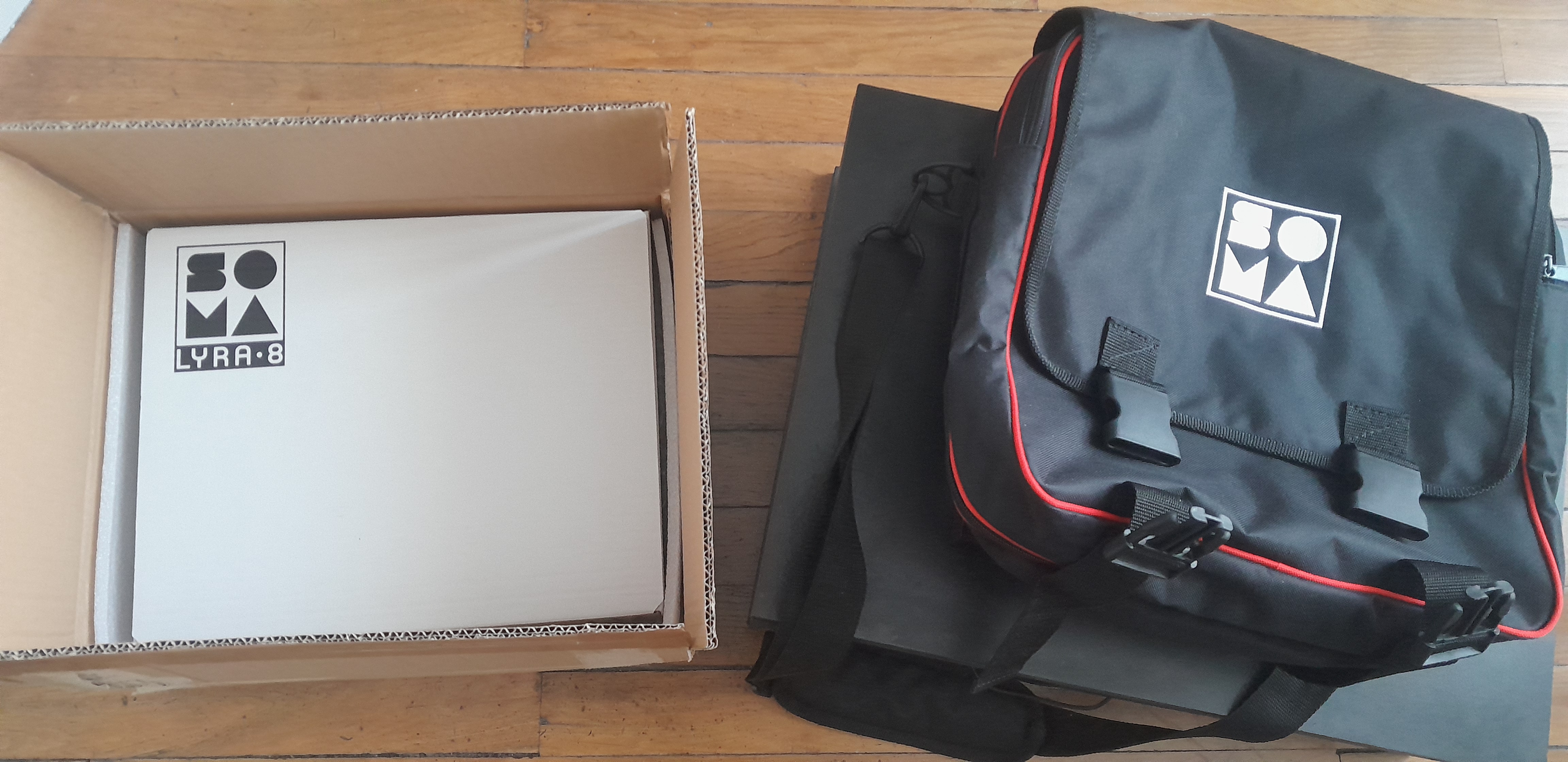 Je vends un Soma Lyra-8 noir qui a tres peu servi, dans sa boite d'origine et son alimentation secteur. Fourni avec sa sacoche assortie.