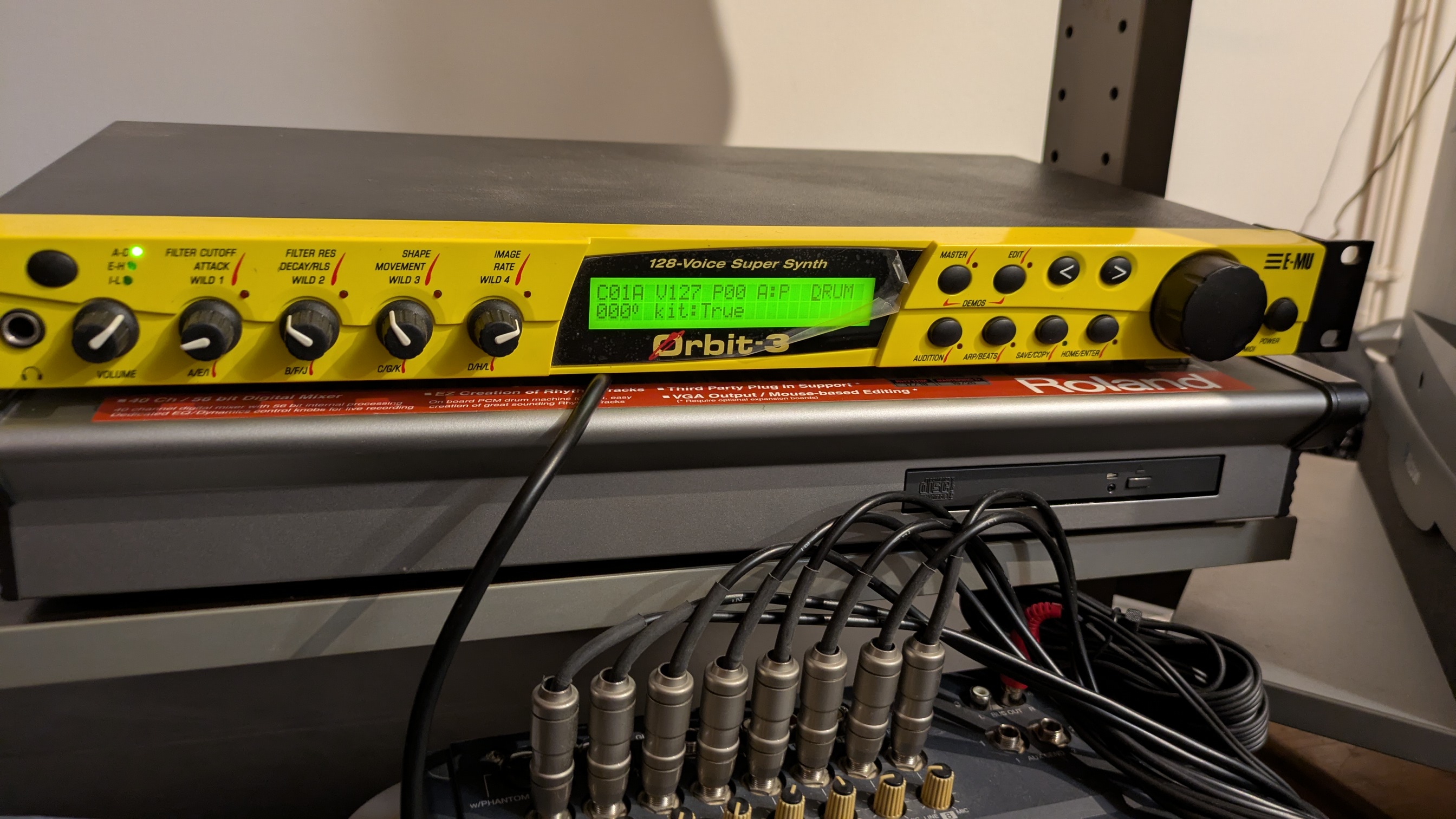 Je vends un E-MU ORBIT-3 complet avec les deux cartes ROM d'origine dont la Beat Garden désignée par Rob PAPEN+ deux cartes ROM optionnelles : Soniq (aka Ensoniq Project : les meilleurs sons du MR, Fizmo et ASR-10) + Protean Drums (meilleurs kits de Drums , patchs, et samples Emulator II, III,SP12, SP1200 et E serie Ultra.Les oreillettes Racks sont nickels, jamais installé dans un meuble, toujours posé et protégé. Le son est génial mais je dois hélas m'en séparer cause investissement console. Mode d'emploi. Livraison possible. Je n'ai hélas plus l'emballage d'origine mais j'ai un autre carton rack 19" pour livrer.