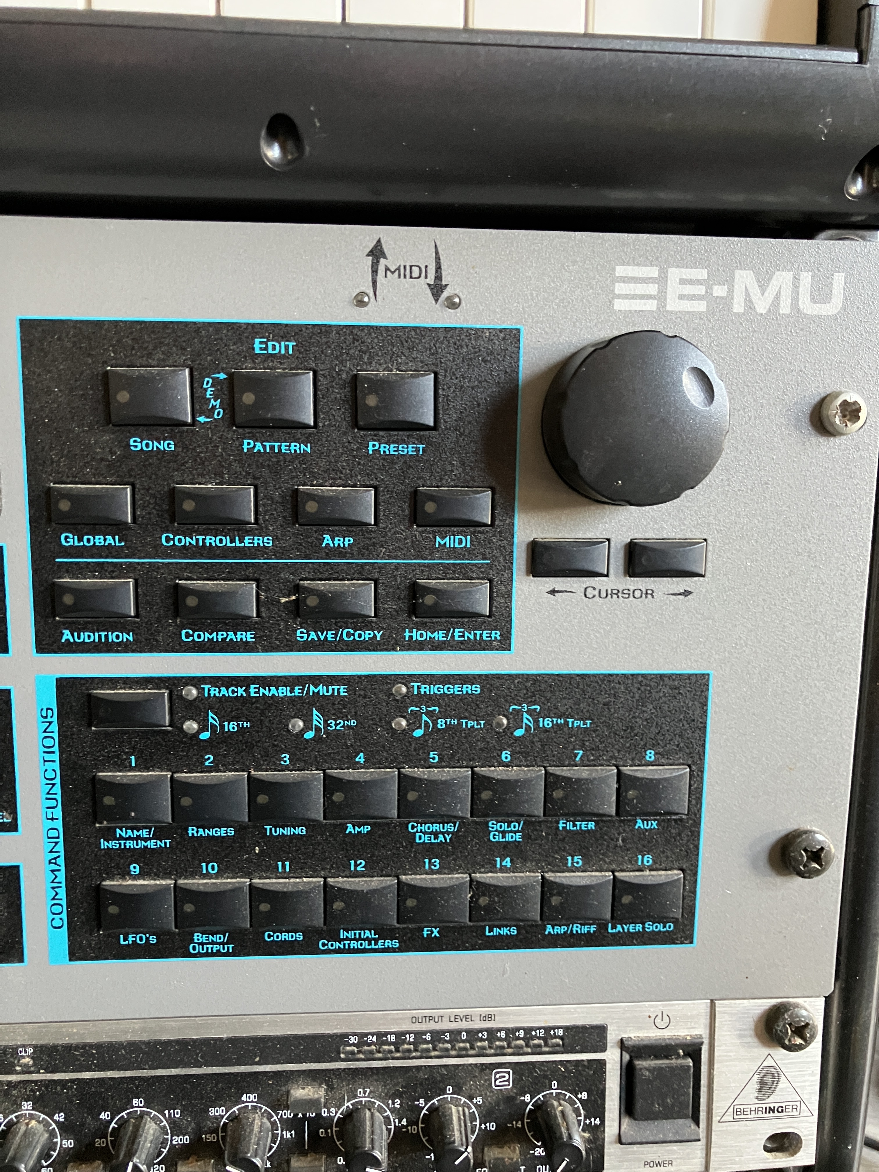 - Édition complète des sons via les 16 potentiomètres en façade (panoramique, Volume, filtres, enveloppes, LFO's, etc.)