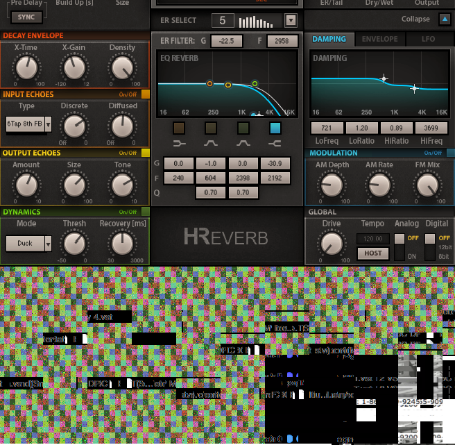 La réverbération principale utilise un préset inspiré par une plate de la fameuse 480L de Lexicon. Quant à l’effet final, il s’agit encore une fois d’un bidouillage de l’enveloppe du déclin.