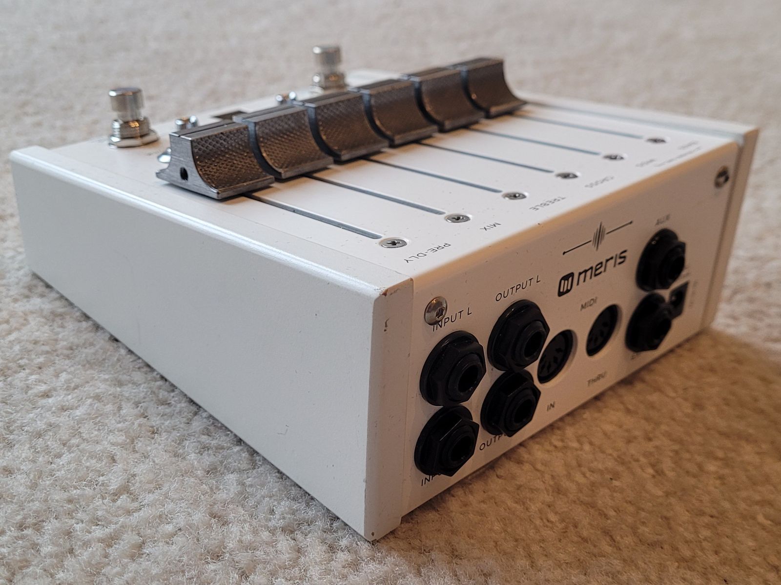 Pour parler de l'aspect hardware: c'est bien construit (très bonnes finitions) mais je ne m'amuserais pas à la trimballer partout... ce n'est pas un tank comme certaines autres pédales que j'ai (OTO Boum, Red Panda Particle v2, Hologram Microcosm qui respirent toutes une solidité hors norme). J'ai même plutôt le sentiment qu'il vaut mieux ne pas la maltraiter, mais elle ne fait pas fragile pour autant. Le design est magnifique et il y a les faders motorisés...