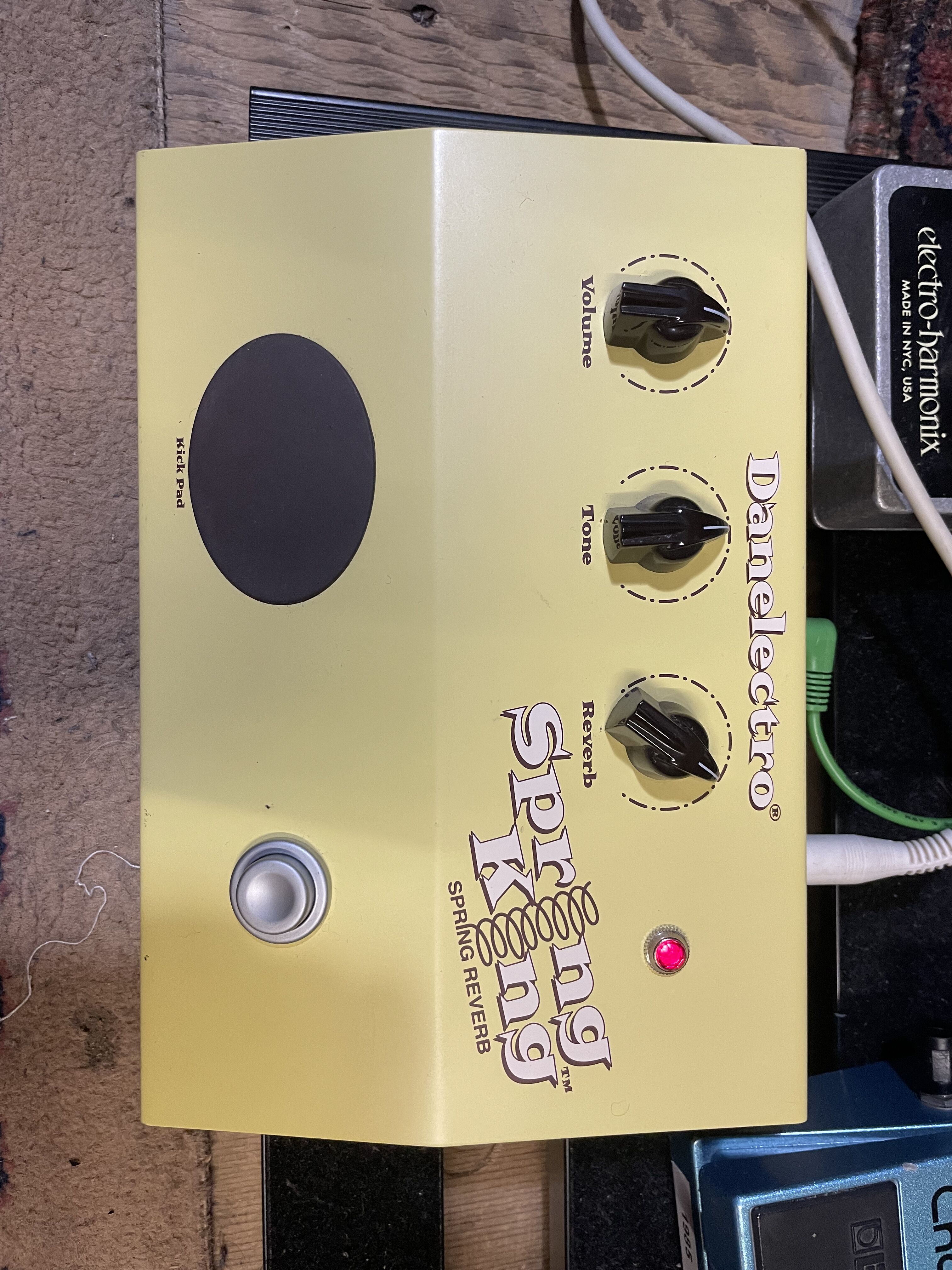 Pédale de reverb à ressort pour guitare, modèle Danelectro Spring King.