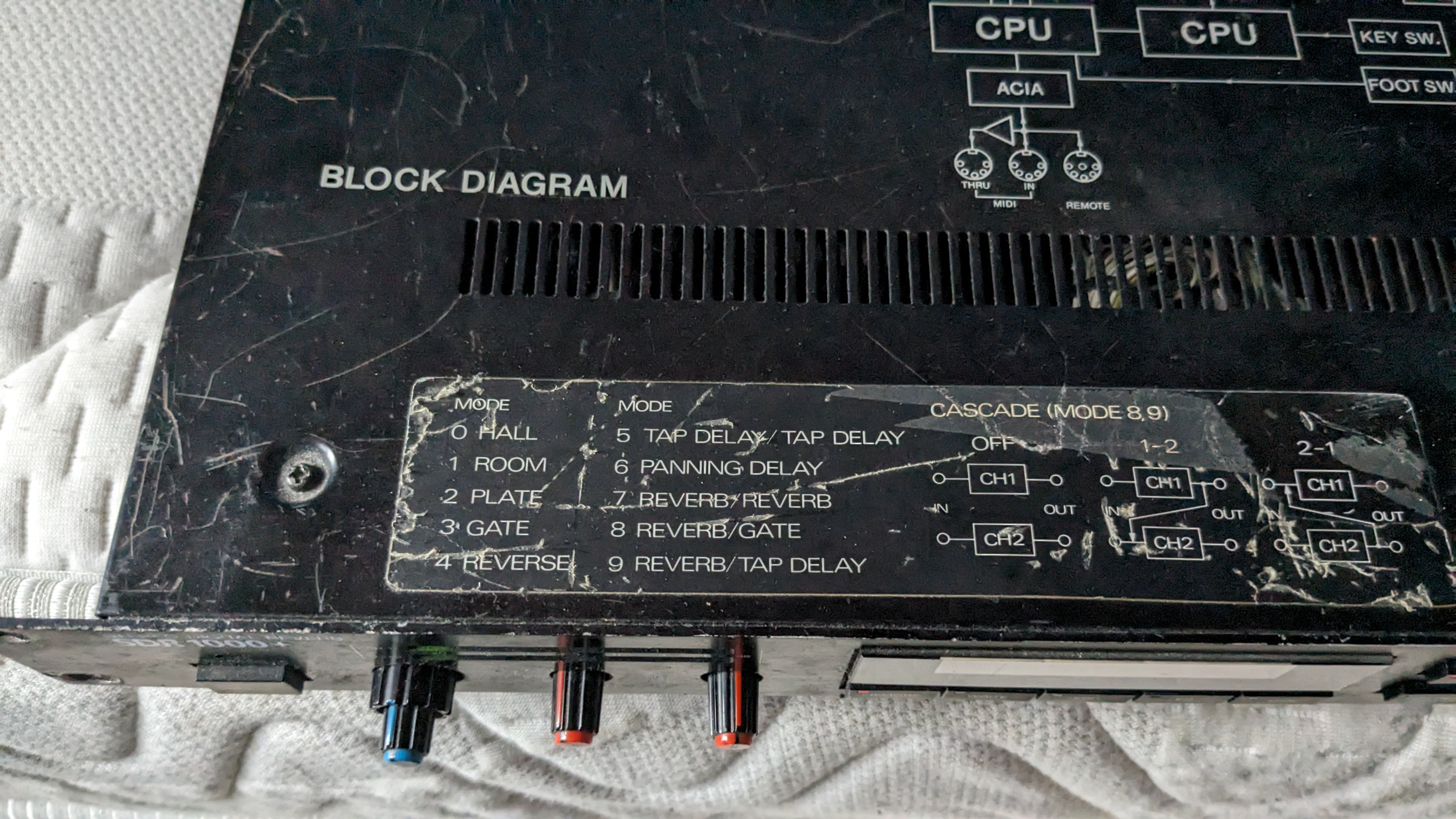 Je vends cette excellente reverb true stereo de 1985 à réparer (similaire à Sony MU-R201). Le son passe bien dedans mais on n'entend pas l'effet. Il y a aussi un buzz sur une des sorties jack. Apparemment il s'agirait de resouder des composants à l'intérieur qui se dessoudent avec le temps, comme décrit dans le fil Gearspace "Ibanez SDR-1000 no effect output". A venir chercher en région parisienne, paiement en liquide en mains propres.