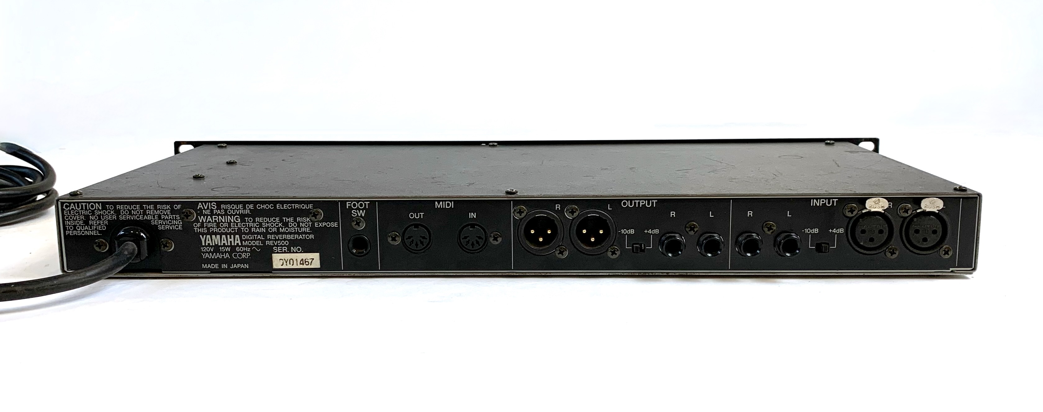 La Yamaha REV500 est une réverbe numérique stéréo rack 1U des années 90, offrant 100 presets de haute qualité (Hall, Room, Plate, etc.) avec 100 emplacements utilisateurs. Simple à utiliser, avec une interface claire, elle délivre un son chaleureux et musical, idéal pour voix, guitares ou batteries. Elle dispose d’E/S symétriques XLR et jack, mais ne propose ni MIDI ni autres effets que la reverb.Location, achat, vente, reprise, dépôt-vente.