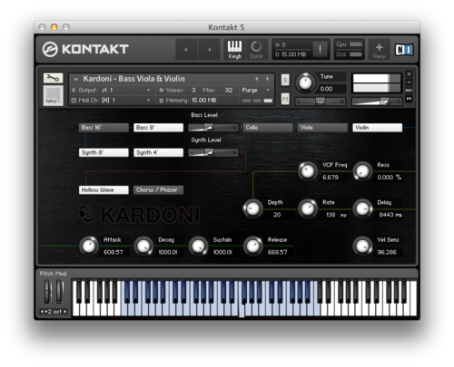 Kardoni est une collection de 700MB dans laquelle vous retrouverez tous les sons de cordes, de synthés et de basse de l’ARP Omni MK2, y compris le chorus, le phaser et la forme d’onde Hollow originaux.