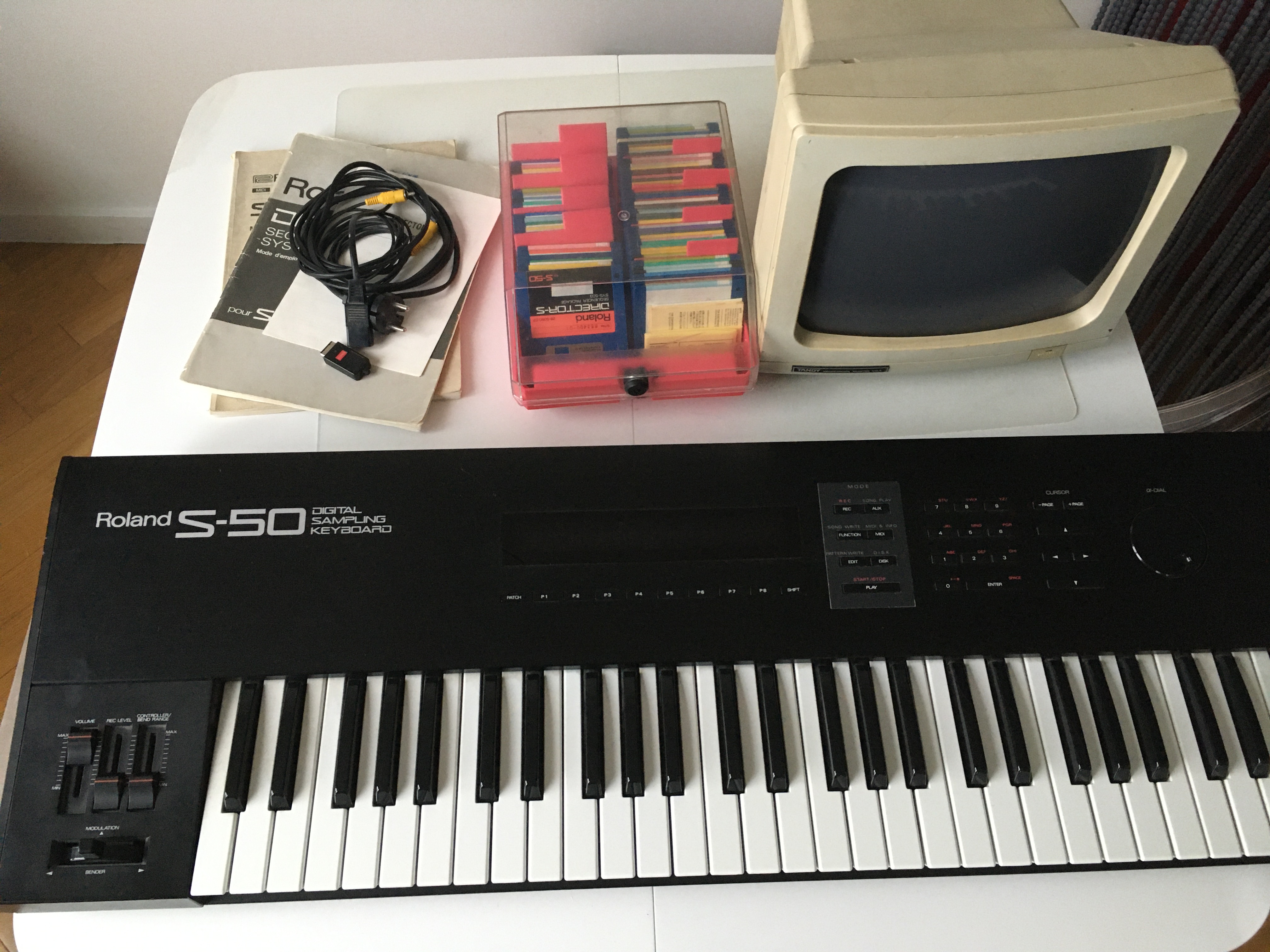 Point fort: excellent clavier-maître à touches lestées, utilisable en MIDI uniquement (pas d'USB).Il fonctionne encore, charge les disquettes, mais certaines touches sont HS (P2 et P4 notamment).
