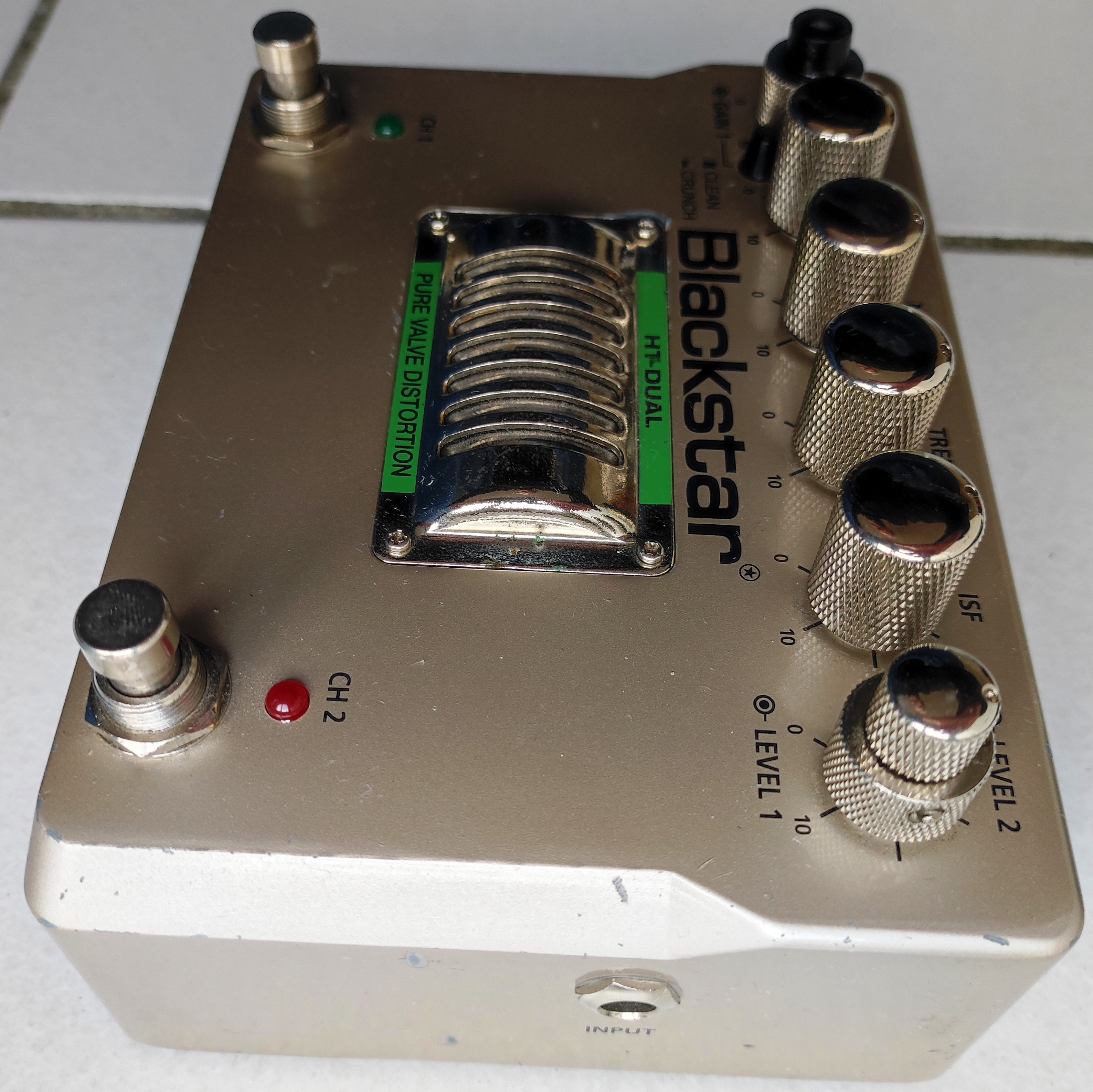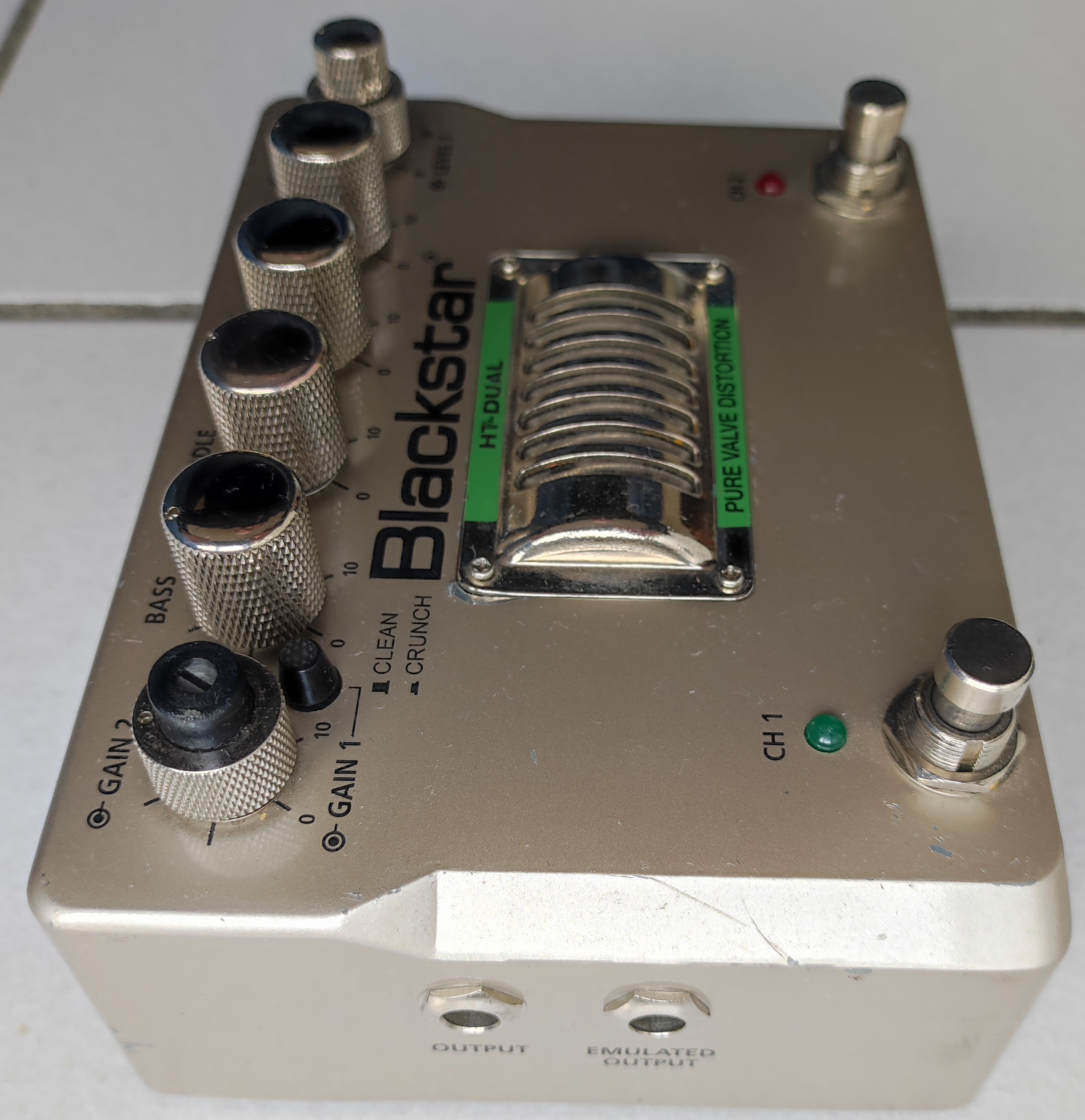 Coté cosmétique, il y a quelques traces du temps et il manque un capuchon sur le réglage du gain canal 1 qui ne gène en rien l’utilisation et le son de la pédale.