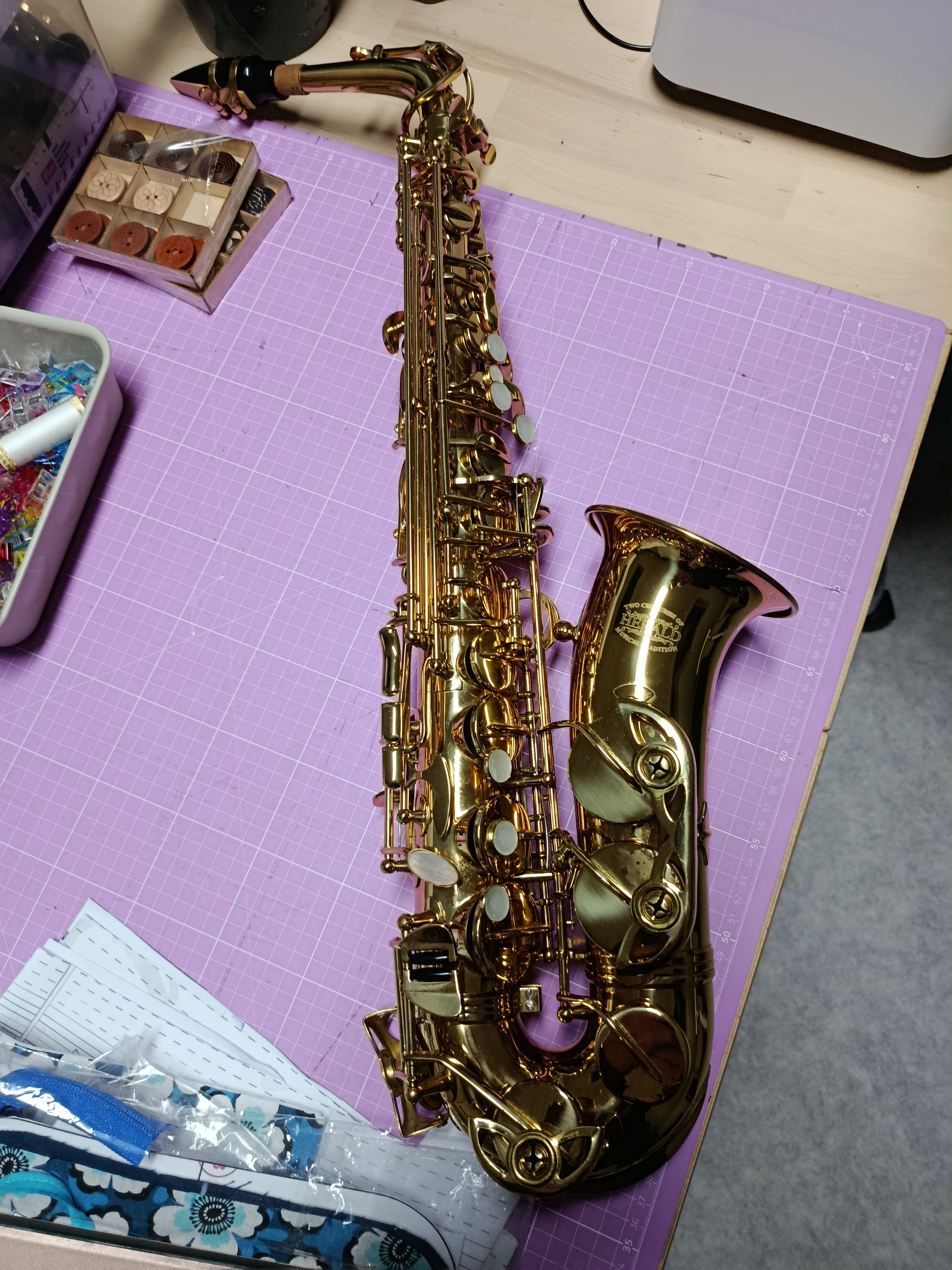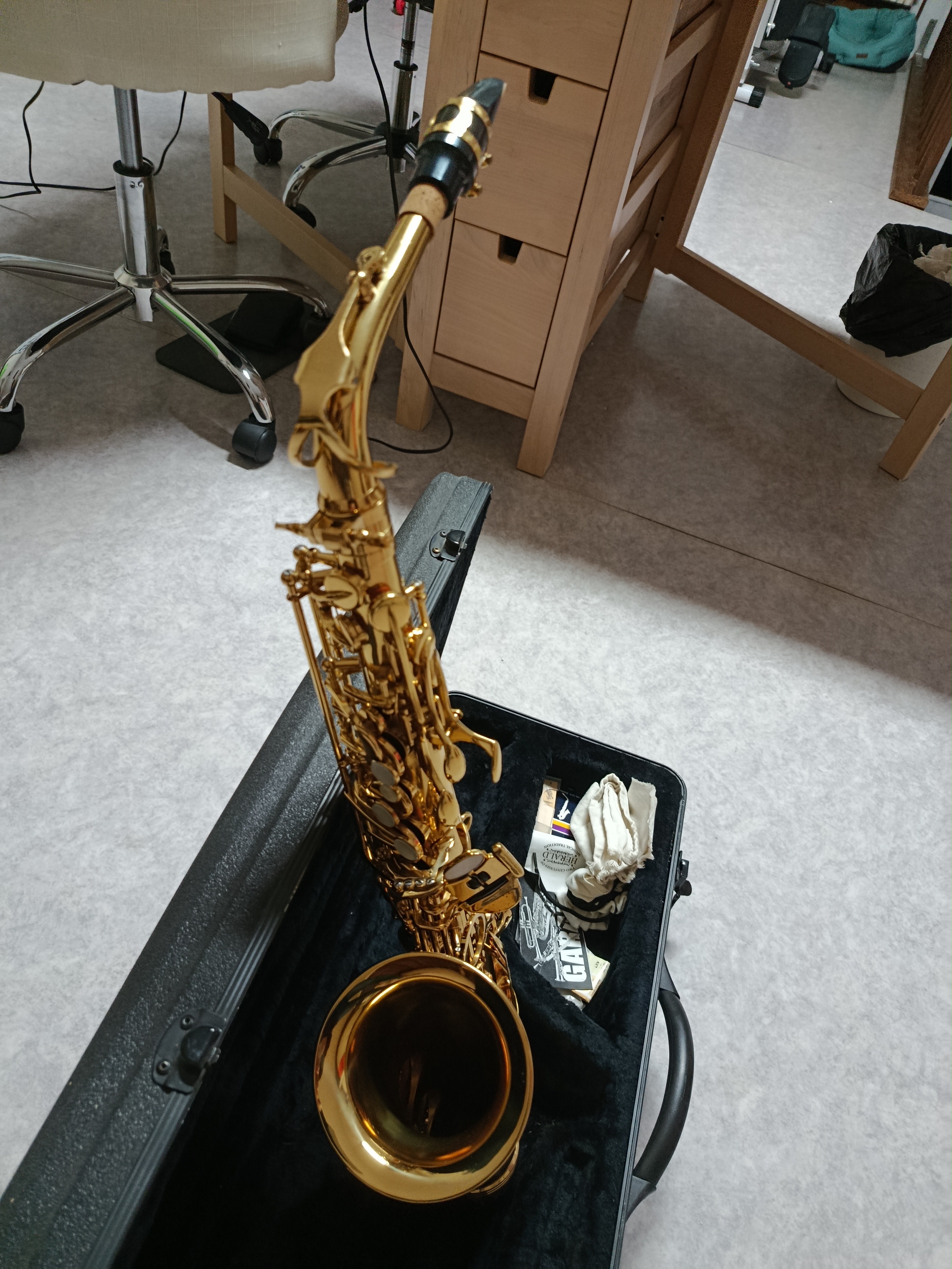 Saxophone Alto Herald, première main acheté neuf environs 800 €.Fonctionne parfaitement bien, les tampons sont correctes, dans son étuis rigide.