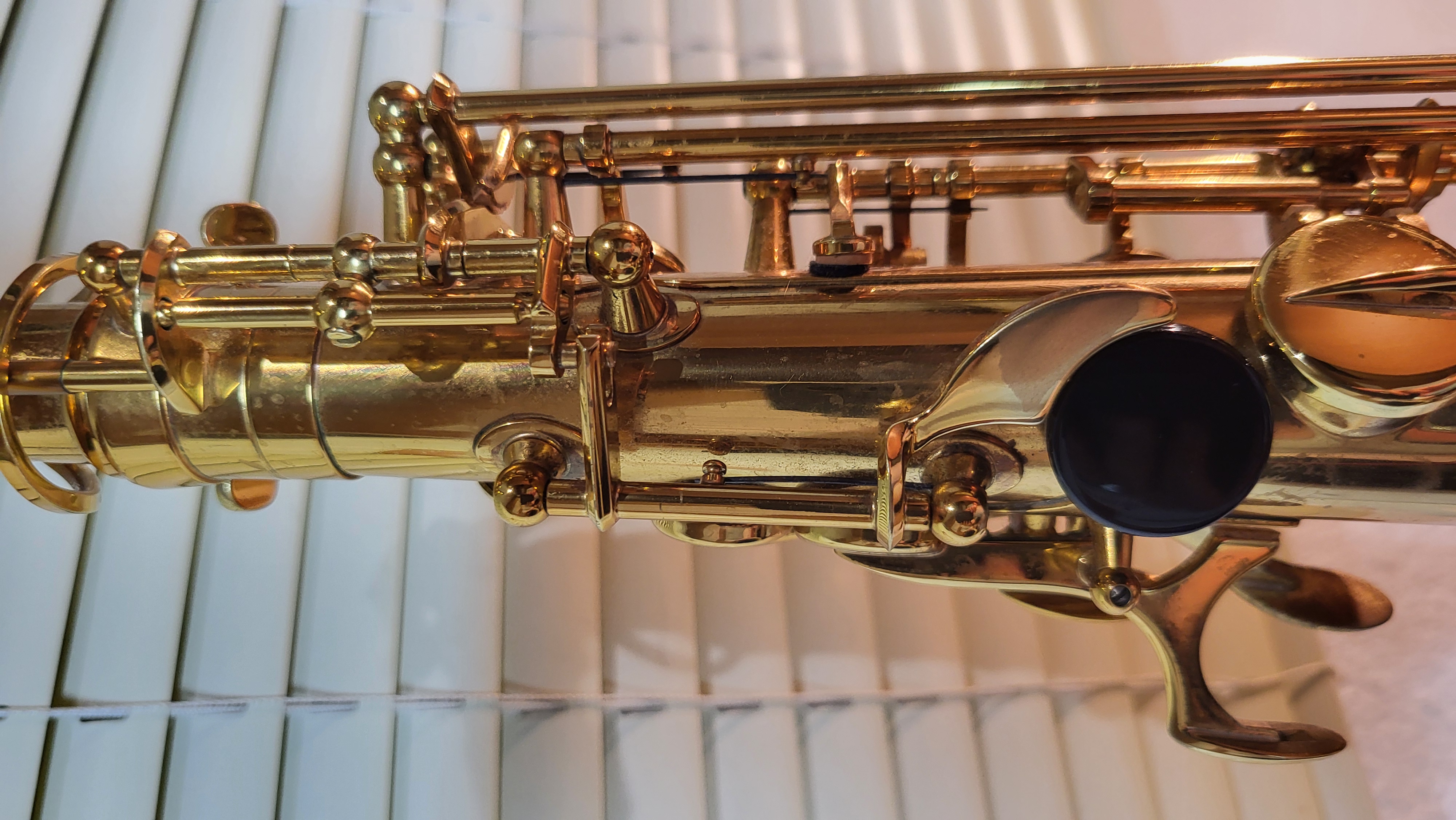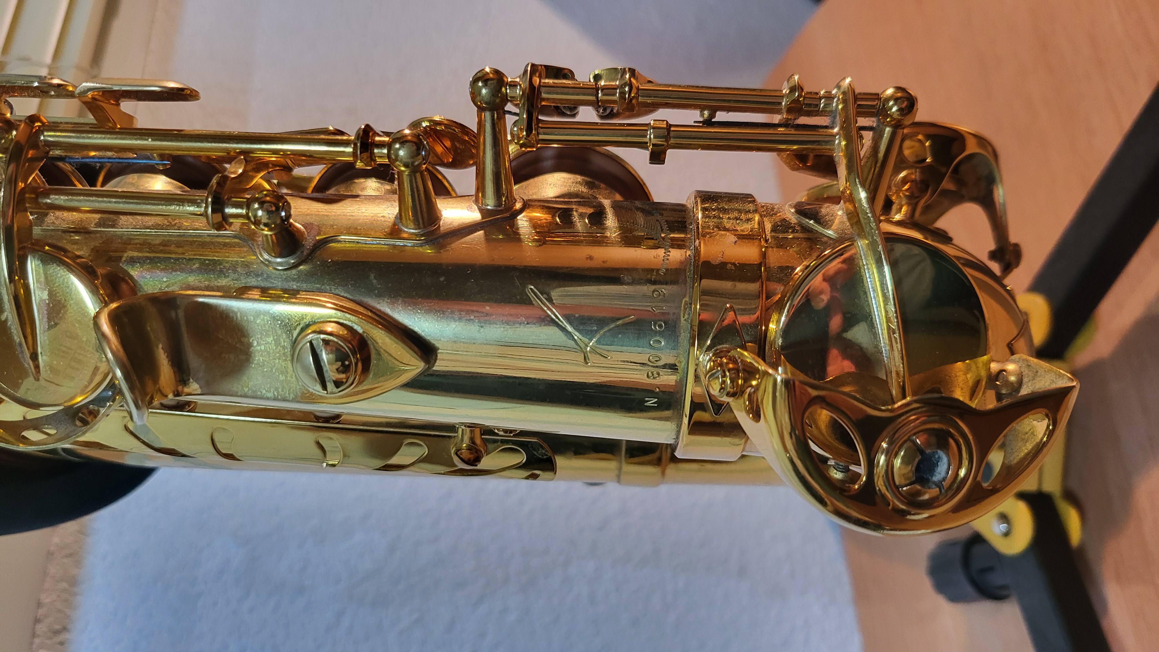 Saxophone Selmer Alto Reference 54 , Finition: Vernis doré foncé, Gravures Reference, Clé de Fa# aigu, vaec Bec Meyer Ebonite n°6, et étui Selmer Reference . Cet instrument professionnel acheté neuf en 2018 ne présente aucun poc , seul est présent l'usure normale du vernis au niveau de certaines clés car cet instrument exceptionnel a été joué régulièrement .Je m'en sépare car je joue essentiellement du ténor et du soprano, et je suis sûr qu'il pourrait faire le bonheur d'un musicien averti .