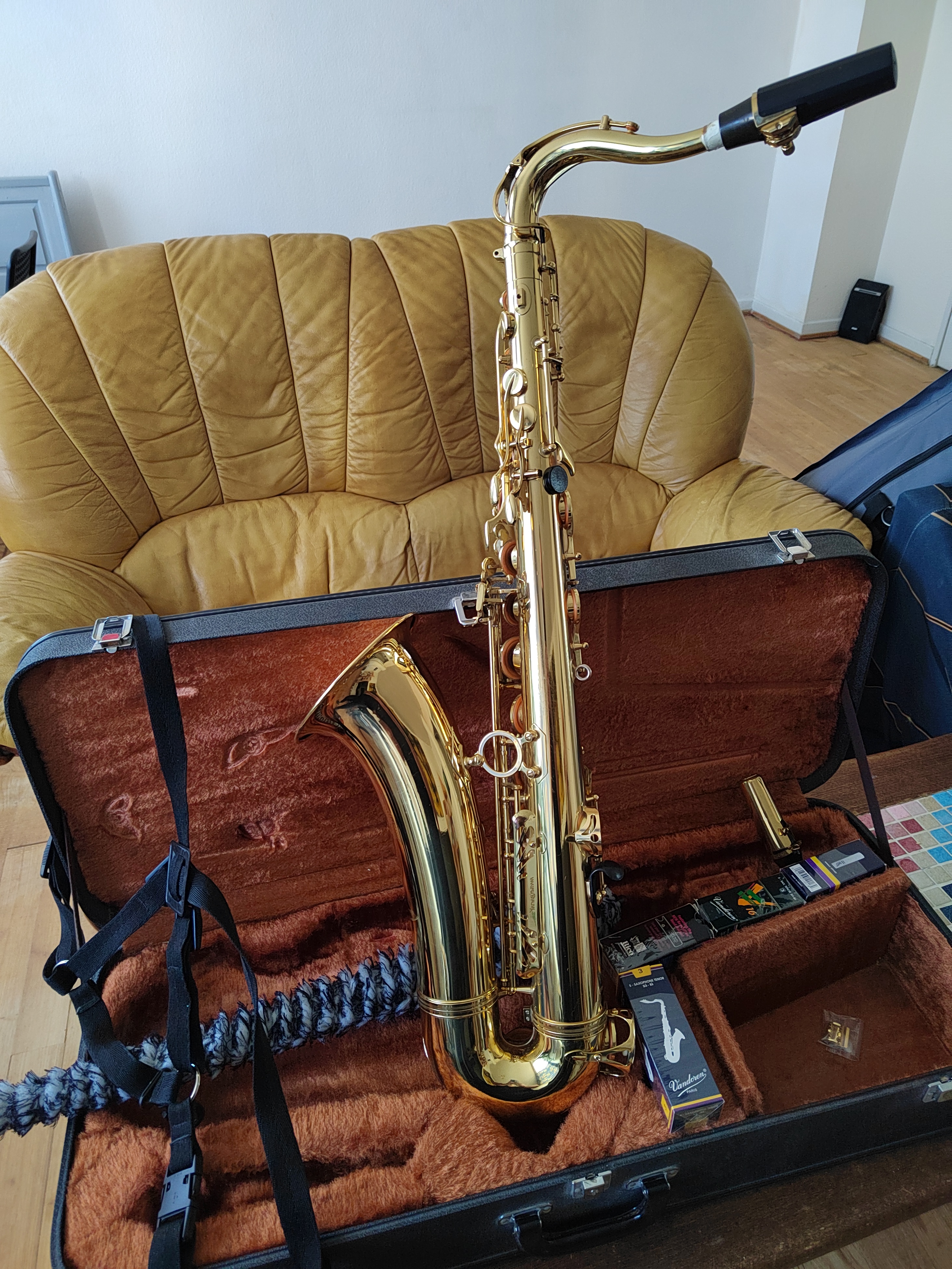 Vends saxophone ténor YANAGISAWA, modèle 900 μ (Numéro de série : 193.776), très rare à trouver.Prix : 2 100 euros ; avec un étui rigide, deux becs et un harnais de soutien. Pratiquement pas servi et en très bon état.