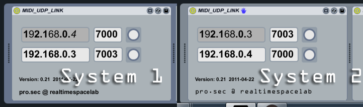Hep ! Encore plus simple , avec ce patch http://www.maxforlive.com/images/screenshots/?ss=MIDI_UDP_LINK_Config_Picture.png&id=629 et le lien http://www.maxforlive.com/library/device.php?id=629