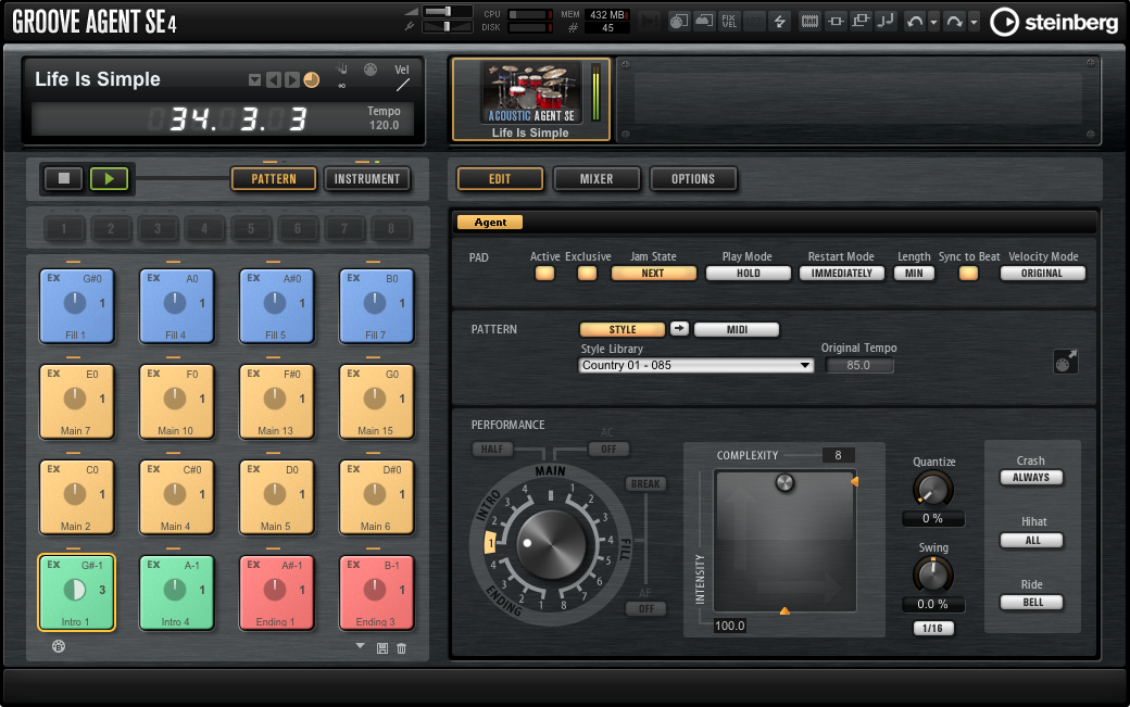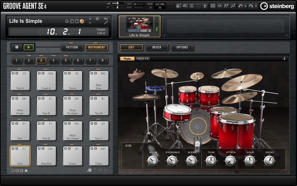 - Un kit de batterie acoustique dans Groove Agent SE 4