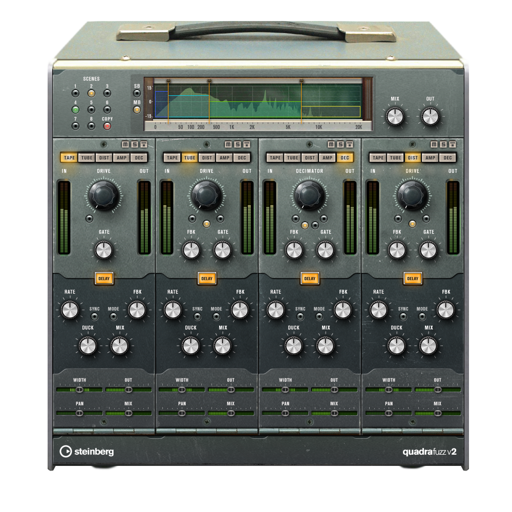- Nouveaux plug-ins Bass Amp avec 6 amplis et 4 baffles (8 positions de micro, une vingtaine d’effets), distorsion Quadrafuzz 2 avec contrôle indépendant de 4 bandes, Multiband Expander, Multiband Envelope Shaper
