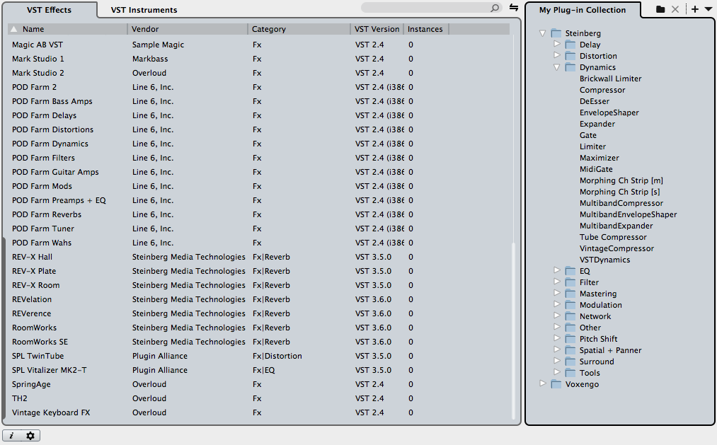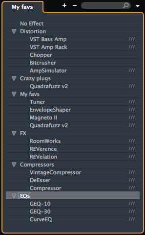 - Gestionnaire de plug-ins pour arranger, trier et grouper vos effets et instruments virtuels