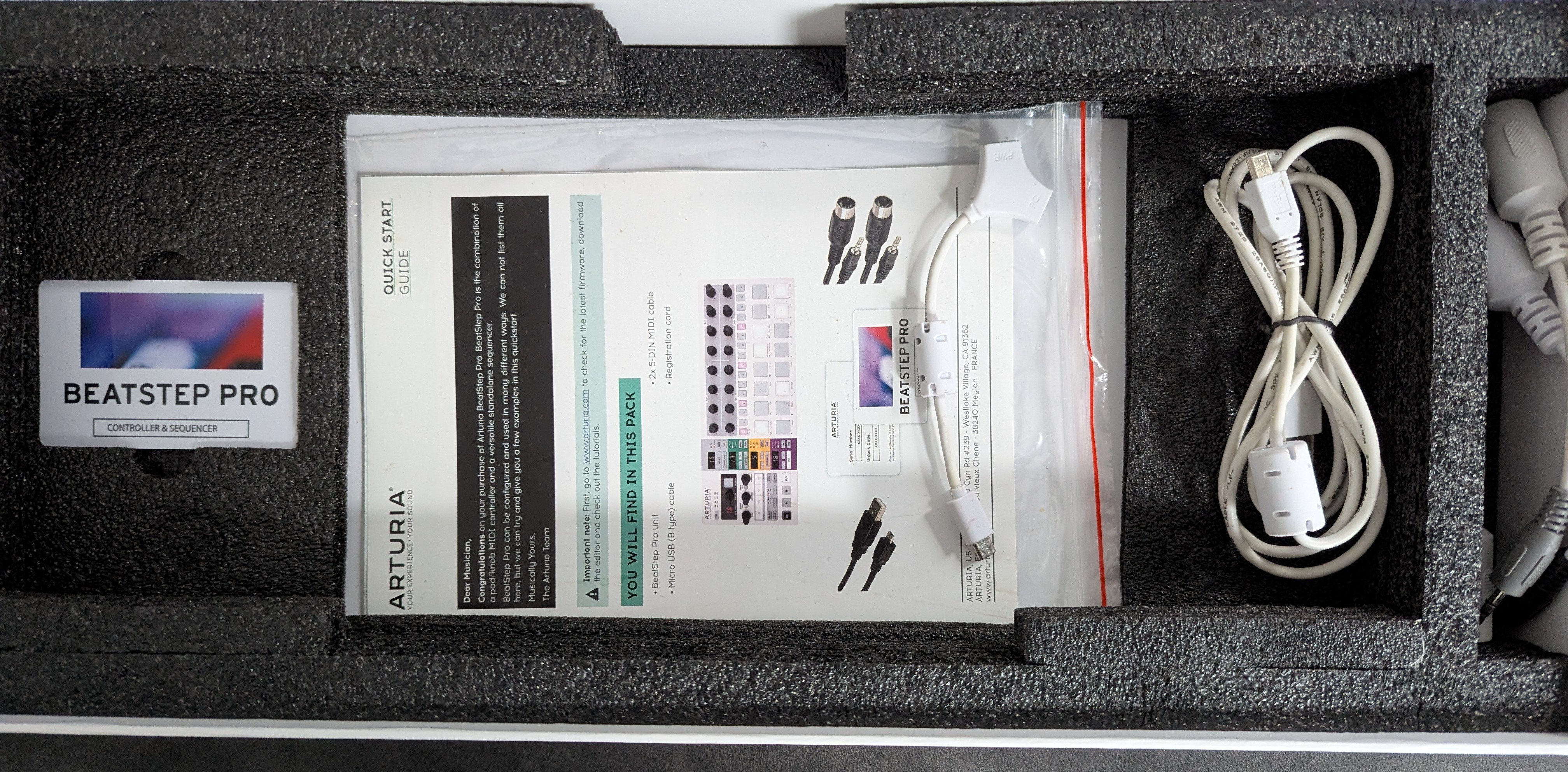 Vendu avec boîte d’origine, tous les câbles, manuel et accessoires d'origine ainsi que la carte d’activation Arturia non utilisée.