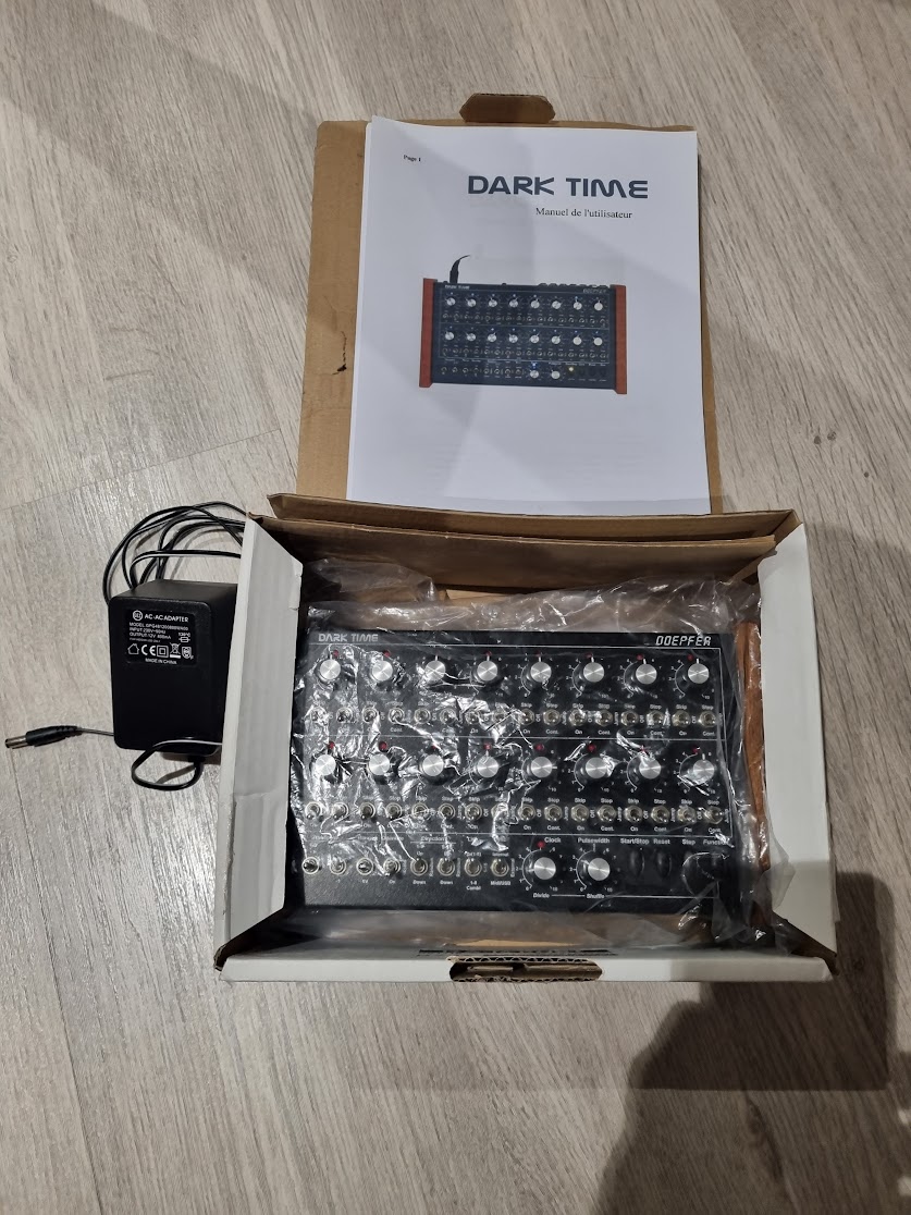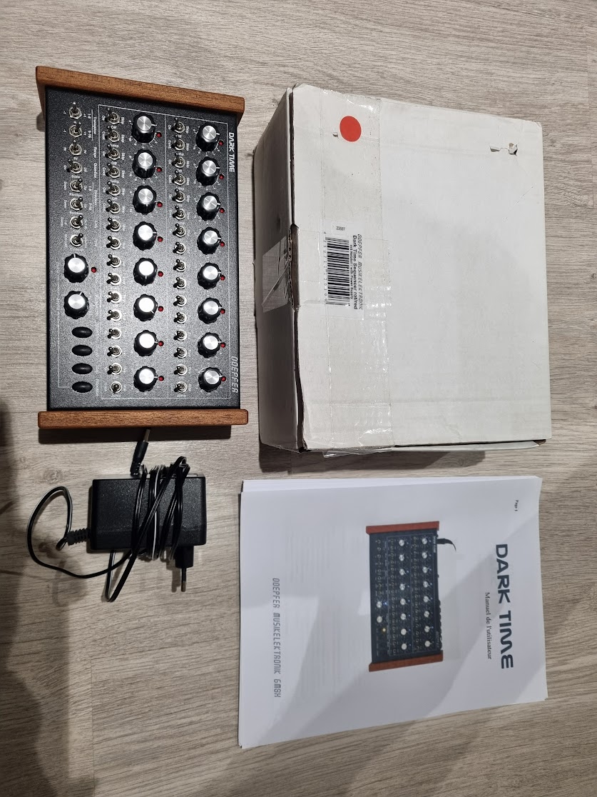 Unité Doepfer Dark Time , séquenceur 2 x 8 pas analogique avec CV / Gate, USB et interface Midi.Cette belle petite machine vous permettra de composer des séquences à partir des commandes analogiques sur la face avant. Potentiomètres et interrupteurs .