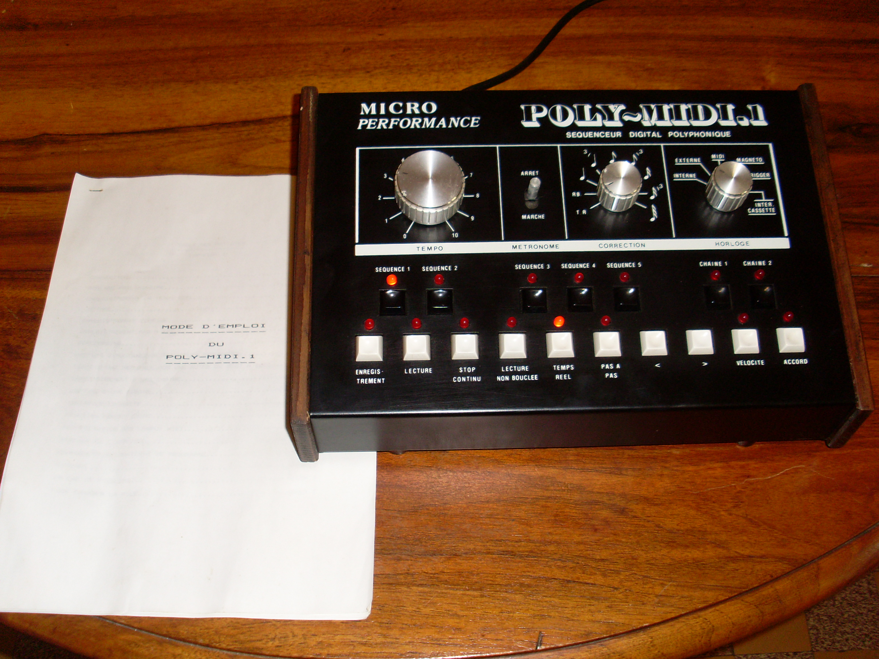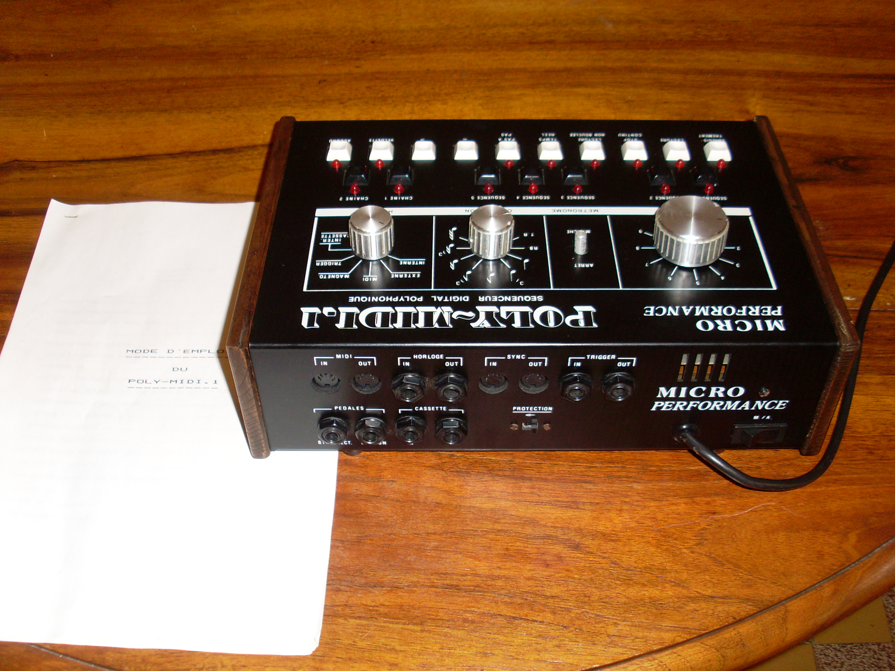 Vds séquenceur vintage année 1984 Micro Performance Poly-Midi 1 pile neuve avec sa notice d'utilisation et son emballage d'origine.
