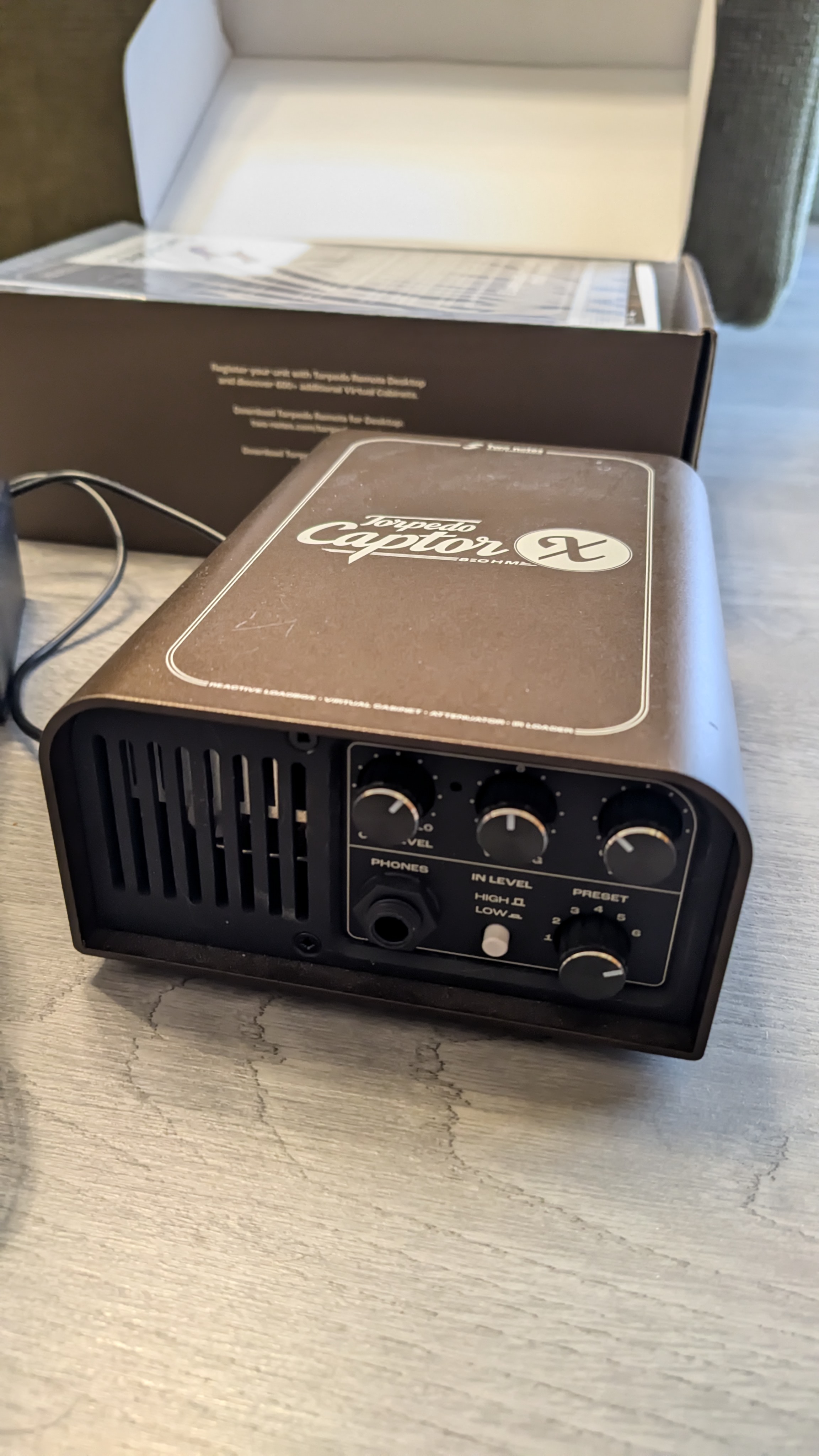 Je vends ce Two Notes Torpedo Captor X SE en très bon état.Il s'agit d'un Captor X en édition spéciale, dédié aux sons vintage, avec une lumière orange au lieu de la lumière bleue habituelle, et qui une fois synchronisé à votre compte, vous donne accès à 32 enceintes DynIR supplémentaires (par rapport à la version de base) créées à partir d'enceintes vintage, ainsi que 20 presets créés par Pete Thorn.