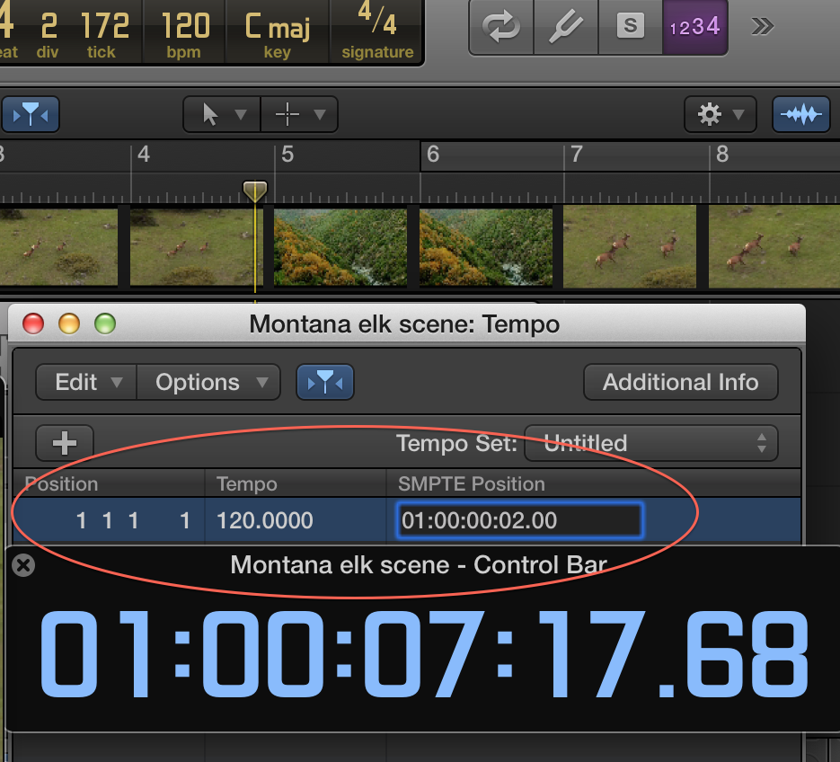 Imaginez que vous chargiez un clip vidéo dans votre STAN, puis choisissiez n’importe quel morceau dans vos archives musicales : vous chargez ce morceau dans votre session, et jouez la vidéo et la musique en même temps. Selon toute vraisemblance, il y aura bien des passages où la musique semble synchronisée avec ce qui se déroule à l’image — par exemple, un certain rythme se fait entendre simultanément à la coupure d’un plan à un autre à l’écran (une transition). Cela ferait encore plus d’effet si ce temps-là était le temps frappé d’une mesure.