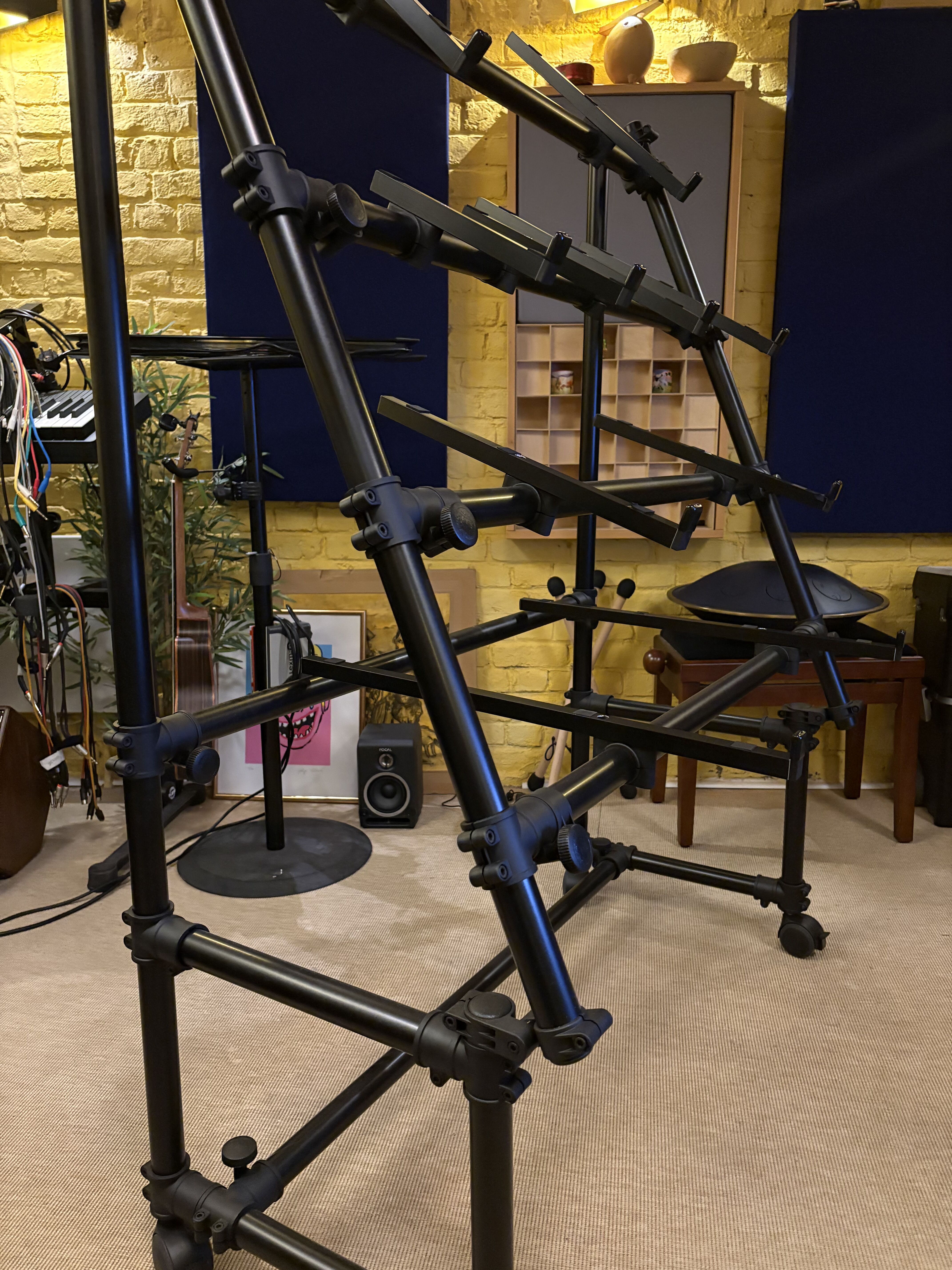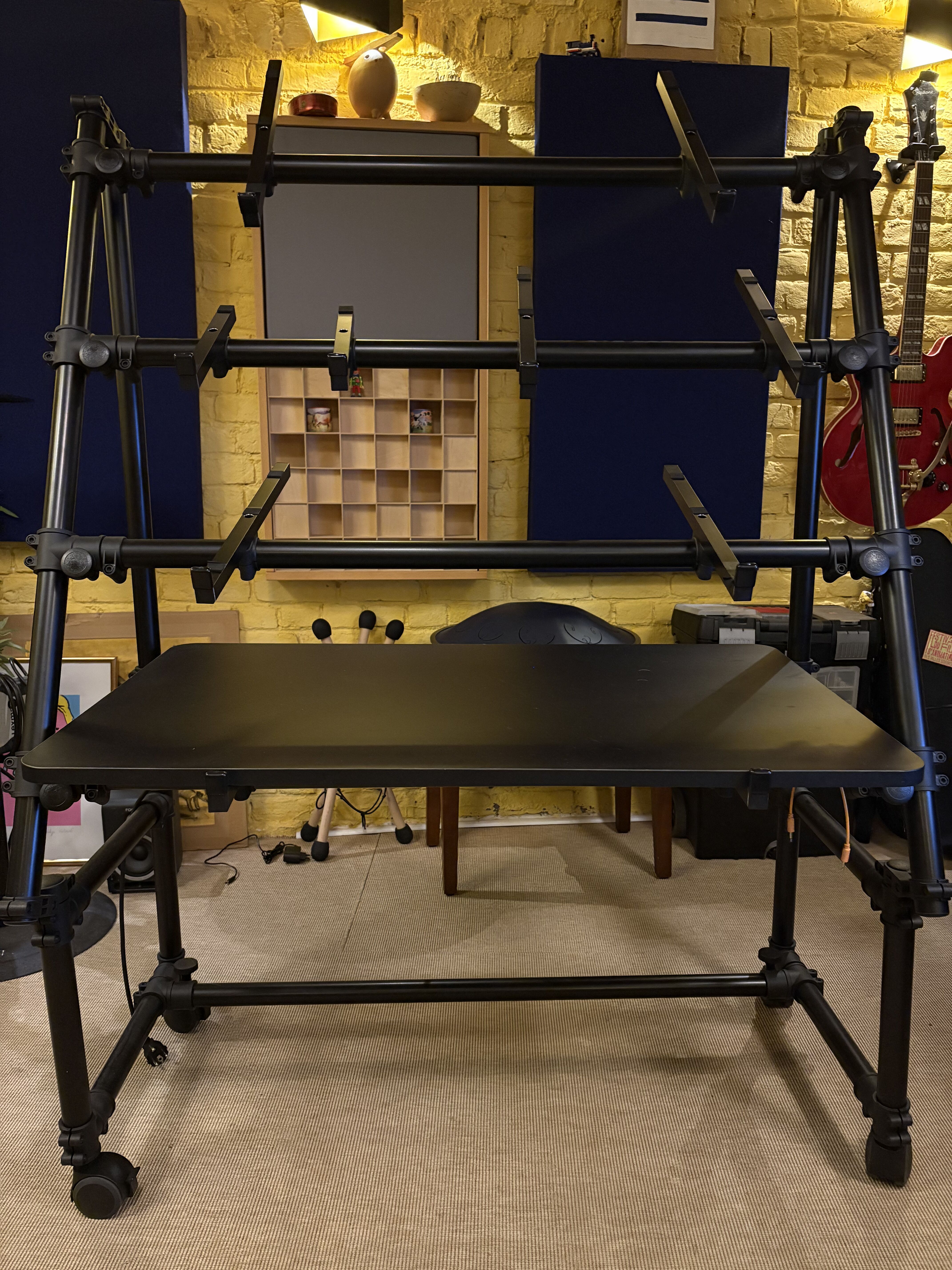 Description : Support avec roulettes pour 4 claviers En aluminium revêtu de poudre noire