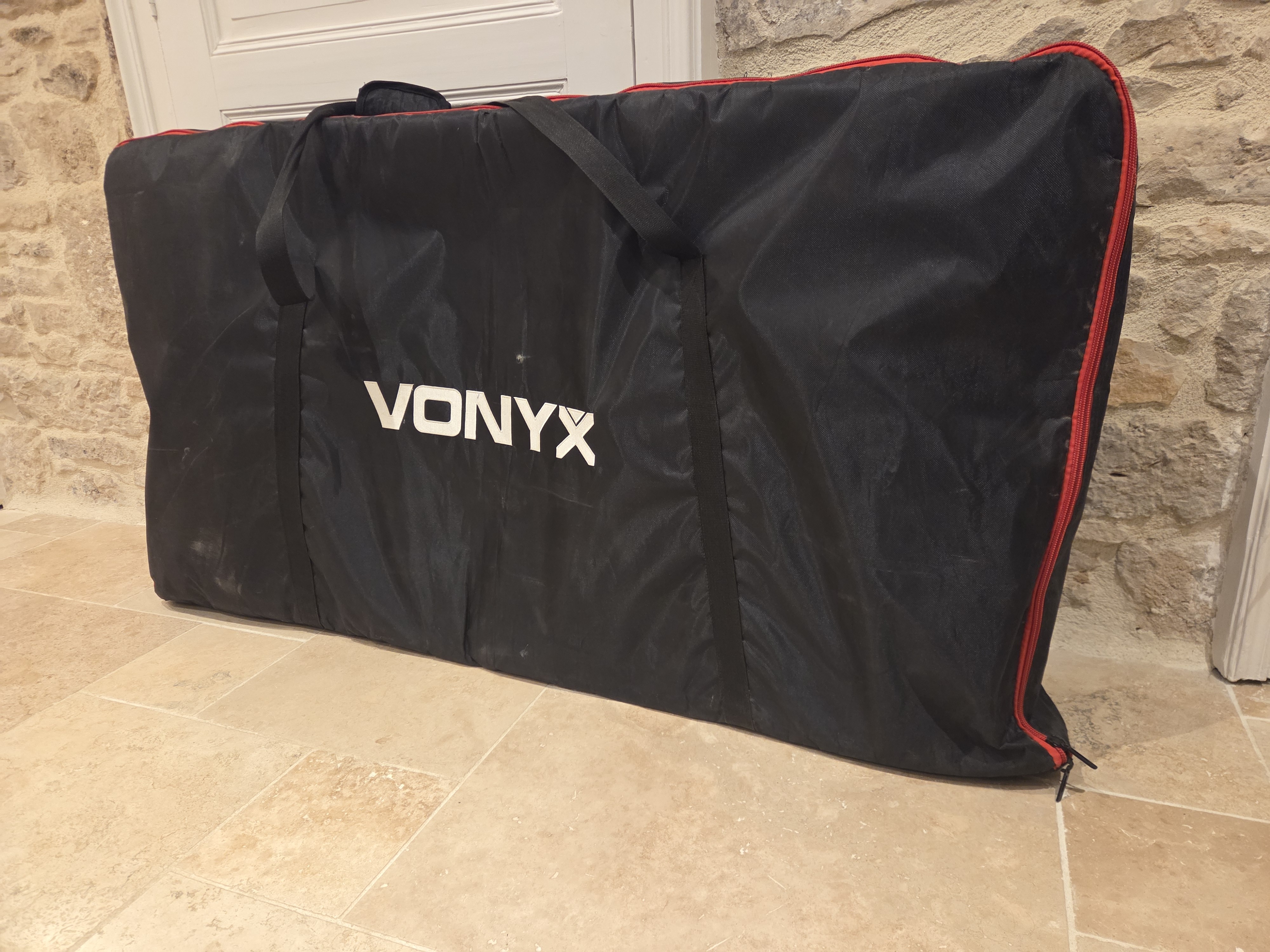 Pupitre, Stand régie DJ complet livré avec tissus lycra noir et blanc et sacoches de transportPeut être éclairé par l'arrière pour créer des effets lumineux