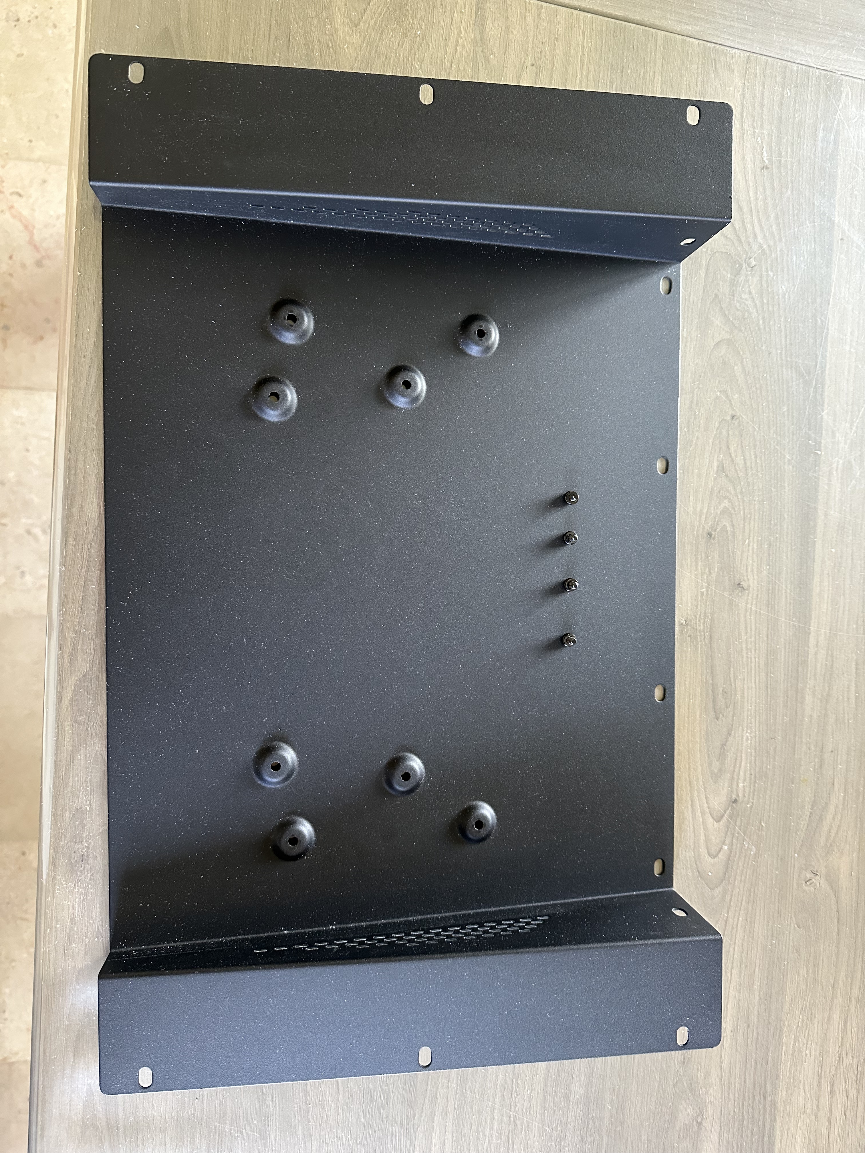 Plaque pour accueillir une console Touchmix-16 de la même marque plus les 4 vis et rondelles. Pratique et parfaitement adaptée.