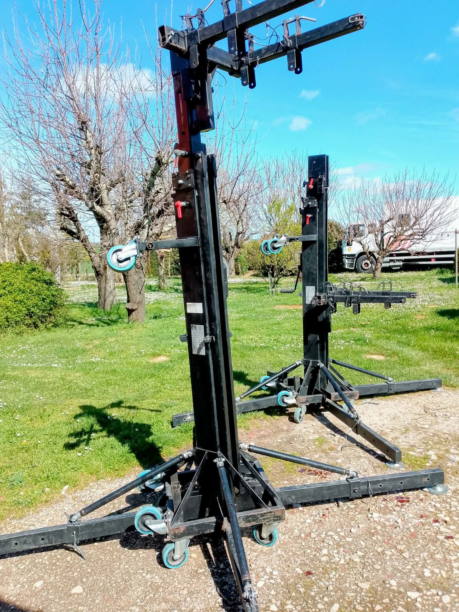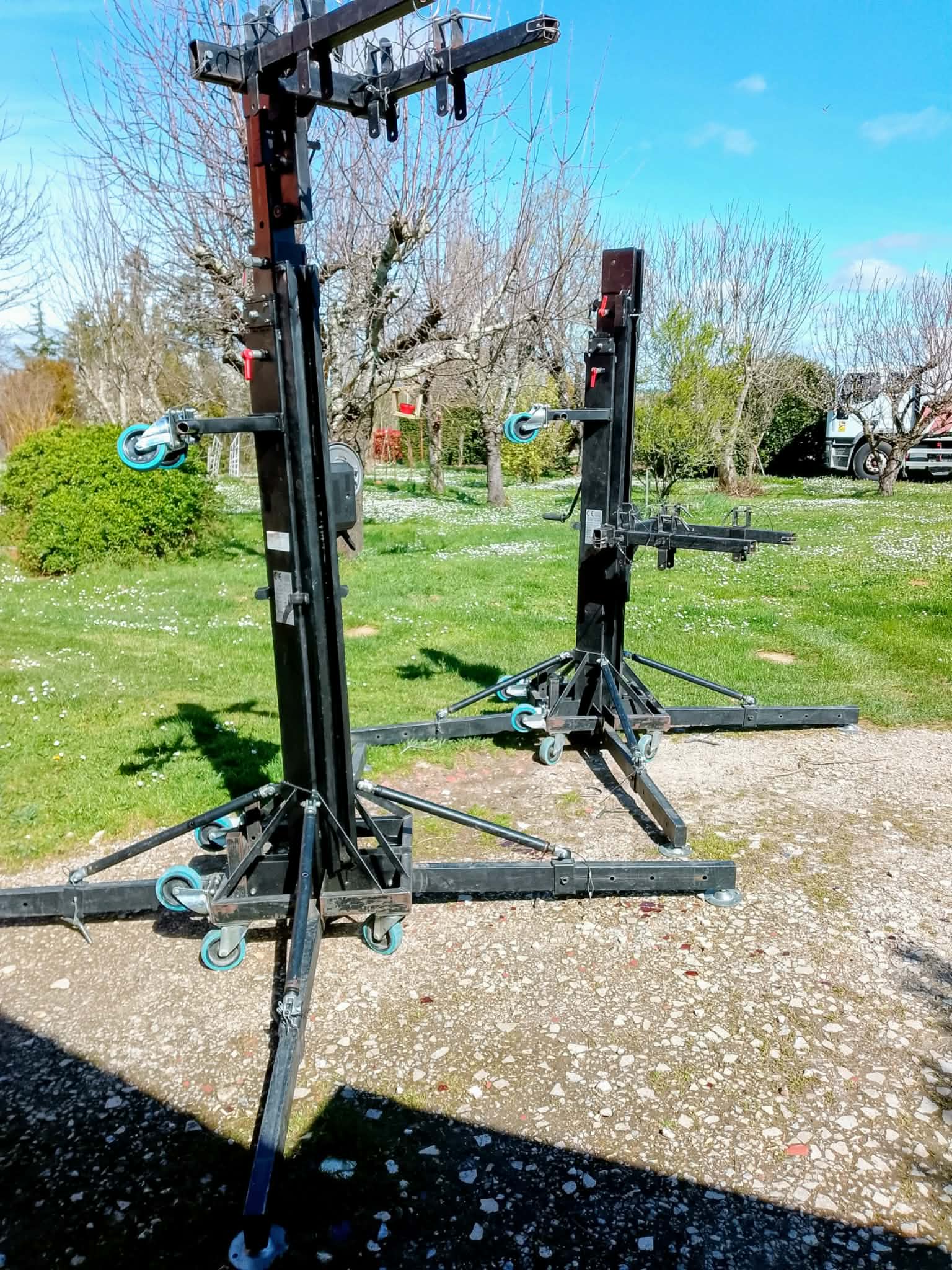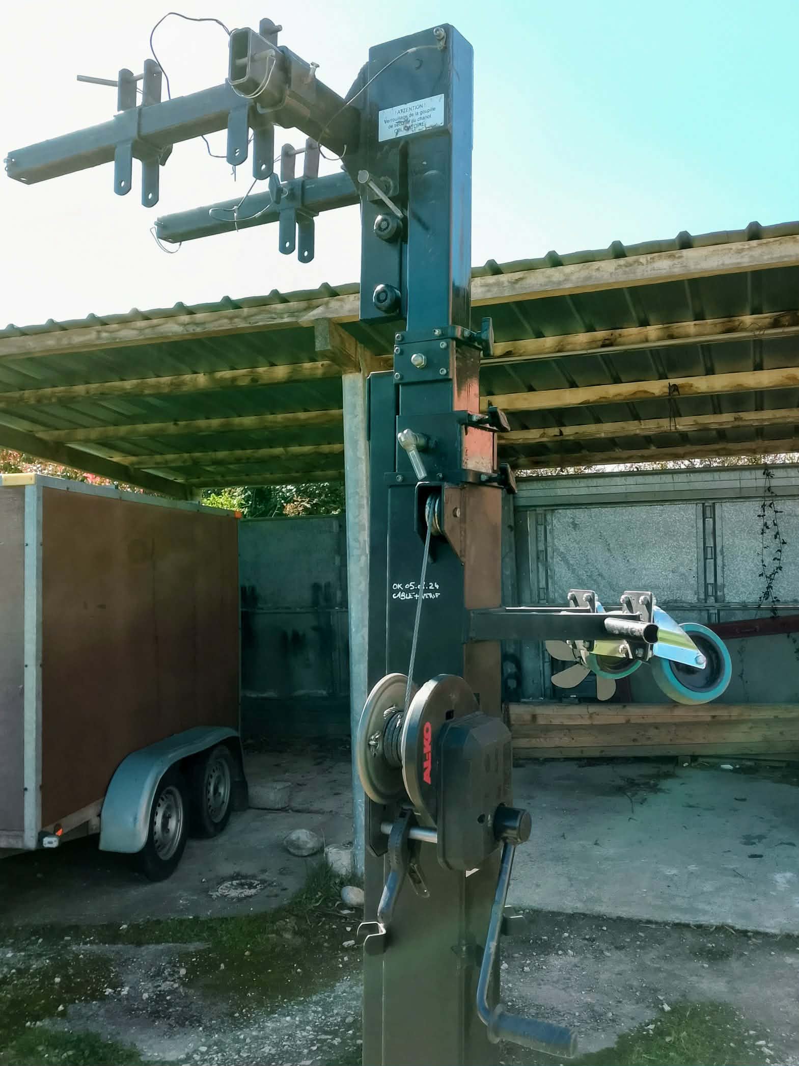 Vends 2 pieds de levage à fourche ASD ALT 600, très bon état de fonctionnement, treuils et câbles changés récemment, entretenus régulièrement, 3750€ la paire. Proche de Villefranche de Lauragais 31ASD ALT 600 Pied de levage treuil pro 6m