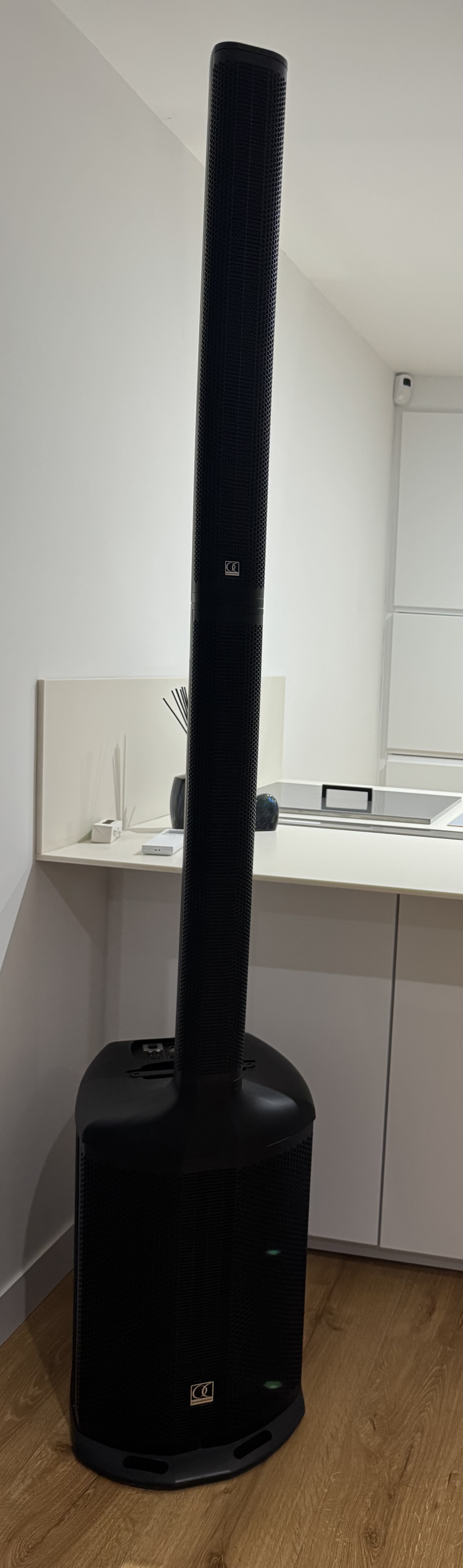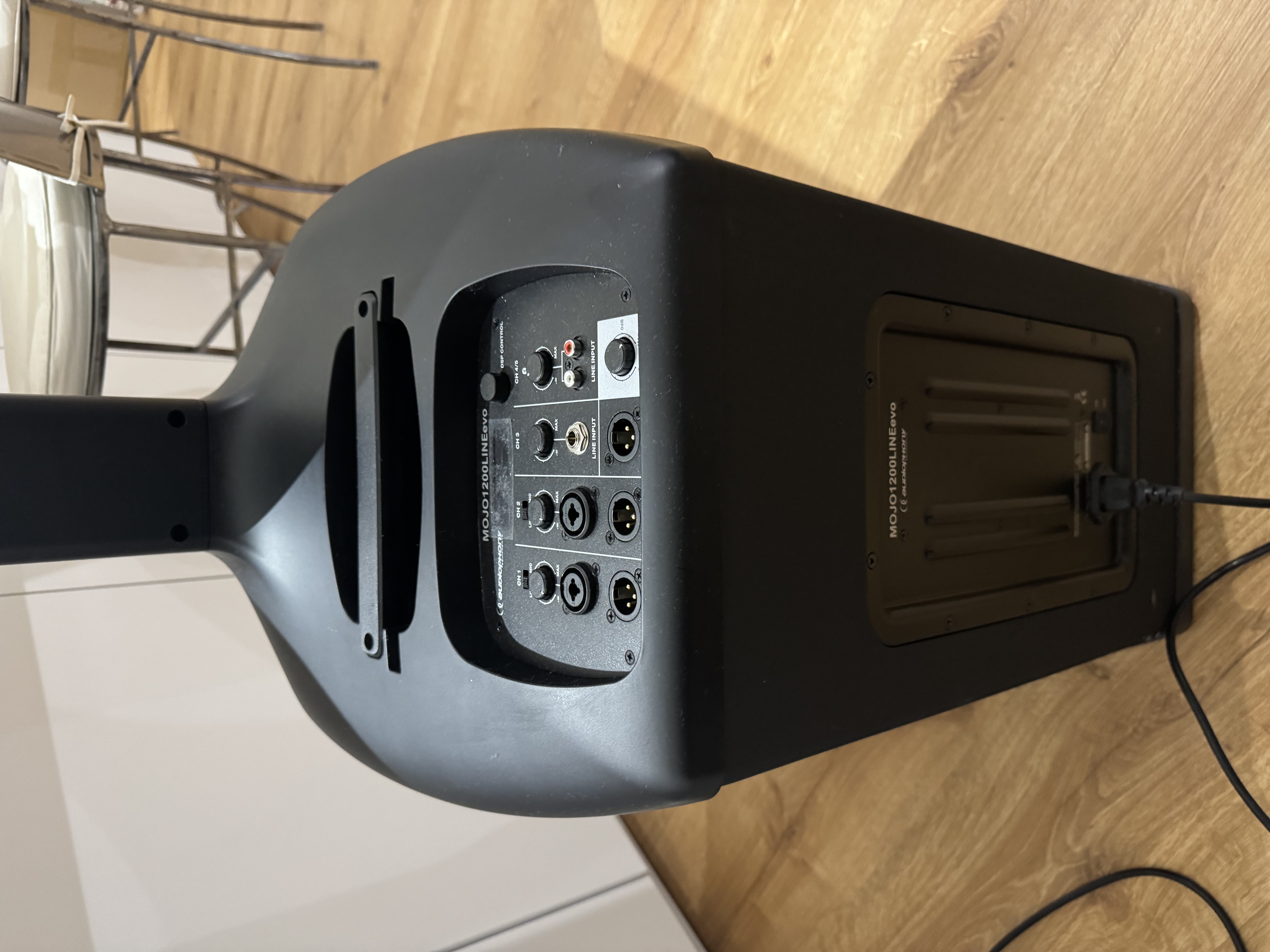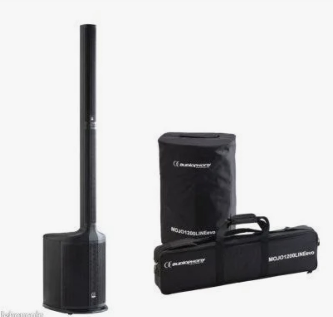 Enceinte ayant peu servie en utilisation privée, acheté en magasin spécialisé et en état quasi neuve.Le MOJO1200LINE Evo d’Audiophony est un système colonne line array polyvalent, conçu pour offrir une puissance sonore impressionnante dans un format compact et facile à transporter. Idéal pour les prestations live, les DJ mobiles ou les conférences, ce système allie élégance et performance. Avec une puissance de 1200W RMS, le MOJO1200LINE Evo garantit un son clair et dynamique, capable de couvrir des espaces de taille moyenne à grande. Le système se compose d’un caisson de basses de 12 pouces et d’une colonne équipée de haut-parleurs 6 x 3 pouces, offrant une dispersion sonore homogène. Sa conception modulaire permet un montage rapide et un transport facile, parfait pour les utilisateurs mobiles. Le MOJO1200LINE Evo se distingue par sa qualité sonore exceptionnelle grâce à un amplificateur classe D et un traitement DSP intégré. Son égaliseur permet d’ajuster le son selon les besoins, tandis que sa réponse en fréquence étendue (jusqu’à 20 kHz) assure une restitution fidèle des basses aux aigus. Avec un design robuste et élégant, ce système colonne est aussi esthétique que pratique. Que ce soit pour des concerts live, des soirées DJ, des événements d’entreprise ou des installations fixes, le MOJO1200LINE Evo est une solution audio polyvalente et fiable. Sa facilité d’installation et sa portabilité le rendent idéal pour les professionnels en déplacement. Caractéristiques - Réponse en fréquence : 38 Hz – 18 kHz - Niveau de pression acoustique maximal (SPL) à 1 mètre : 122 dB - Amplification : - Étages basses : 1 x 300W RMS / 600W max - Étages mid/high : 1 x 300W RMS / 600W max - DSP : 24 bits (1 entrée, 2 sorties) avec égalisation, préréglages, filtre passe-bas, délai et Bluetooth TWS - Contrôles de niveau : Réglage individuel pour chaque canal et master - Colonne : - Puissance : 180W RMS / 360W max - Impédance nominale : 6 Ω - Haut-parleurs : - 6 x 3 pouces (boomers) - 1 x 1 pouce (tweeter) - Dispersion : 120° (H) x 30° (V) - Connecteur : Insertion directe dans le caisson - Dimensions : 103 x 750 x 100 mm (chaque segment) - Poids net : - Colonne : 3,75 kg - Entretoise : 2,10 kg - Caisson de basses : - Puissance : 250W RMS / 500W max - Impédance nominale : 4 Ω - Haut-parleur : 1 x 10 pouces - Dimensions : 389 x 626 x 626 mm - Poids net : 21,8 kg - Connectivité : - Entrées : - CH1 : 1 x Combo XLR/Jack (ligne/micro) - CH2 : 1 x Combo XLR/Jack (ligne/micro) - CH3 : 1 x Jack (ligne) - CH4/5 : 1 x RCA L/R (ligne) + Bluetooth® - Sorties : - 1 x XLR MIX OUT symétrique pour connexion à un autre système - 2 x XLR LINE OUT symétriques pour les canaux CH1 et CH2 - Fonctionnalités supplémentaires : - DSP intégré : Permet des ajustements précis de l'égalisation, des préréglages, du filtre passe-bas et du délai - Bluetooth TWS : Offre la possibilité de connecter sans fil deux systèmes pour une véritable expérience stéréo - Contrôles de niveau : Réglage individuel pour chaque canal et contrôle master pour une gestion optimale du mixage