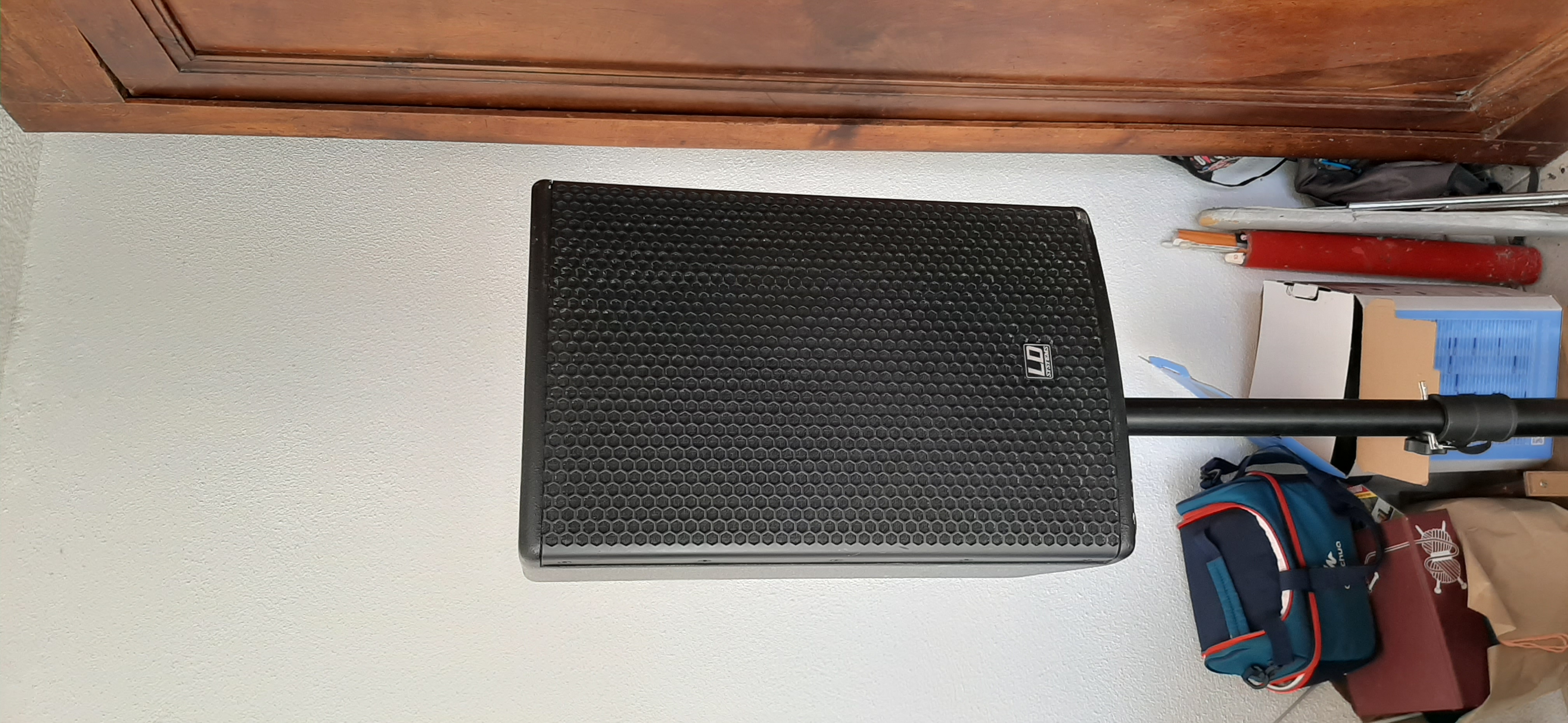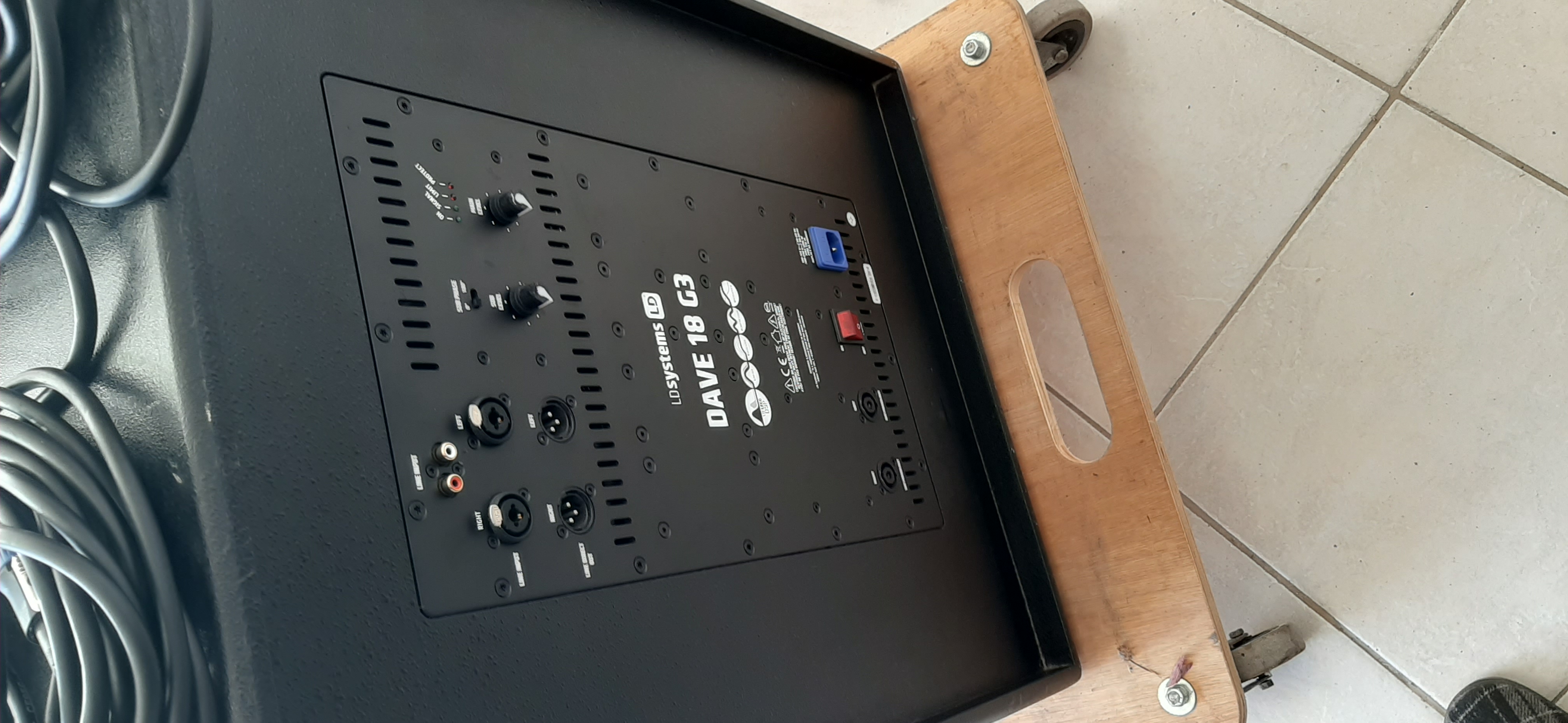 Compris avec : Les câbles speakon pour relier le caisson aux satellites, le câble d'alimentation, les pieds pour les satellites et une planche à roulettes pour le transport/déplacement du caisson.