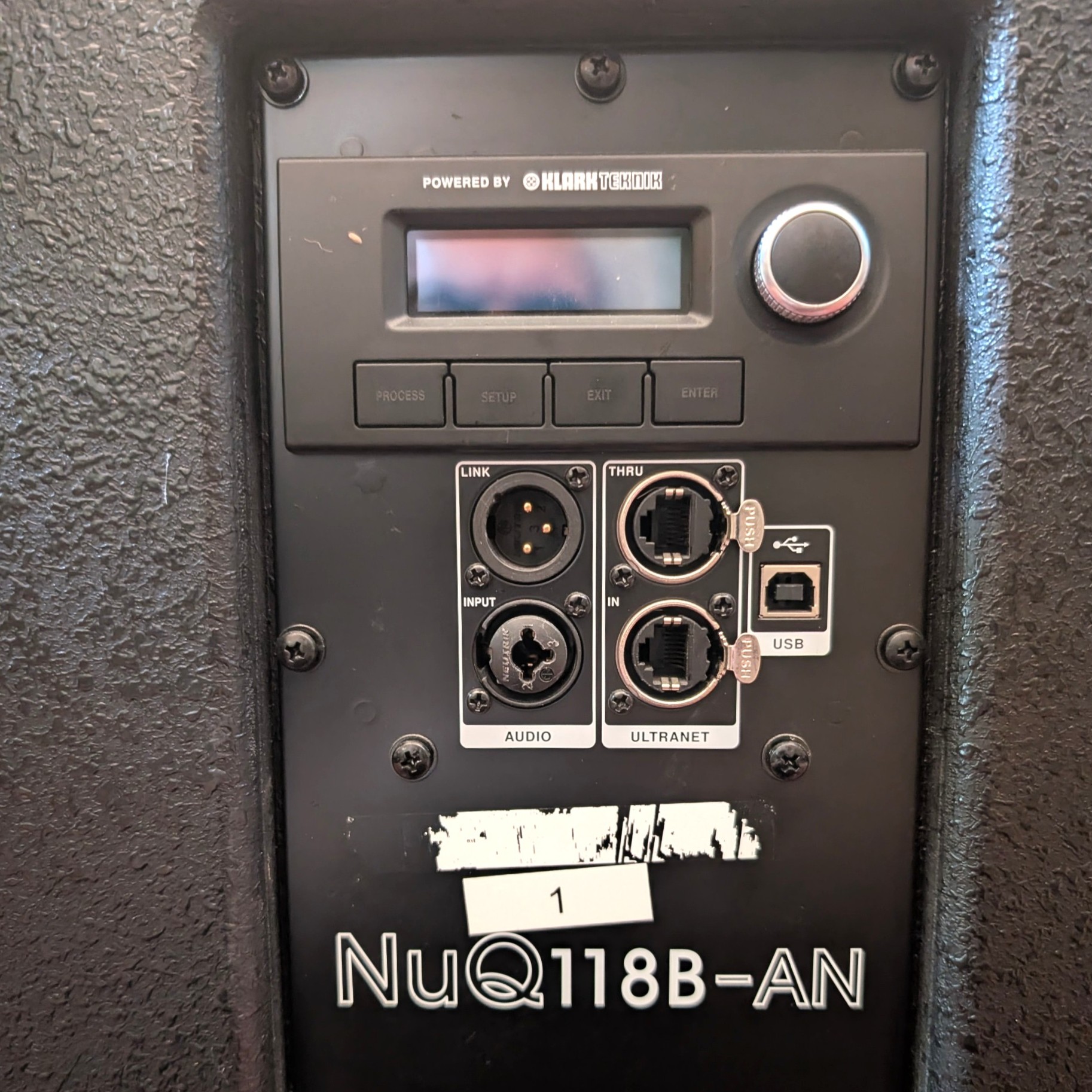 A noter la connectique RJ45 pour brancher l’enceinte sur une console Behringer X32 ou Midas M32 en passant par le port Ultranet (16 canaux).