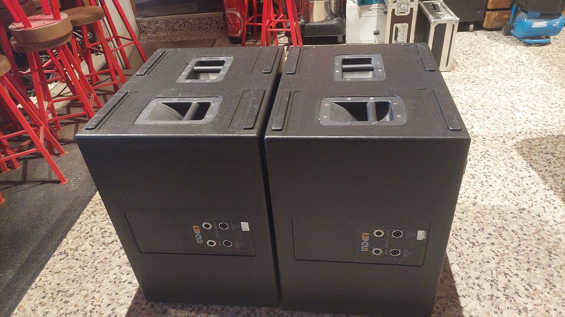 2 SUBS MDC MDC1 ENCEINTE SUB-GRAVE PRINCIPE ACOUSTIQUE BASS REFLEX EVENTS A PROFIL HAUTE VITESSE 1 x 18” NEODYME 1800 Watts AES / 3600 Watts Program 4 Ohms