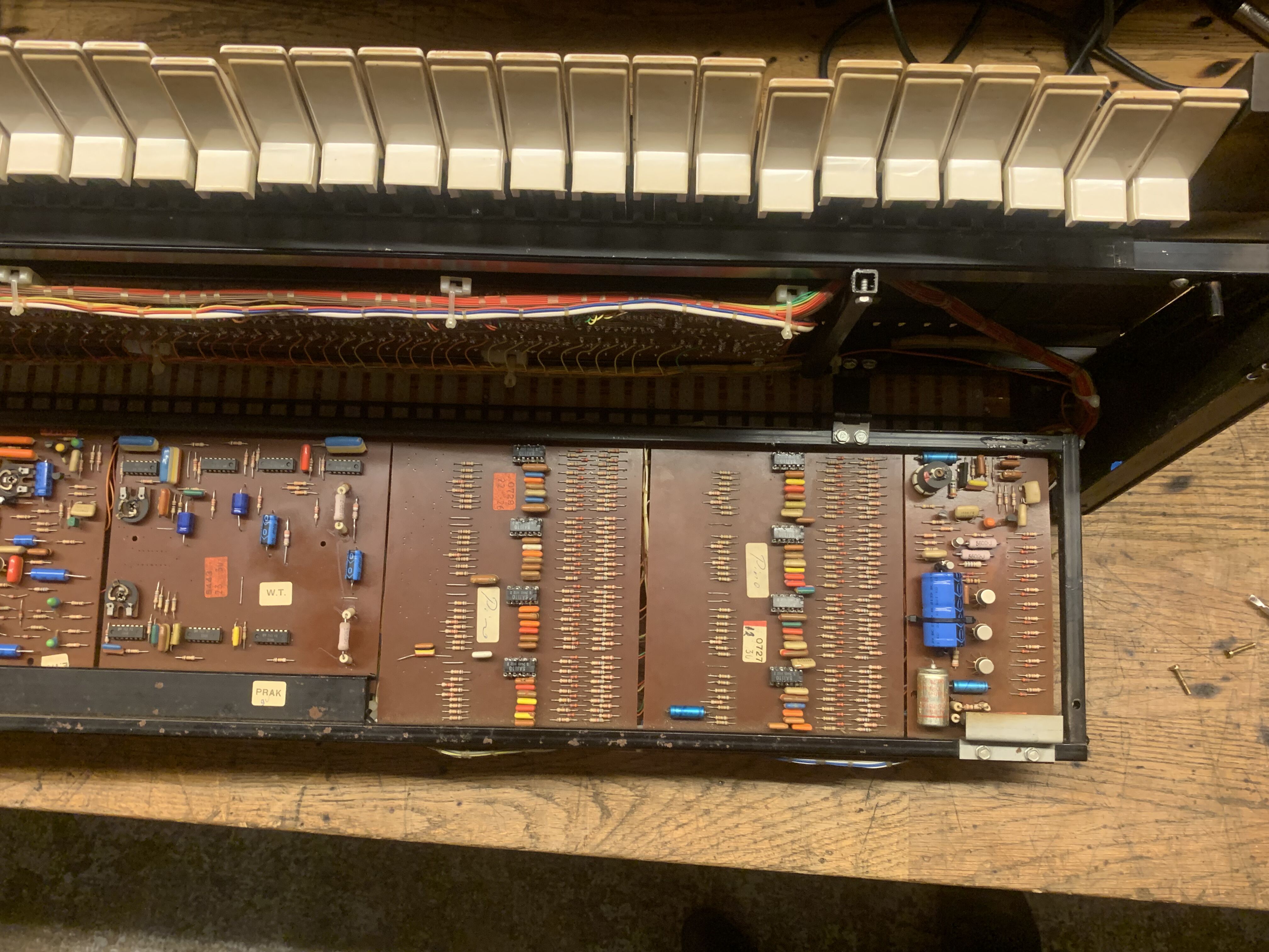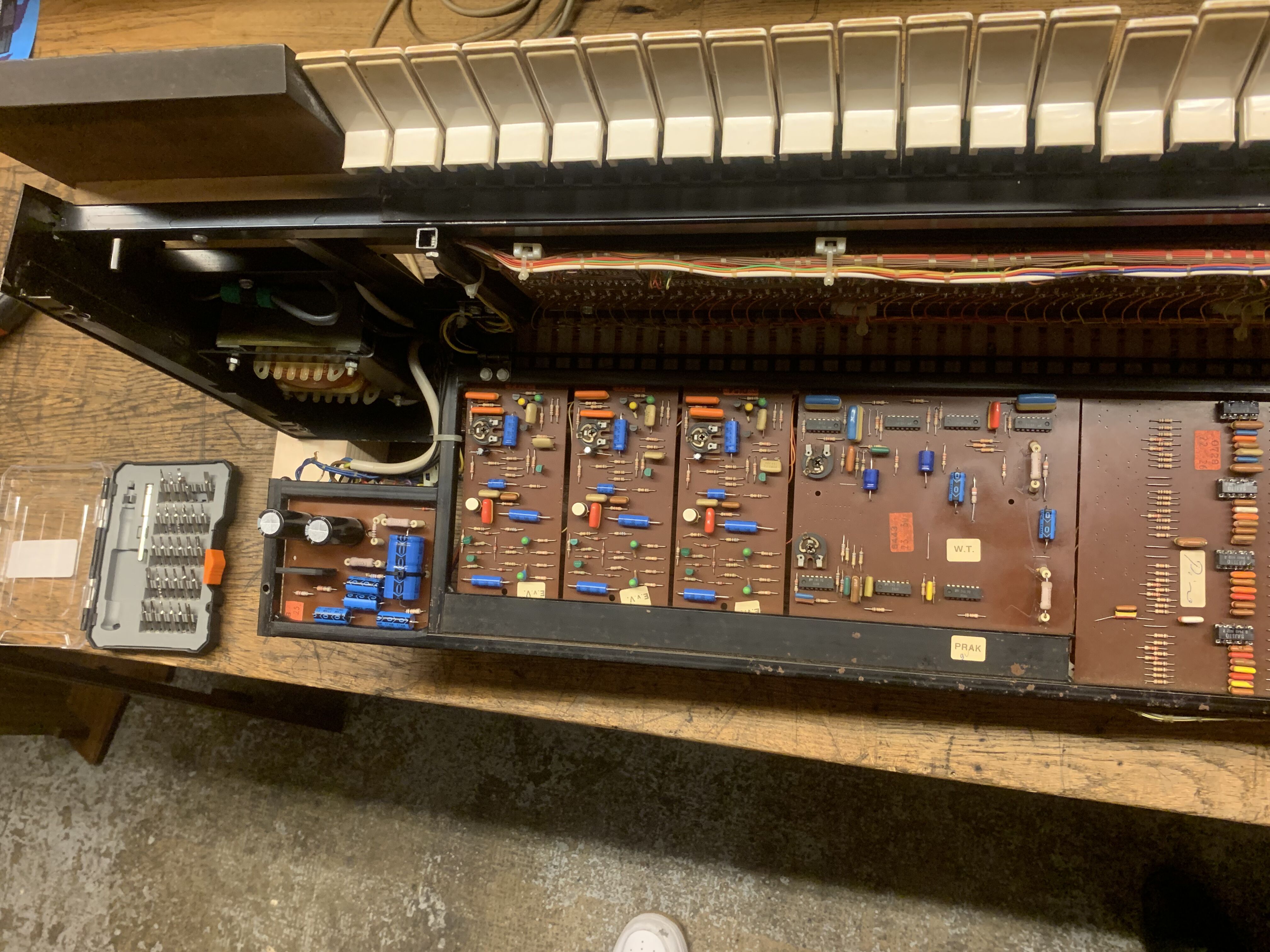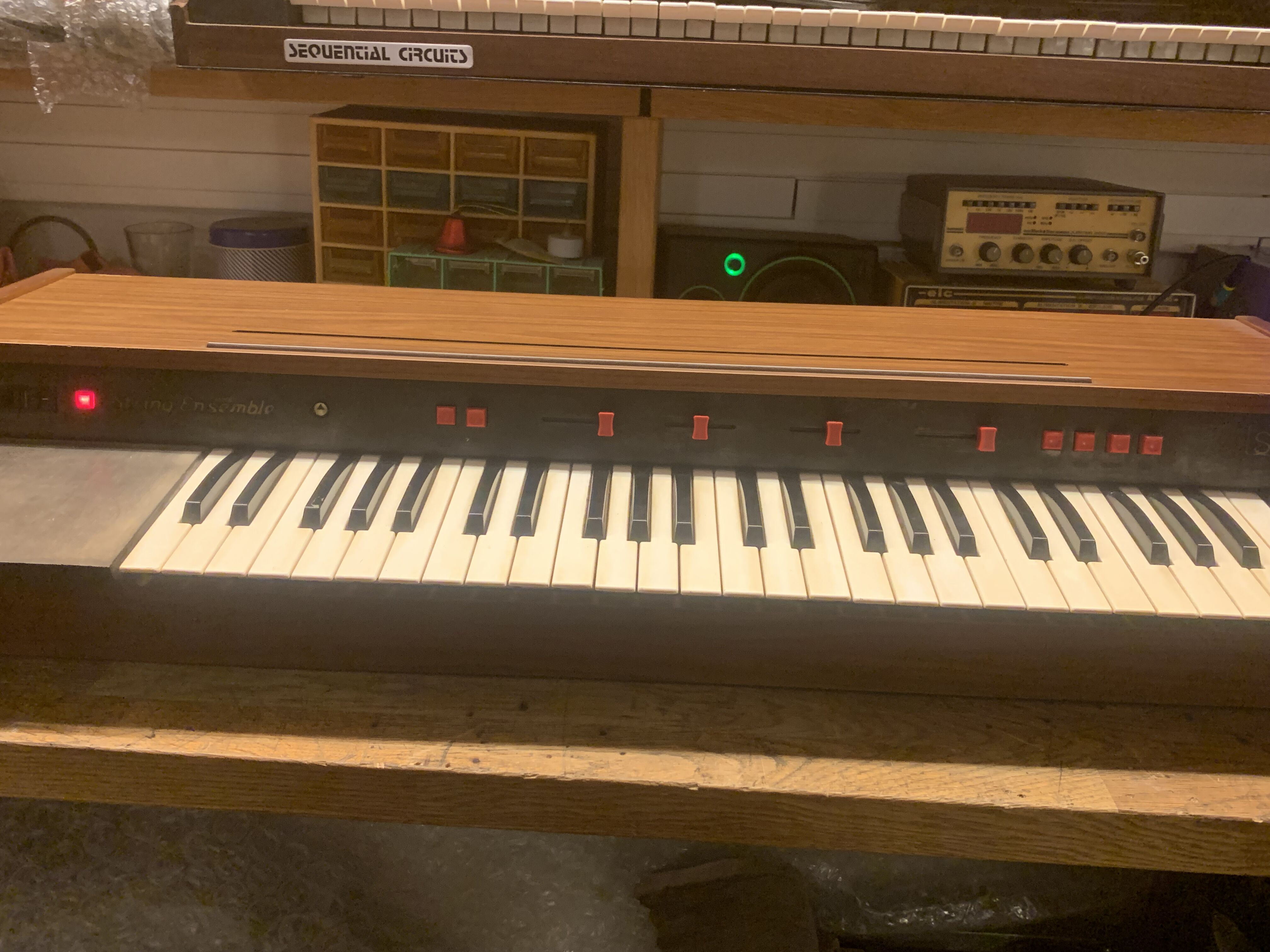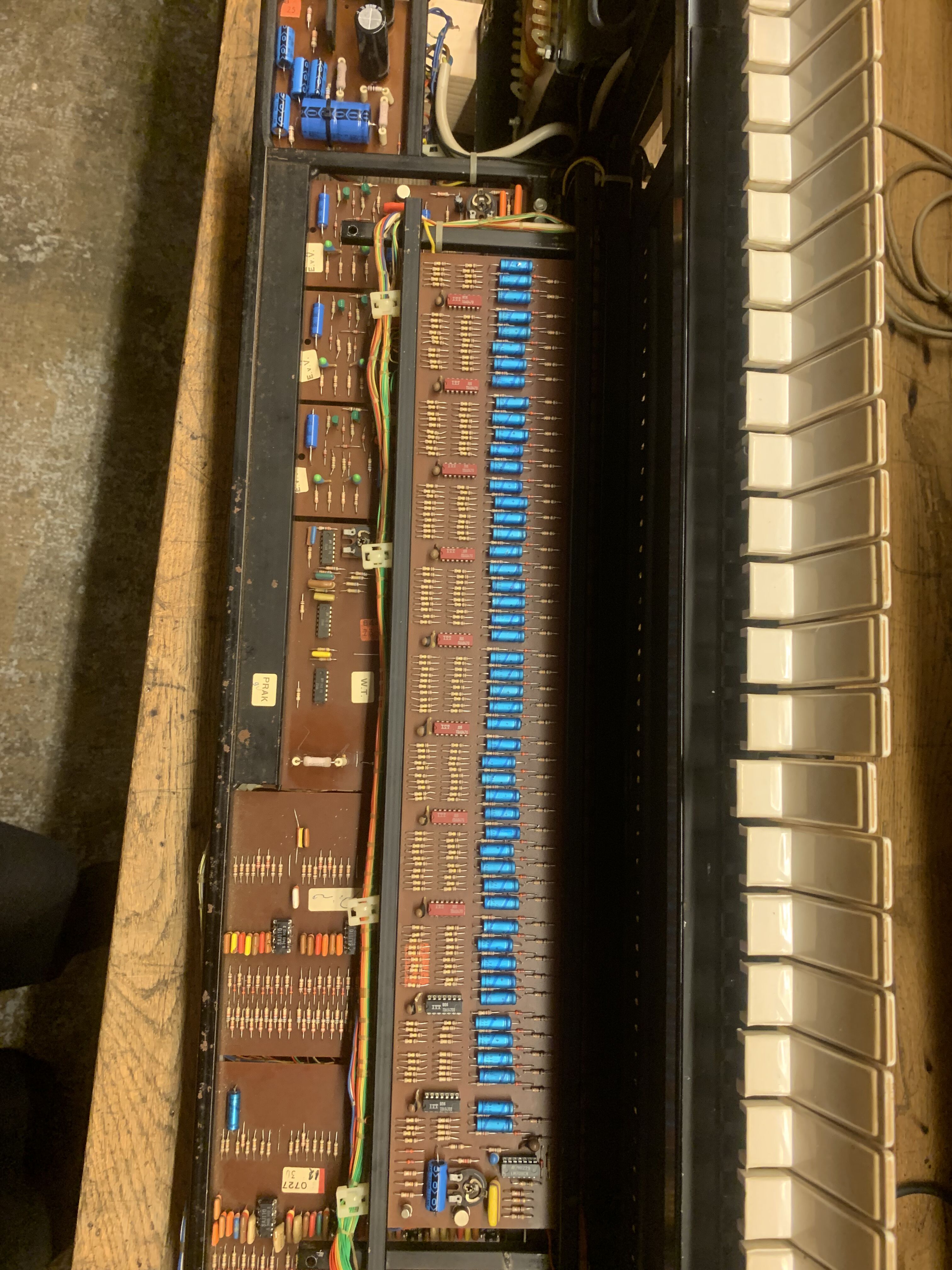 Je vends un synthétiseur vintage Solina String-Ensemble Mk1, la version que sonne le mieux ! Le chorus est toujours activée sur la version Mk1. Il n'y a pas de bouton d'activation/désactivation du chorus à côté du clavier comme sur le Mk2. Le synthétiseur fonctionne parfaitement et produit un son magnifique !L'alimentation a été refaite à neuf, tous les ships ont été changé et mis sur support (plus facile à changer s'ils lâchent à l'avenir), une grande partie des condensateurs et tous les dividers ont également été changé.