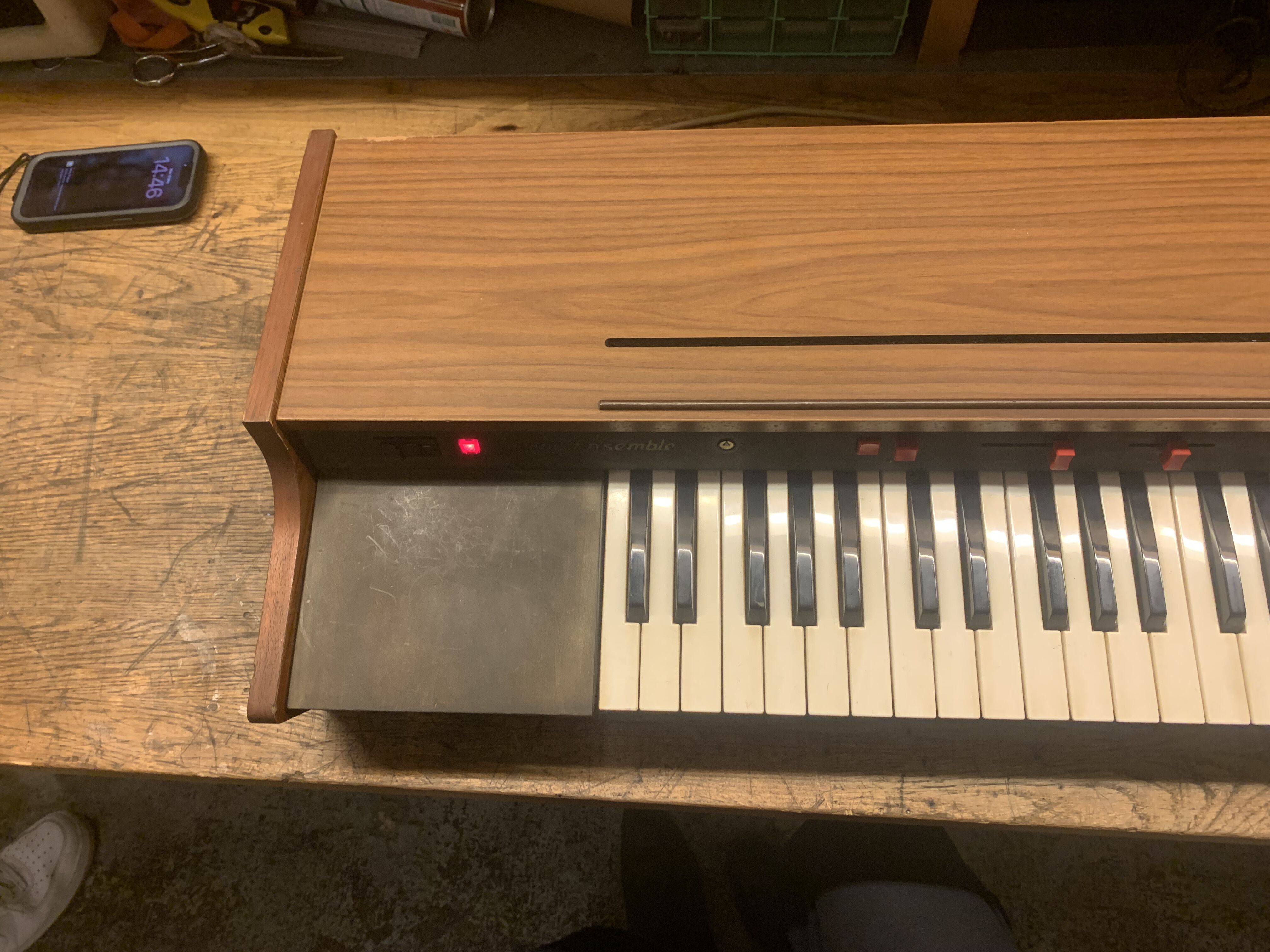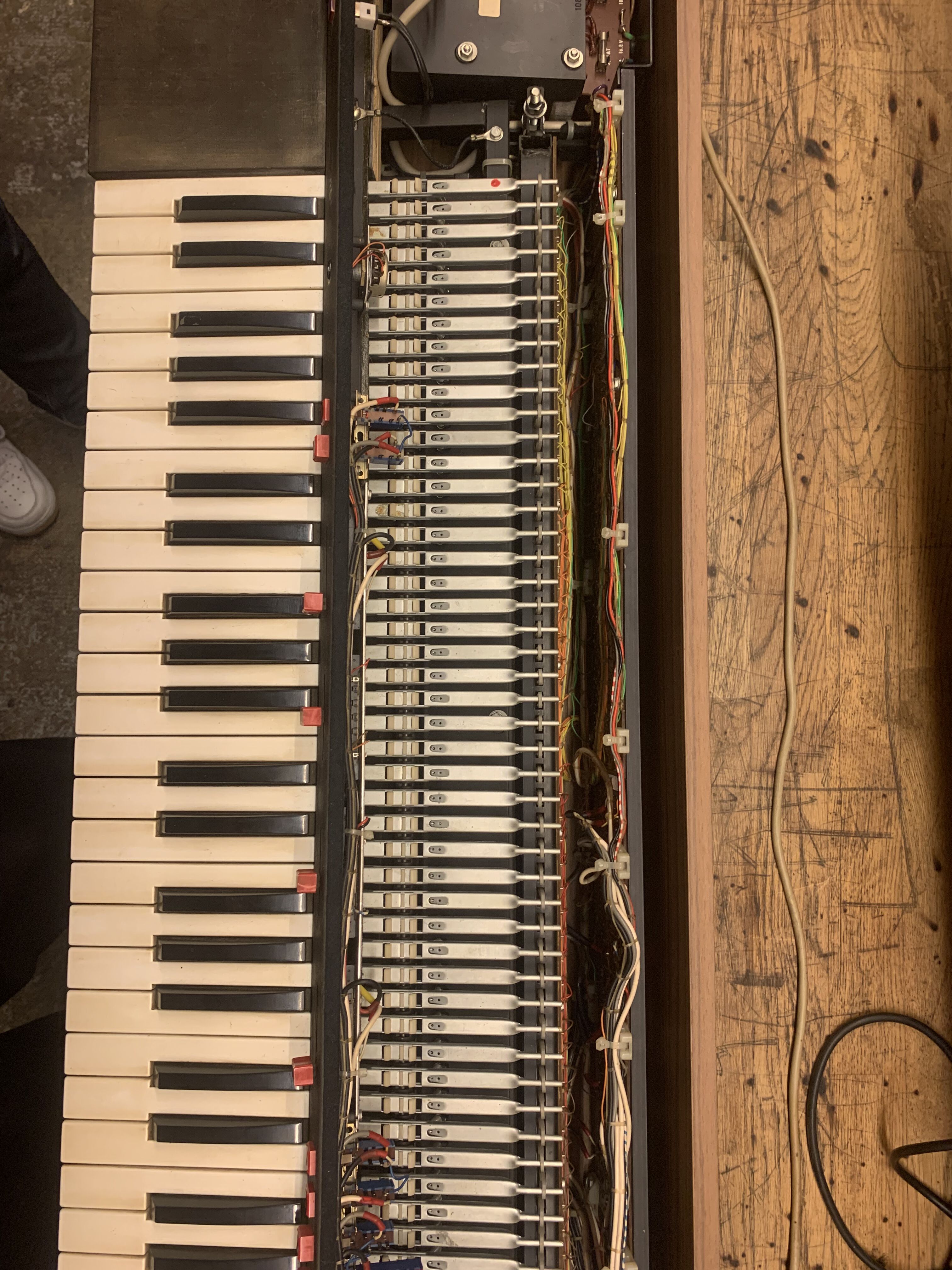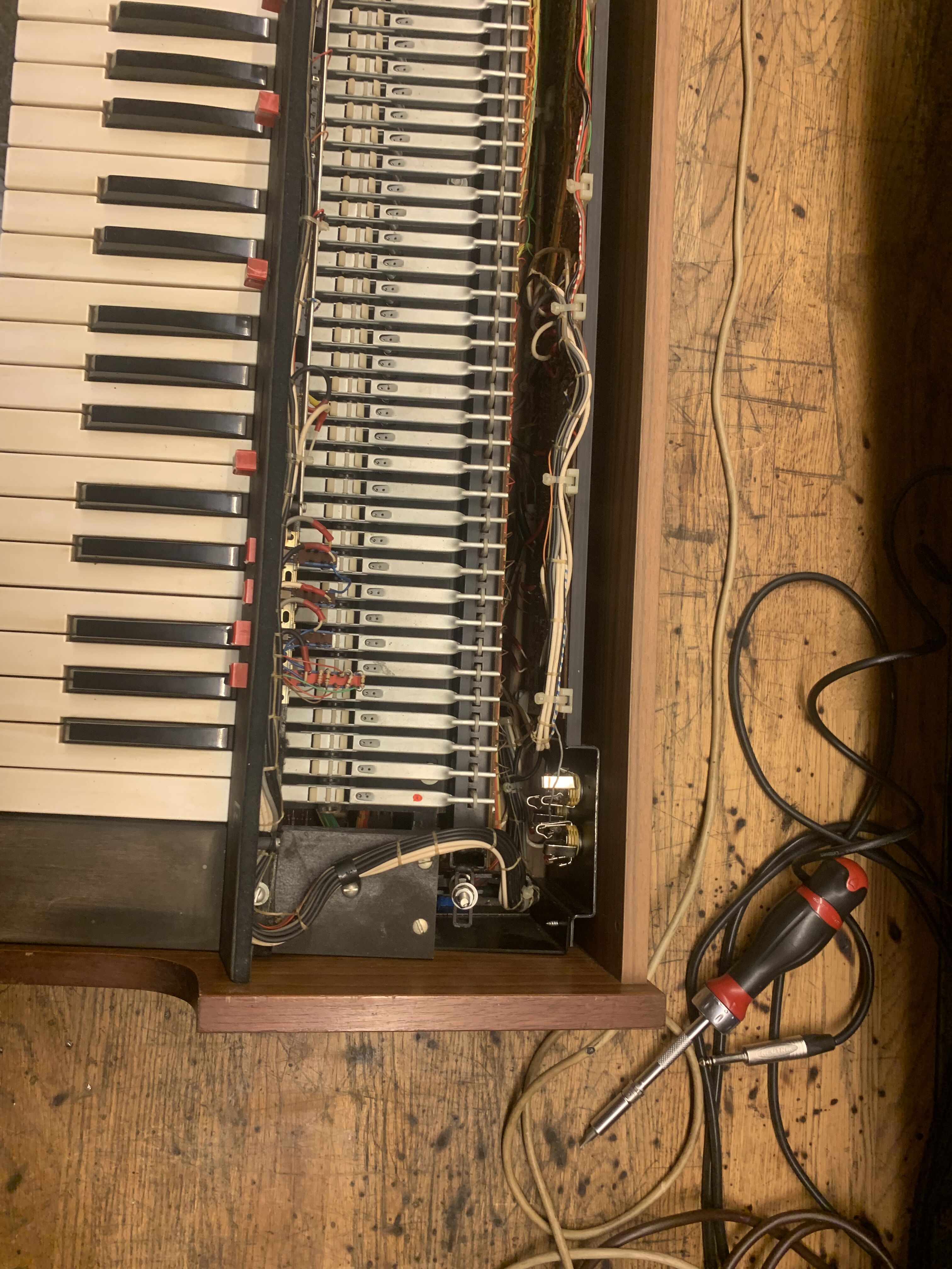Esthétiquement, il est en bon état compte tenu de son âge, quelques rayure sur le bois et les touches légèrement jaunie mais rien ne plus.