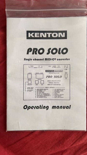 - Kenton Pro Solo (version ROM KICV43000.084) + bloc d'alimentation + manuel d'origine