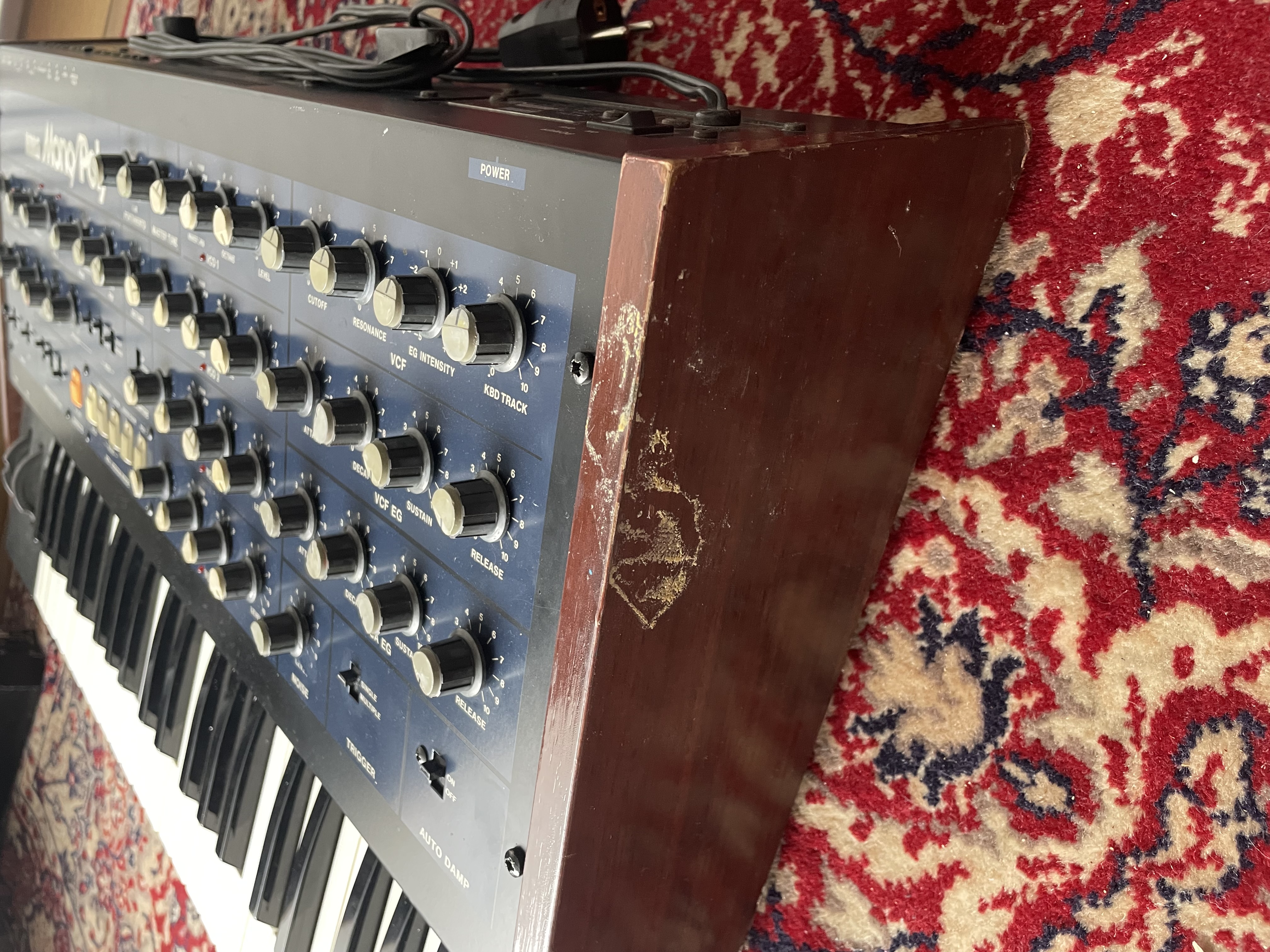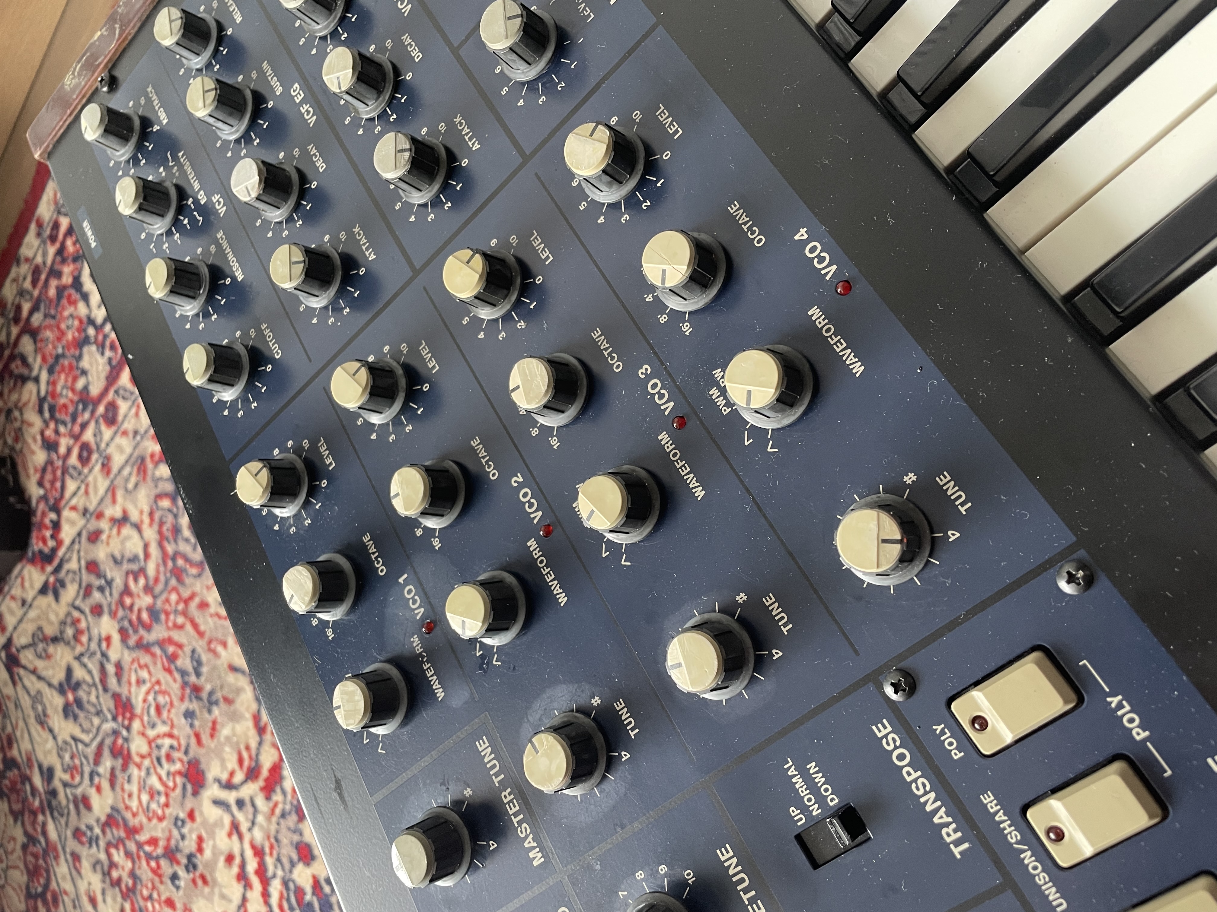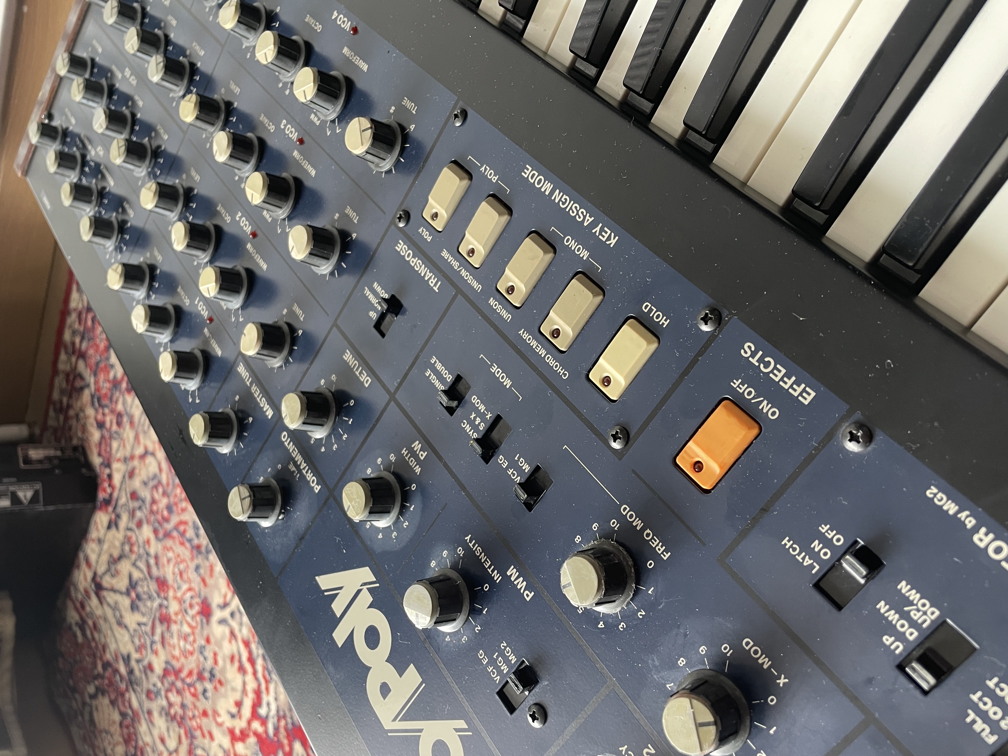 Le Mono/Poly est un synthétiseur paraphonique à 4 VCO (SSM2033), 1 filtre analogique (SSM2044), 2 enveloppes, 2 LFO, arpeggiator, effect section avec Hard Sync et Cross mod. Une machine vraiment à part, proposant une large variété de sons et un style de jeu très inspirant de part son architecture paraphonique. Les VCOs sonnent fat, et la Hard Sync est l’une des plus belles que j’ai entendu.