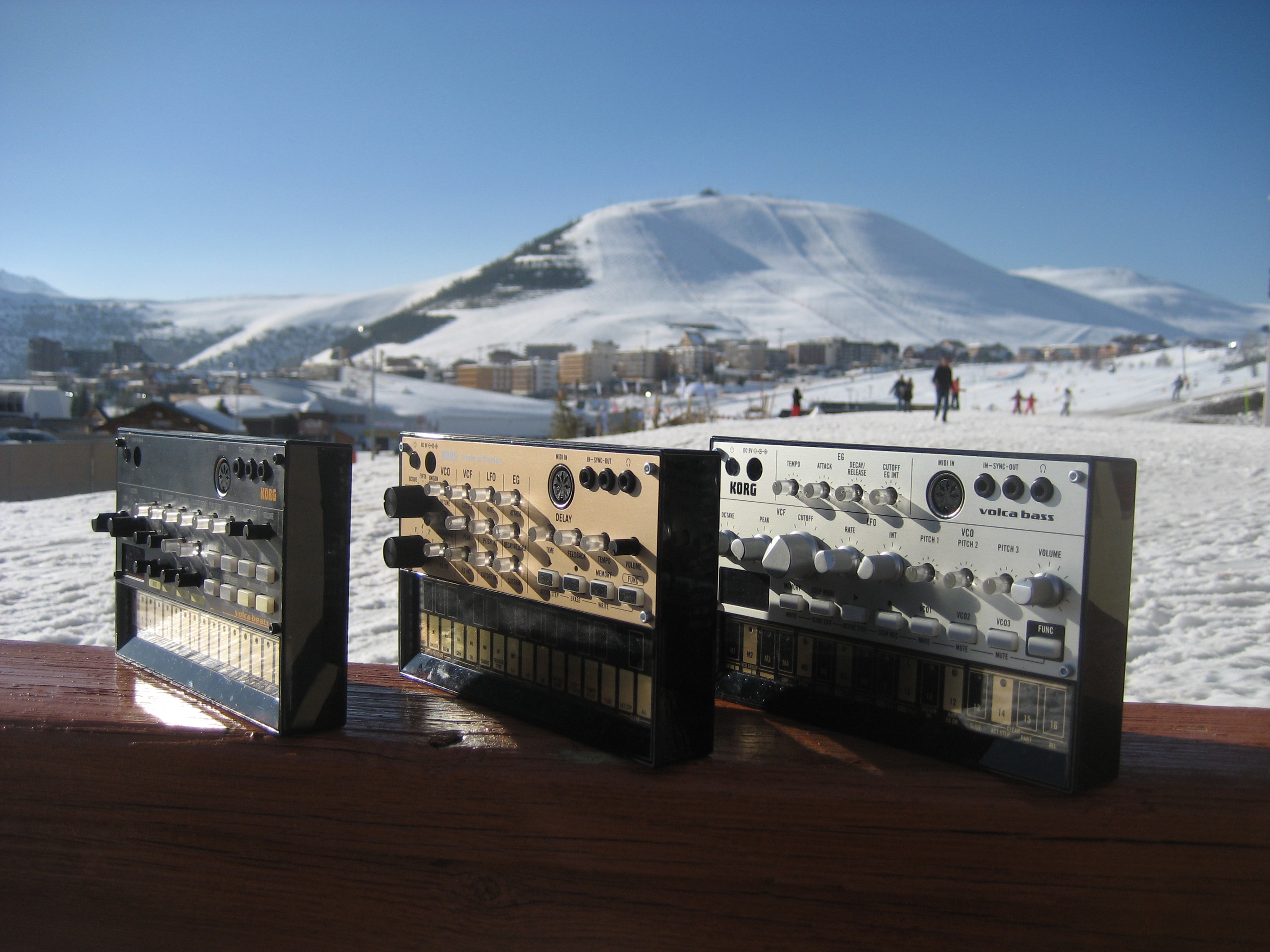 Comme chaque année à cette époque, c’est les vacances à la montagne entre potes. L’année dernière, Paulo, accompagné de sa gratte, s’est pris une bonne branlée par le Monotribe (cf. test). Il va donc sans dire que cette année, il a mis les bouchées doubles : Strat vintage, préampli vintage, ampli vintage, effets vintage, répertoire vintage… aucun doute, les groupies vont succomber. Mais juste avant le départ, trois petits cartons estampillés Volca Bass, Beats et Synth sont arrivés. Vu leur taille rikiki, ils sont rentrés sans problème dans les valises, entre les gants et le blouson… Est arrivé le grand soir, est venu le moment où San Francisco allait s’embrumer et tout d’un coup, paf, panne de jus ! Suivie d’un grand blanc (si on peut dire). Et Paulo qui a laissé la Folk au studio…