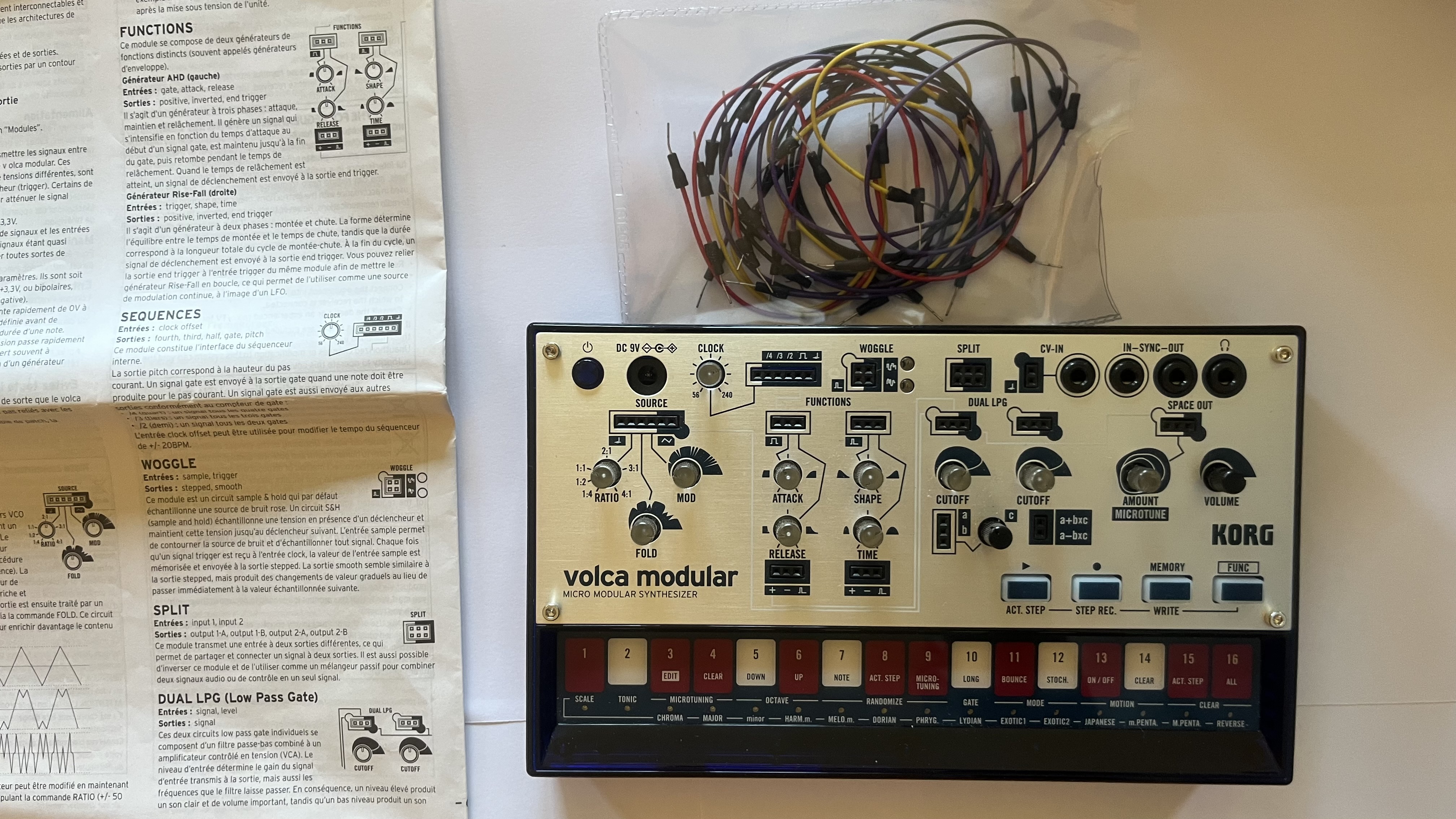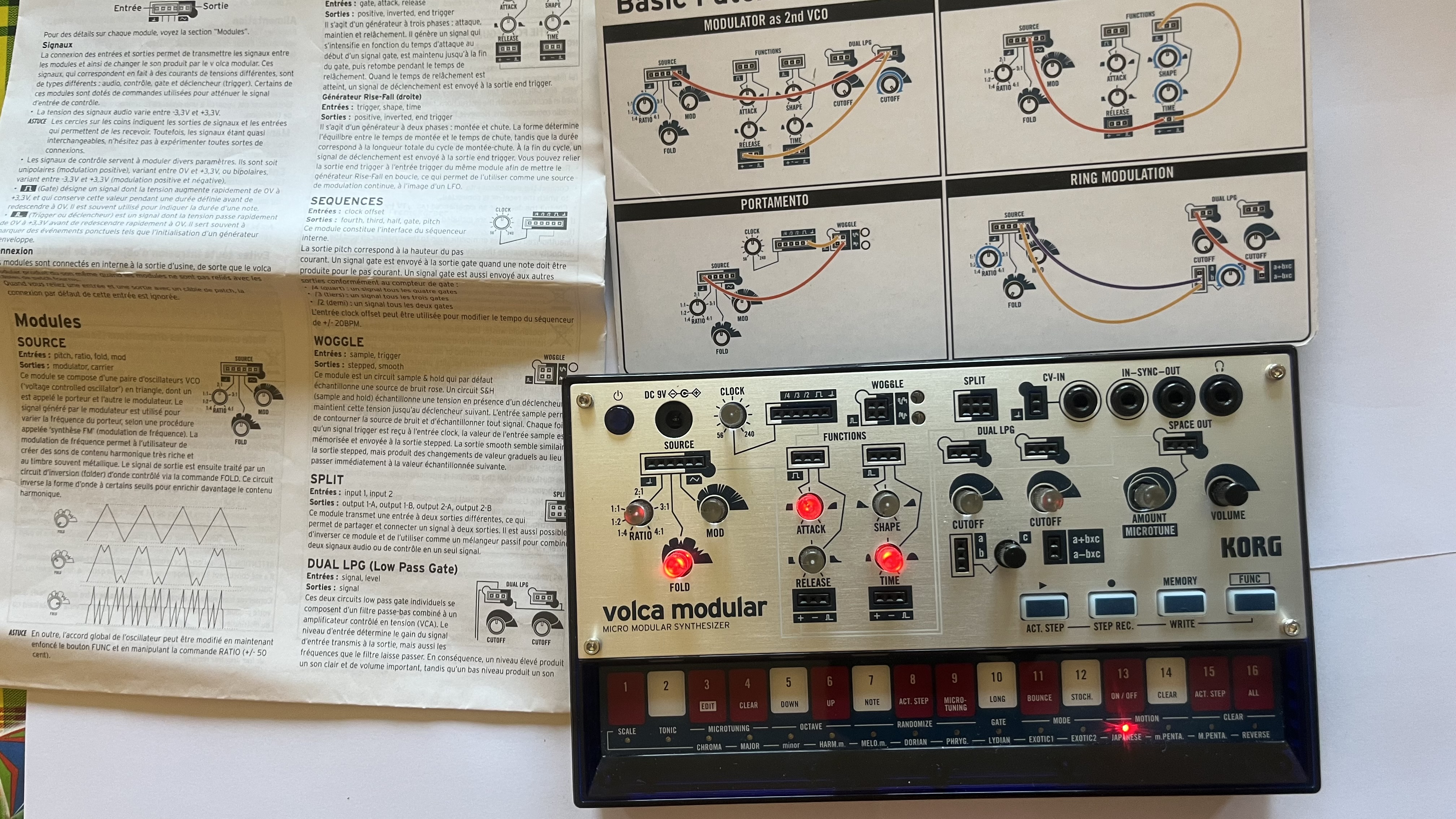 Le livret fourni avec la machine est très bien fait, il explique chaque module, donne quelques infos pour inviter à interconnecter les différents modules entre-eux. il y a également 8 exemples de sons à reproduire pour aider à démarrer de la meilleur des façons.