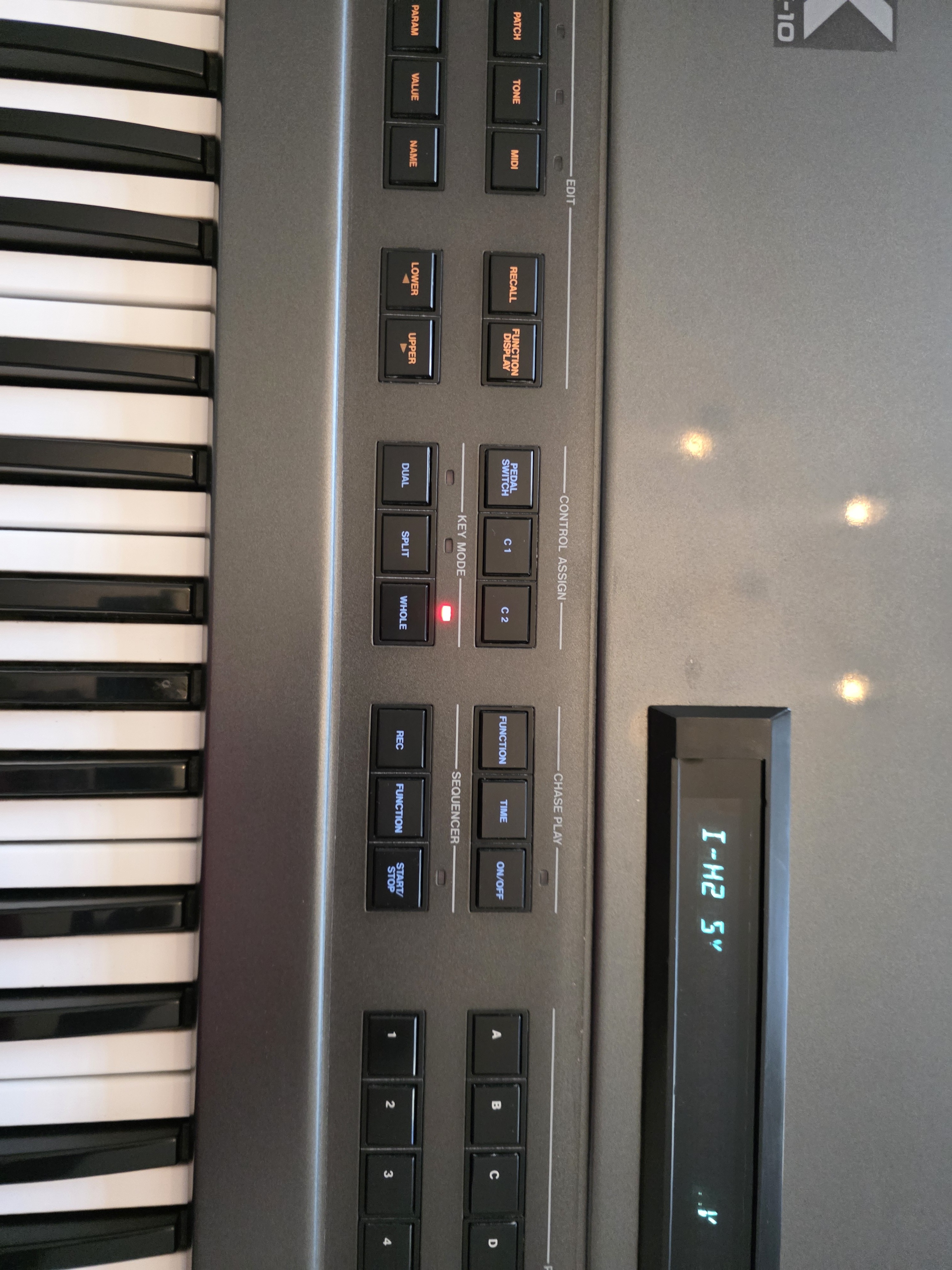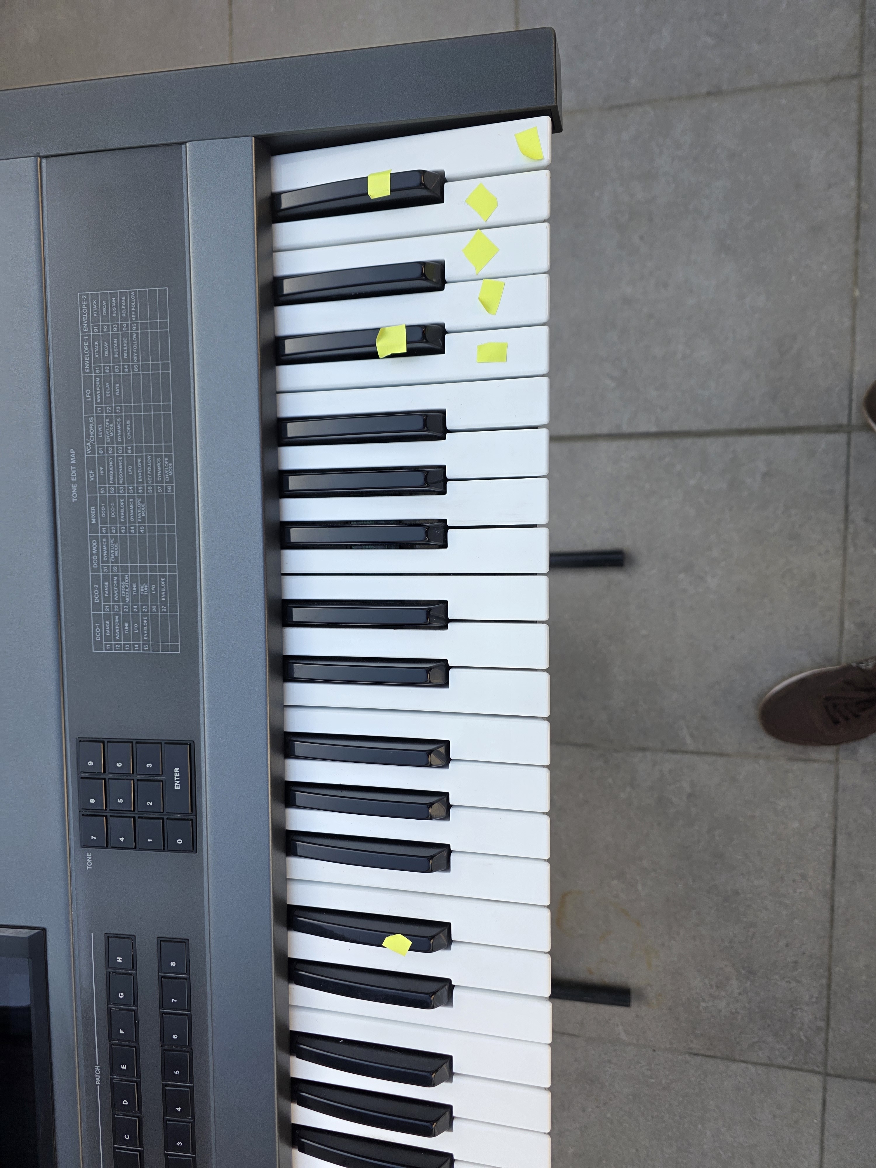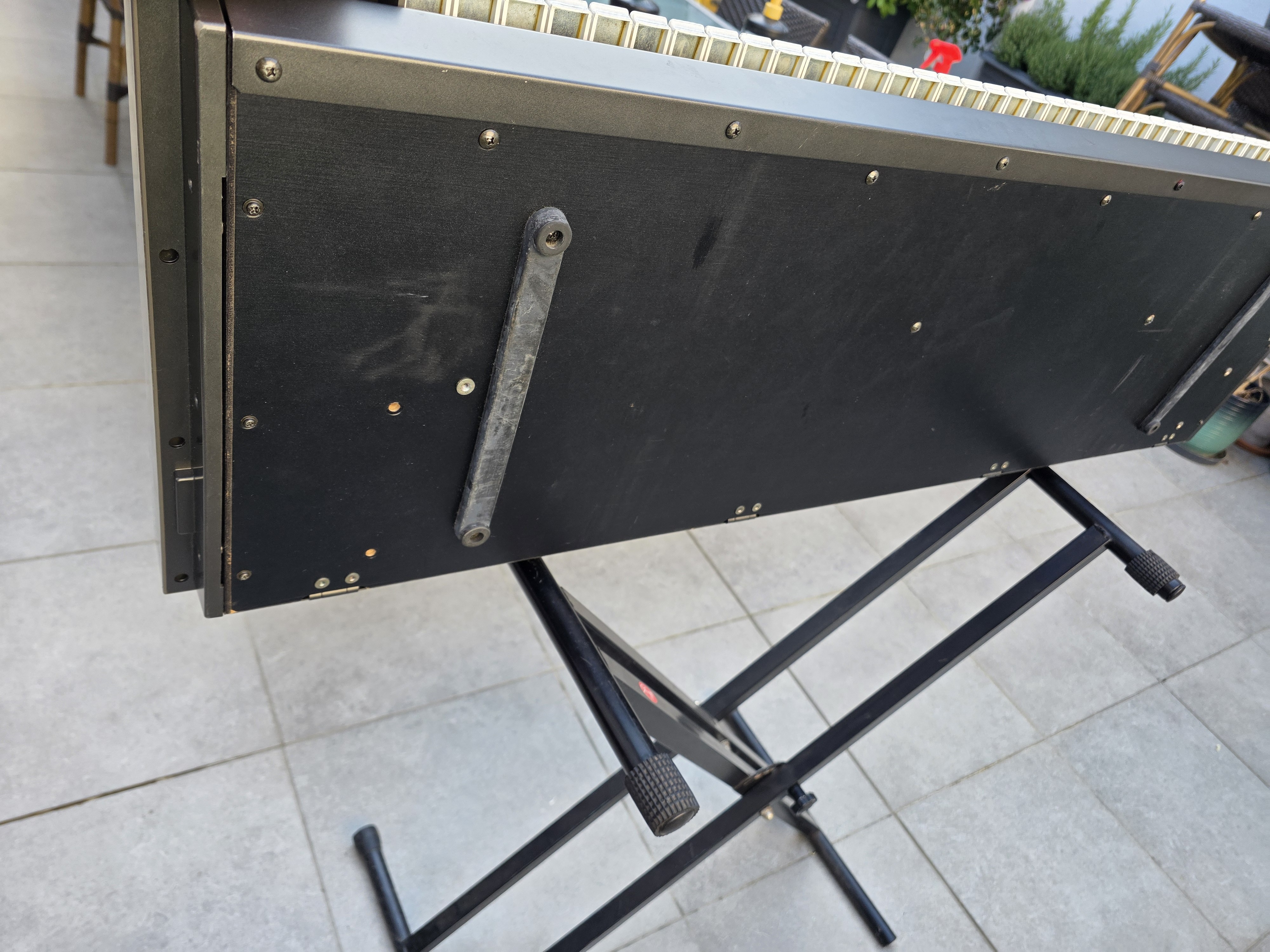 L'aspect esthétique de l'appareil est en très bon état. À noter que le clavier nécessite une révision car certaines touches ne répondent plus (identifiées en jaune sur les photos). Cependant, l'ensemble fonctionne parfaitement lorsqu'il est piloté par un clavier maître. Toutes les autres touches sont opérationnelles.