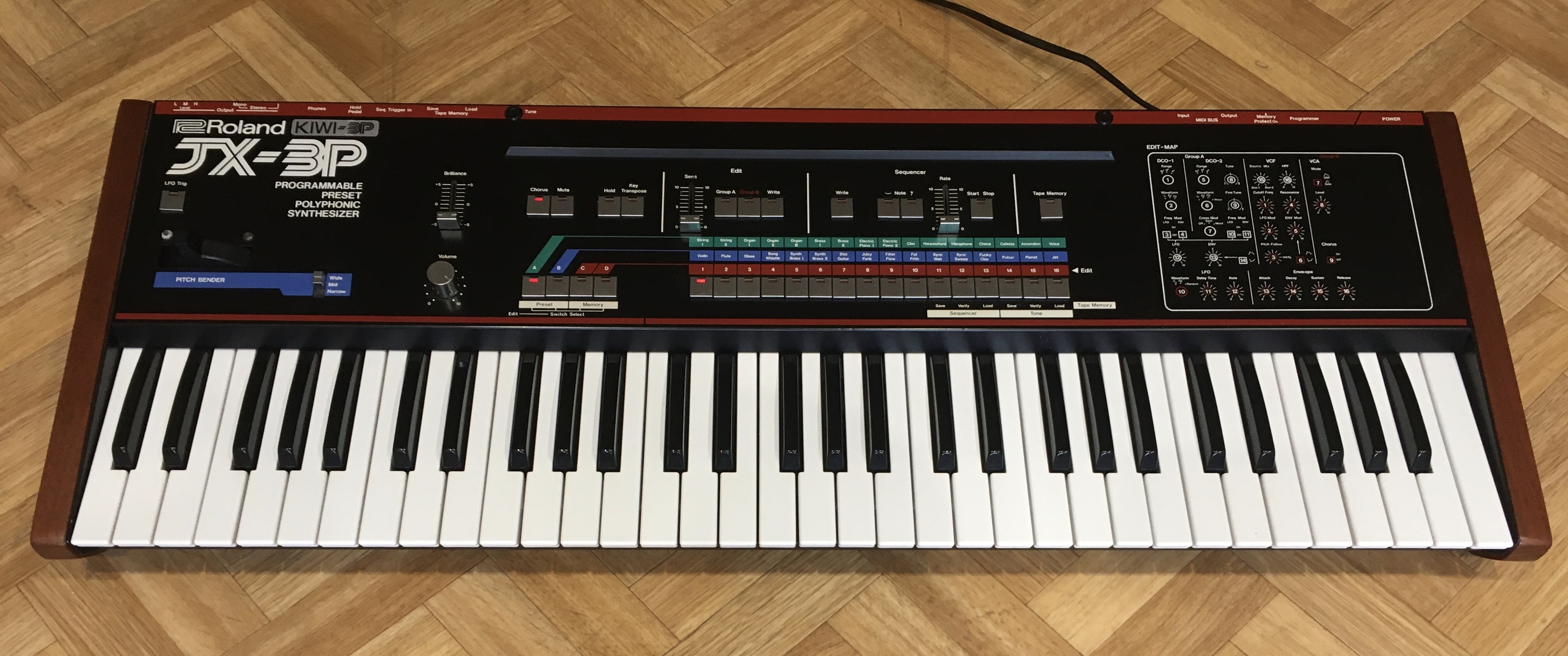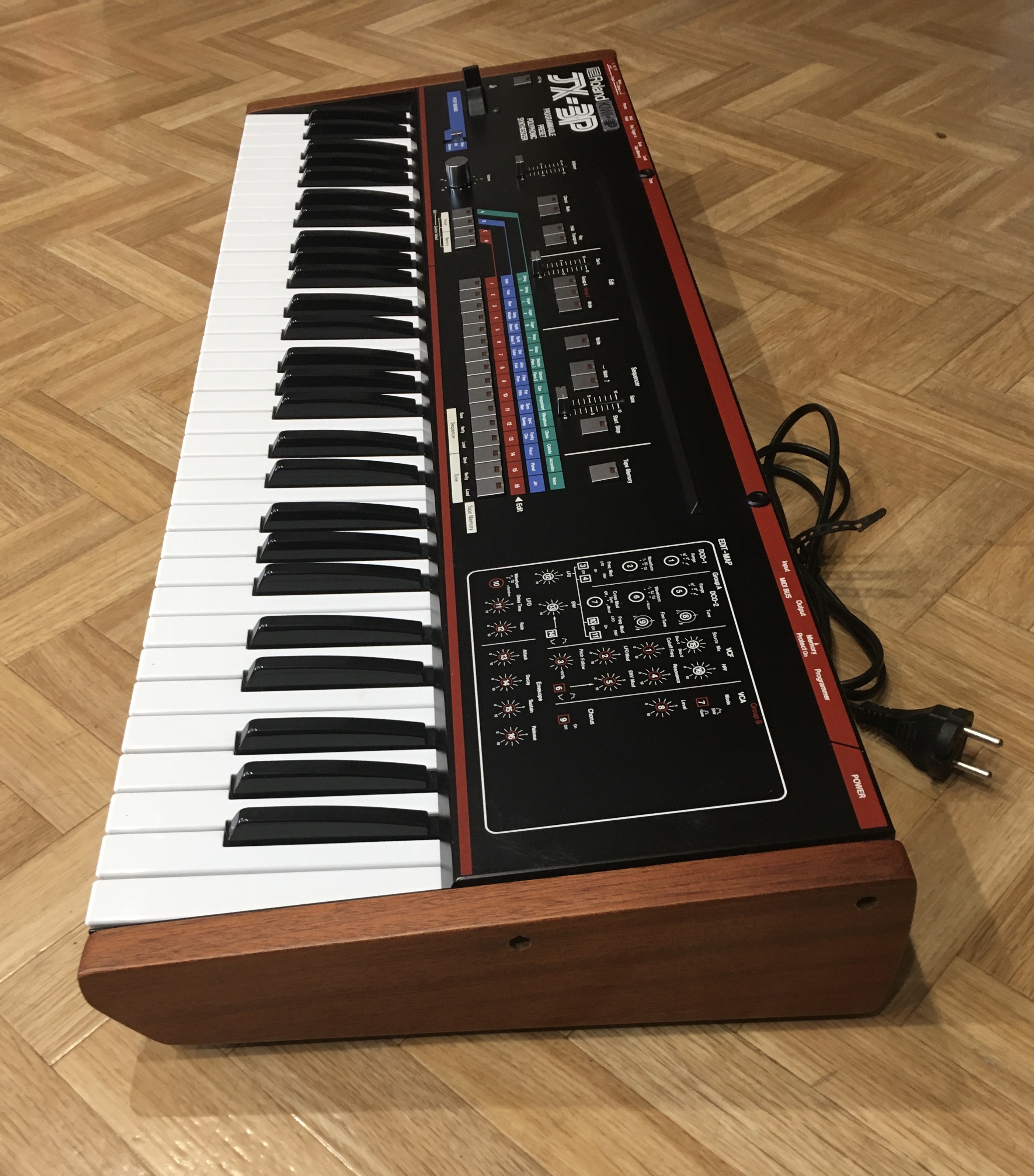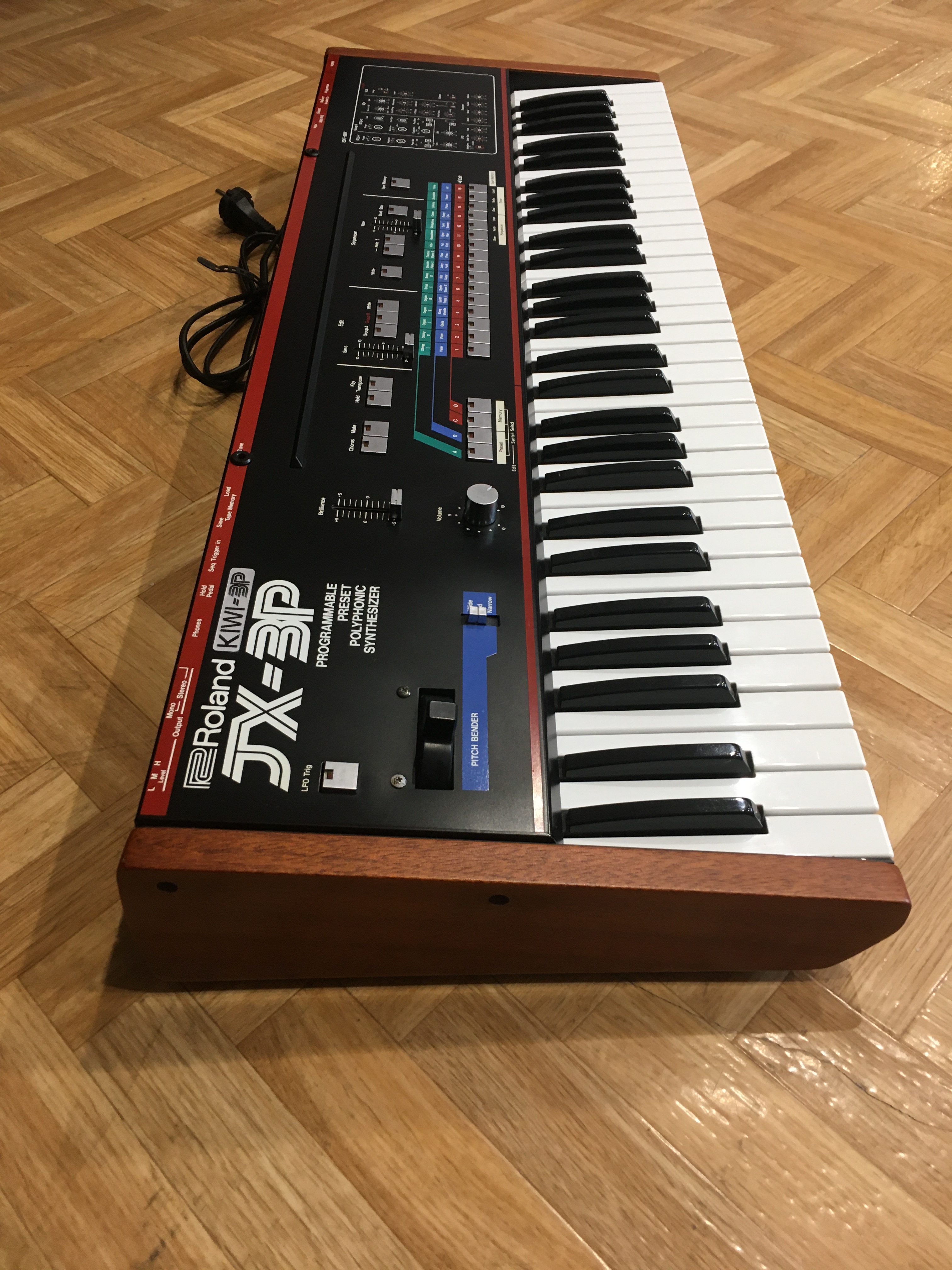 JX-3P avec upgrade Kiwitechnics installée (nombreuses fonctionnalités supplémentaires !), très bon état de fonctionnement et esthétique (+ flancs acajou, voir photos), utilisation studio uniquement.