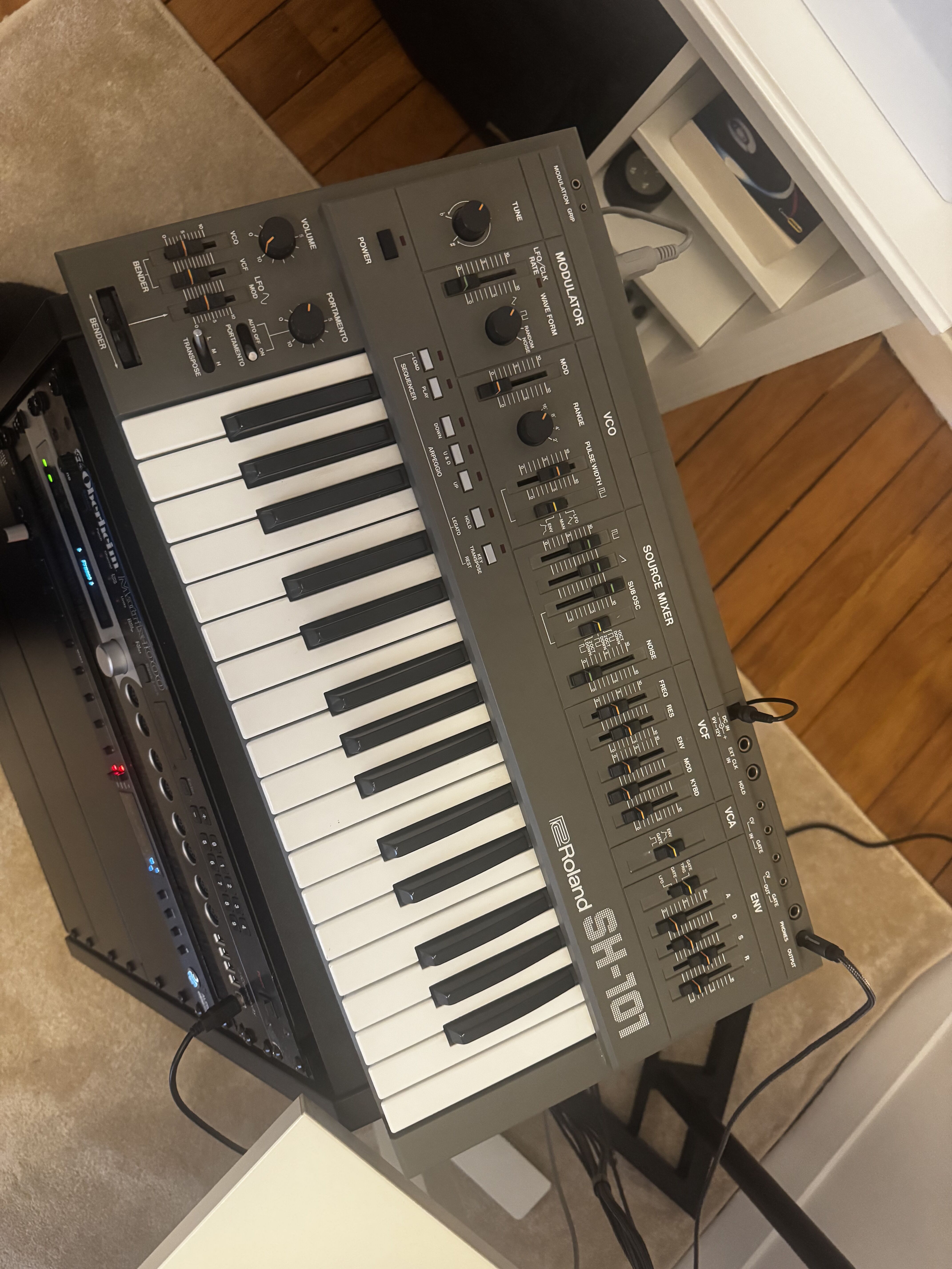 Je n'aime pas vraiment la TB-303 avec son filtre type diode ladder, son gimmick acid house et je n'en aurais pas trop d'usage. Par contre j'adore mon SH-101, lui c'est devenu rapidement un ami. On peut compter sur lui.