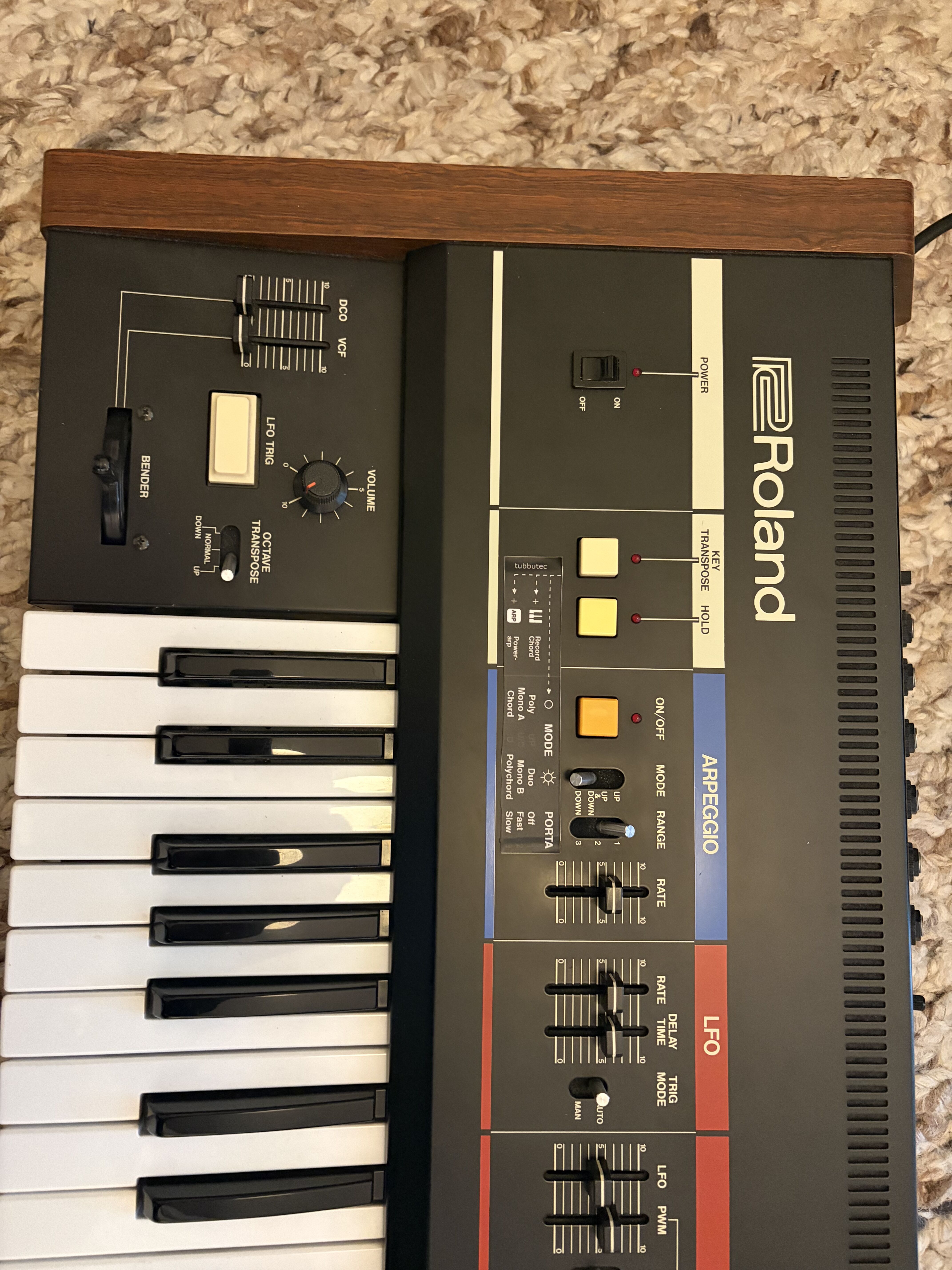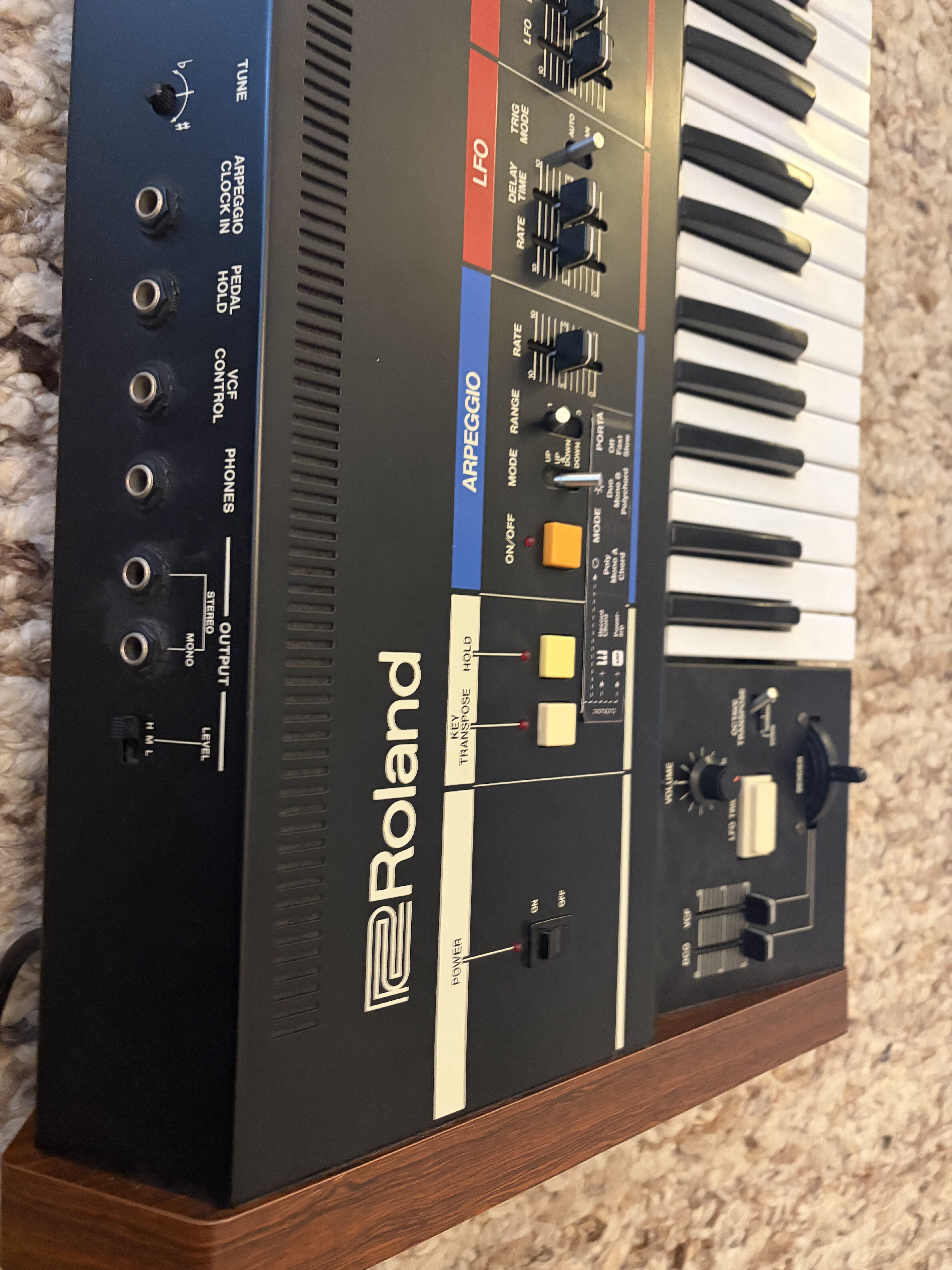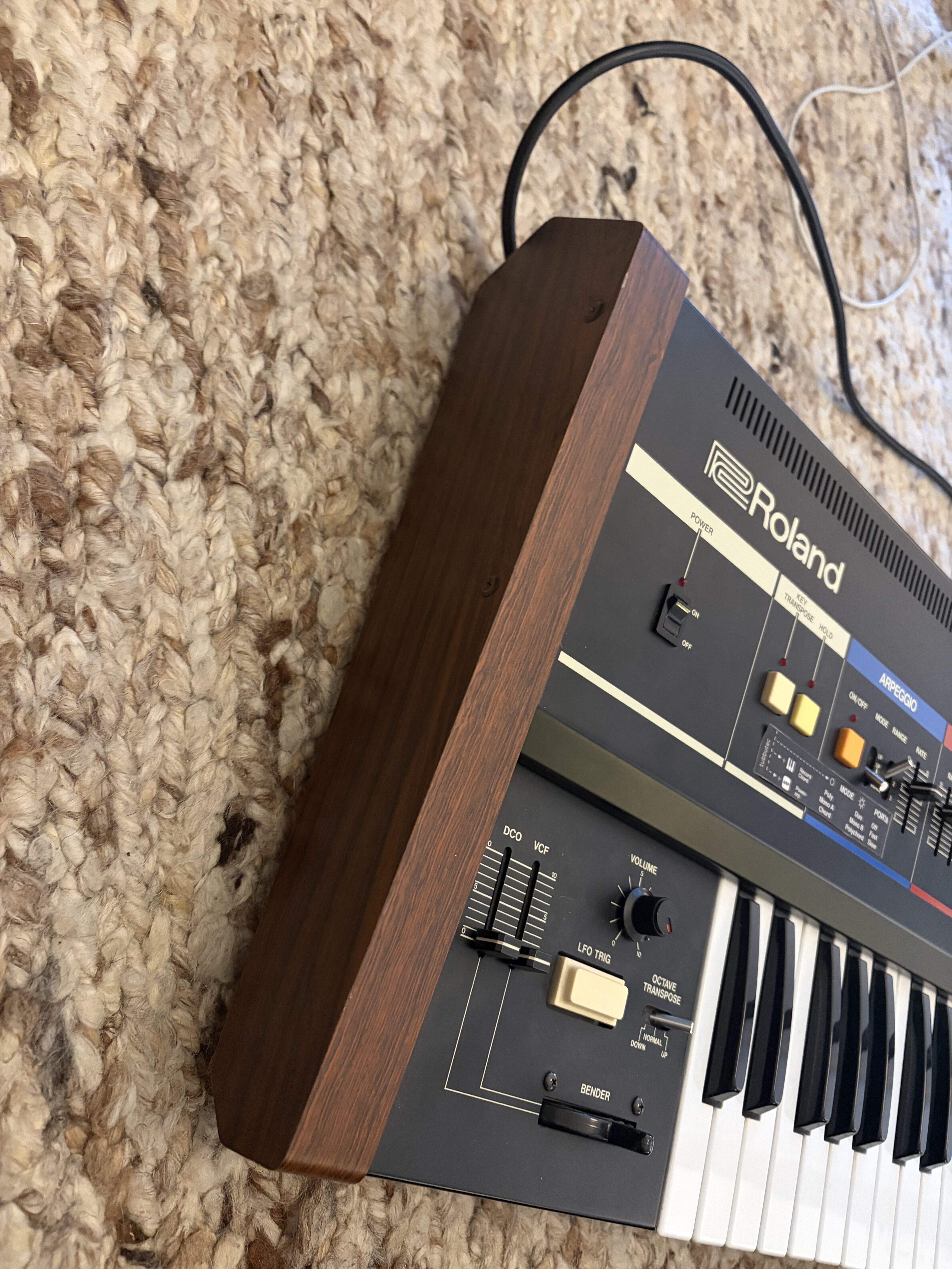 Synthé classique du début des années 80 avec peu de possibilités mais un très bon son. Il est très sympa de pouvoir contrôler son arpégiateur avec une entrée trigger externe, notamment en live. Le chorus légendaire donne tout de suite une ampleur énorme aux nappes mais très connotée années 80. Le clavier est d'excellente facture et l'ensemble est construit comme un tank. Comme souvent dit, ce synthé fait peu de choses mais il les fait bien. Je regrette juste de pas avoir le Juno 60 qui est le même mais avec des mémoires...