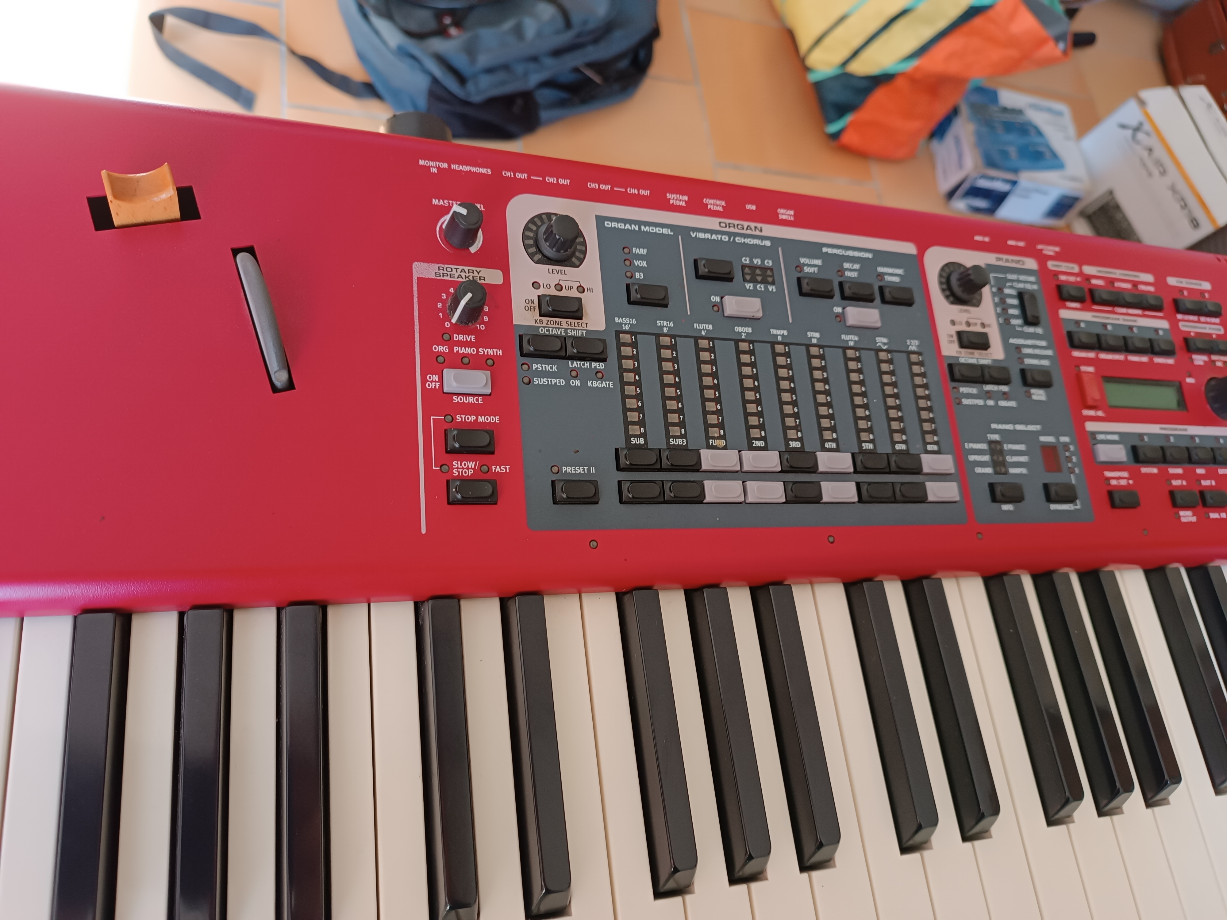 Le clavier légendaire, haut de gamme très bon son et très bon touché.Livré avec la housse (qui a vécu) et une pédale de sustain.