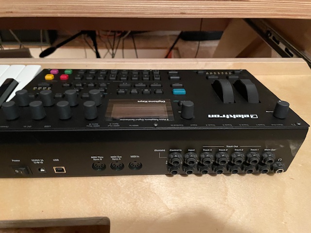 Très bien construit (lourd) mais ça dépend du propriétaire précédent quant aux potards et touches. Ergonomie « DIGIBOX » Elektron : si vous avez déjà un Digitakt ou un Syntakt, ben c’est en gros pareil (bien que pas tout à fait idem, ce qui est un autre petit problème en soi). Clavier Top qualité (manque un octave à mon sens notamment pour exploiter le Multimap, mais on peut jouer du clavier « touches d’ordi » à la main gauche tout en jouant quelque chose de plus expressif à la main droite), Aftertouch non polyphonique.